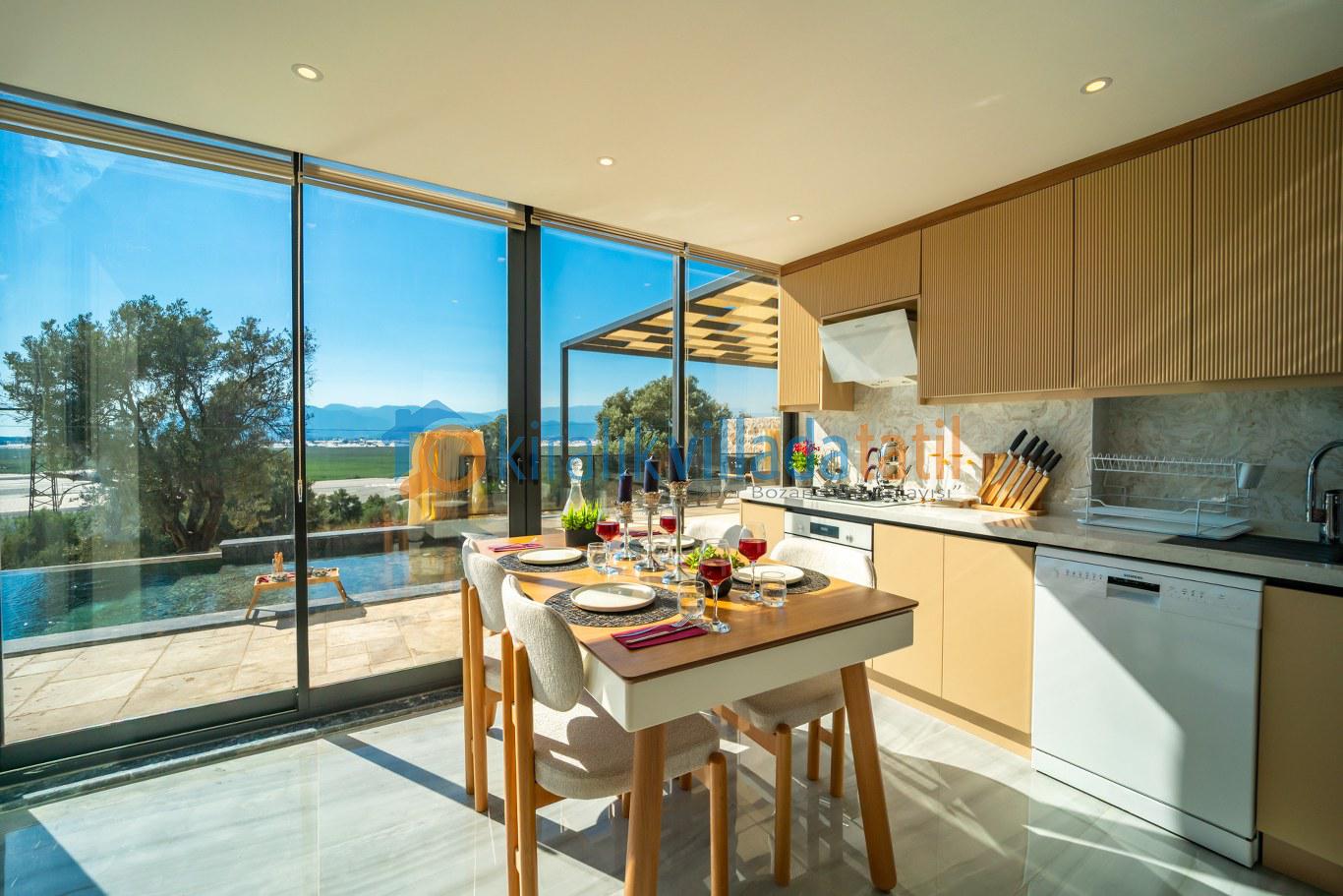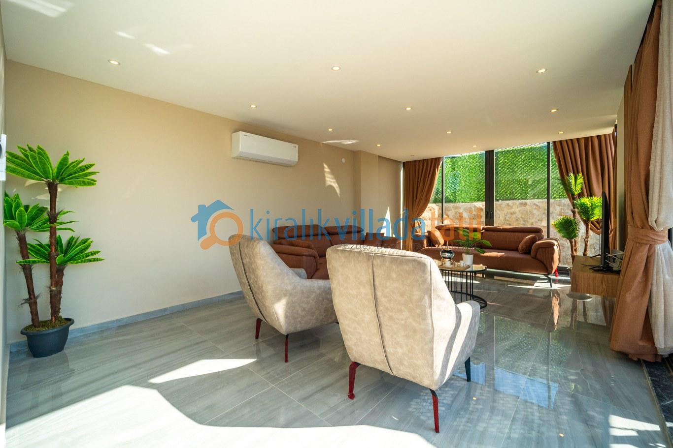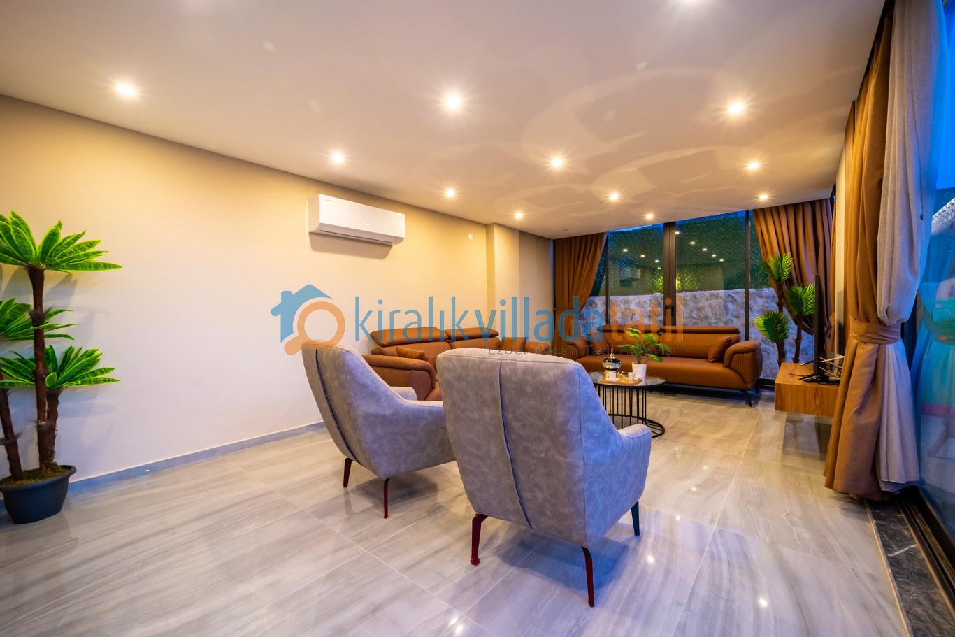 Modern ve lüks bir tasarıma sahip olan villa, aynı zamanda, misafirlerin memnuniyeti ve konforu düşünüşerek, modern ve lüks ev eşyaları ile dizayn edilmiştir.