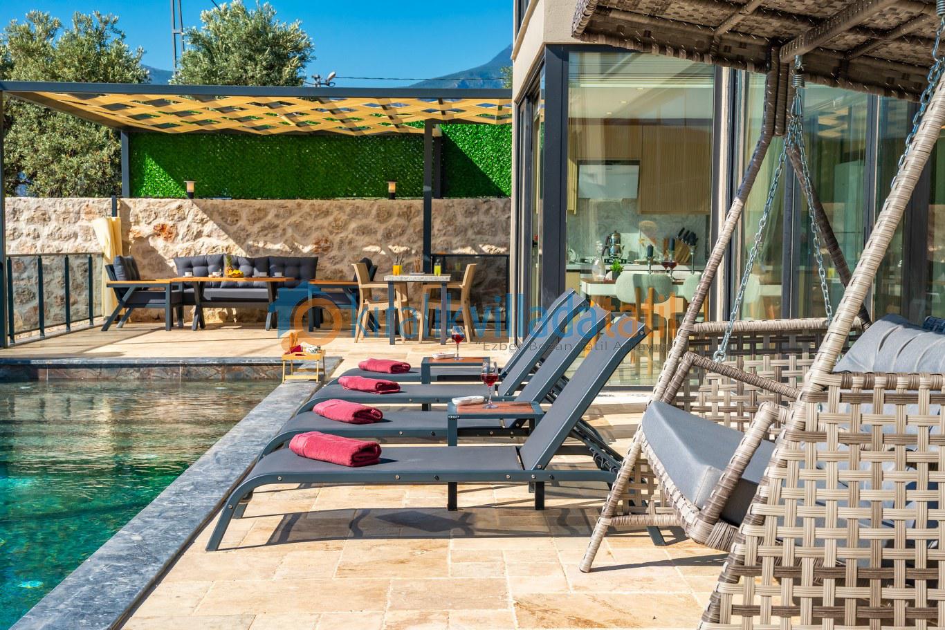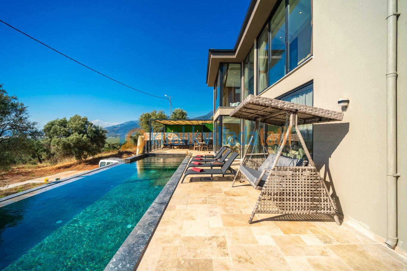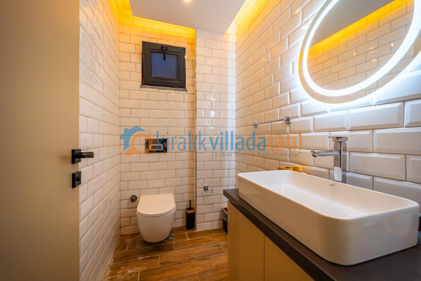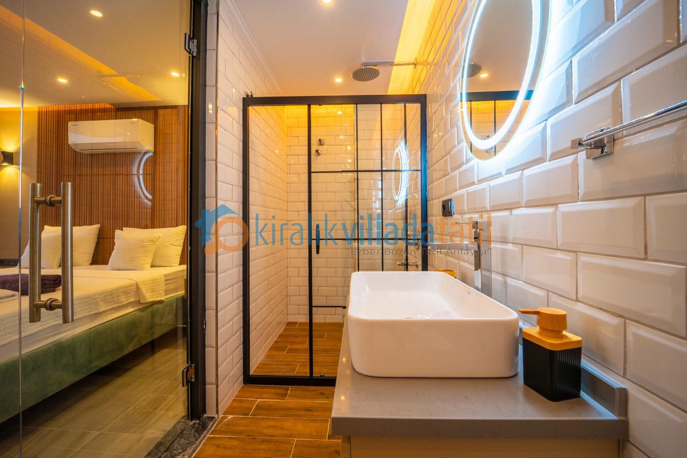 Modern ve lüks bir tasarıma sahip olan villa, aynı zamanda, misafirlerin memnuniyeti ve konforu düşünüşerek, modern ve lüks ev eşyaları ile dizayn edilmiştir.