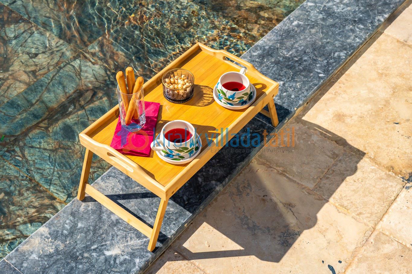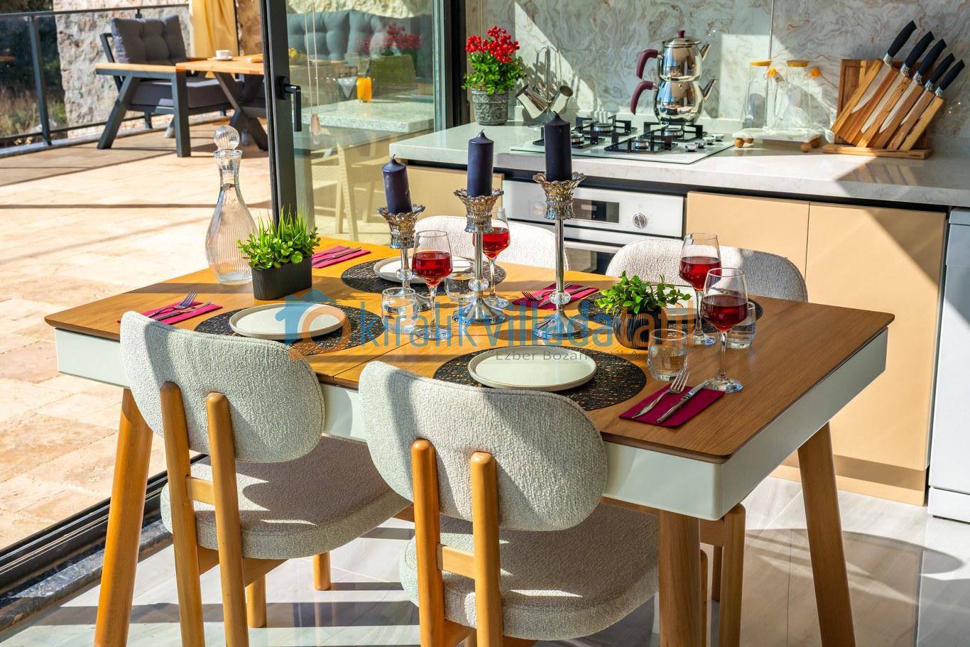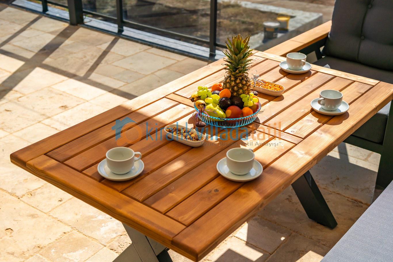 Tatil boyunca, ihtiyaç olabilecek gerekli ev ve mutfak araç gereçleri villada mevcut olup, aynı zamanda, havuz terası alanında, mangal alanına da sahiptir.