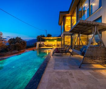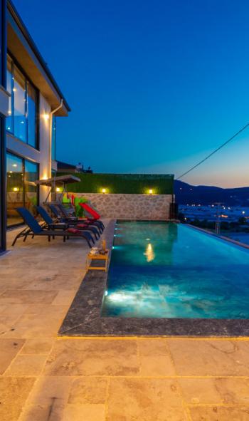 Kalkan’ın doğayla iç içe huzurlu bölgesi Yeşilköy’de yer alan bu modern villa, hem balayı çiftleri hem de küçük aileler için konforlu bir tatil ortamı sunar. Kiralık Villada Tatil farkıyla sunulan villamız, 4 kişilik kapasitesiyle modern yaşamın tüm detaylarını doğanın dinginliğiyle buluşturuyor.