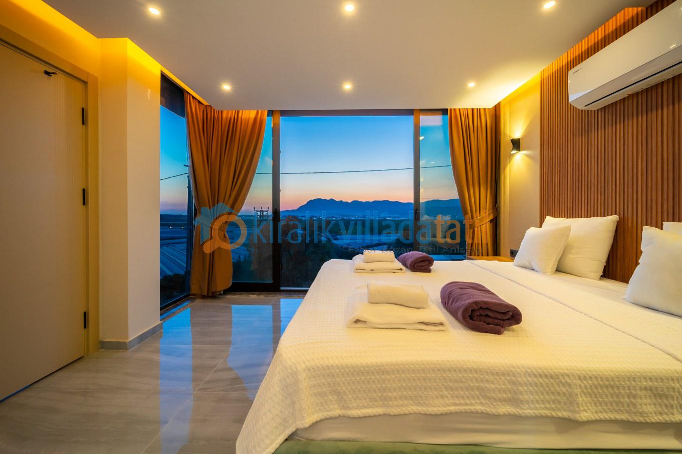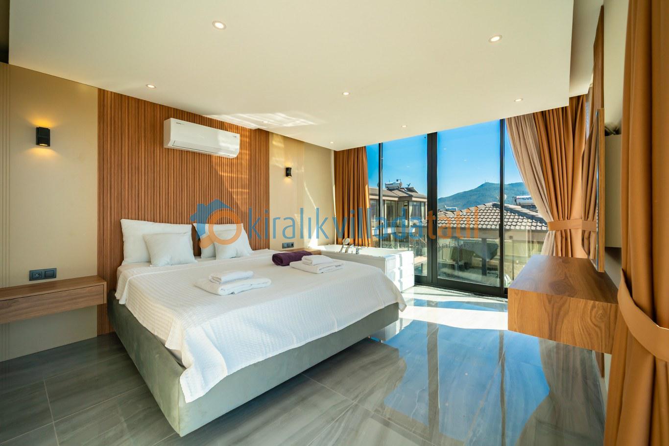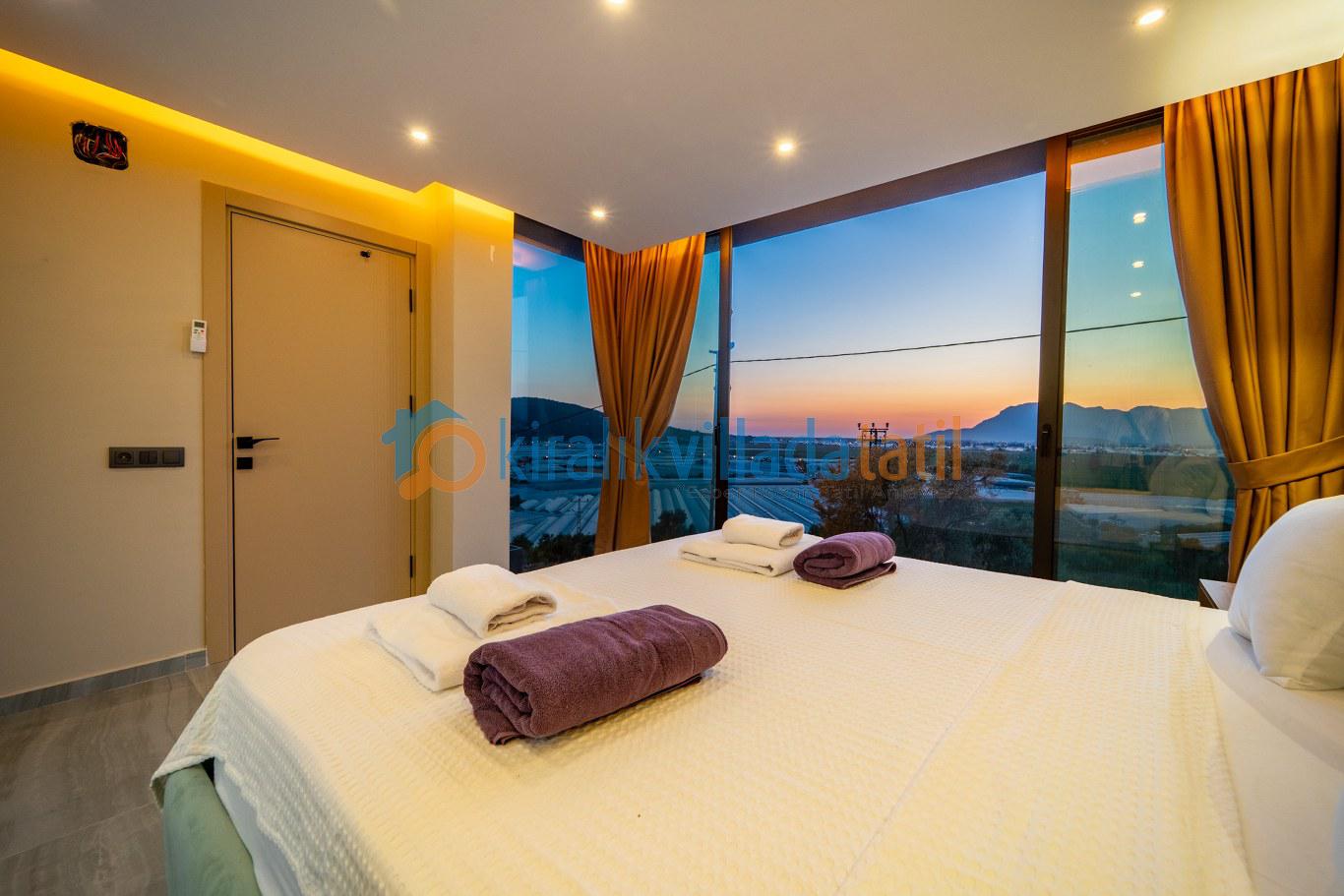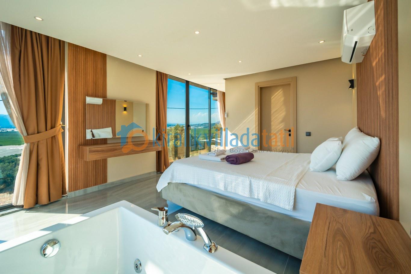 İki yatak odası bulunan villanın, her iki yatak odası da çift kişilik yatağa sahip olup, bir yatak odasında jakuzi mevcuttur. Yatak odalarının, kendilerine ait, banyo-wc, klima, gardrop gibi gerekli oda eşyaları da mevcuttur.