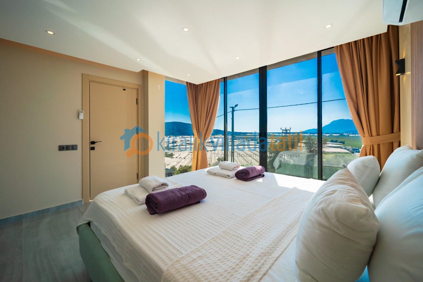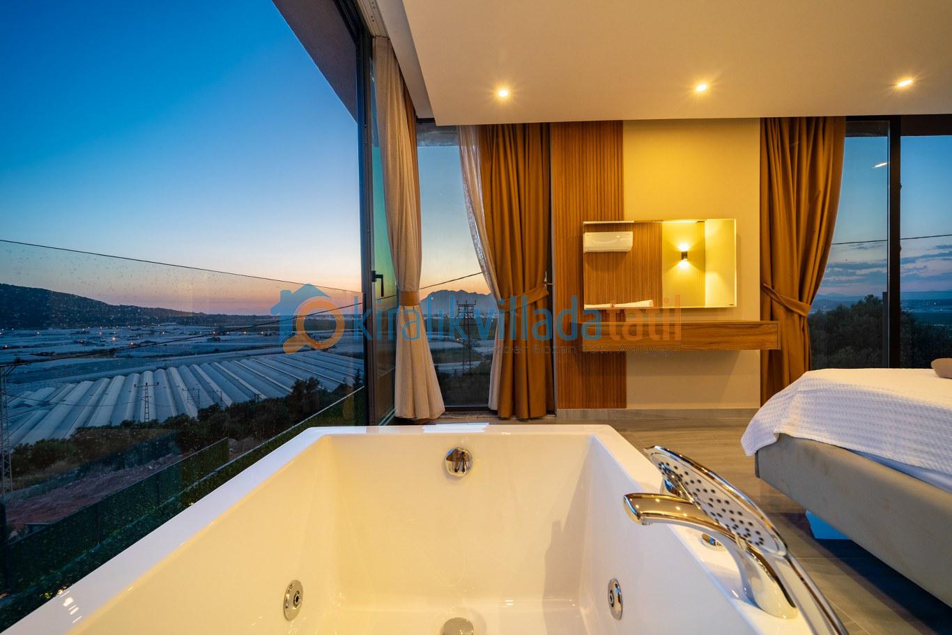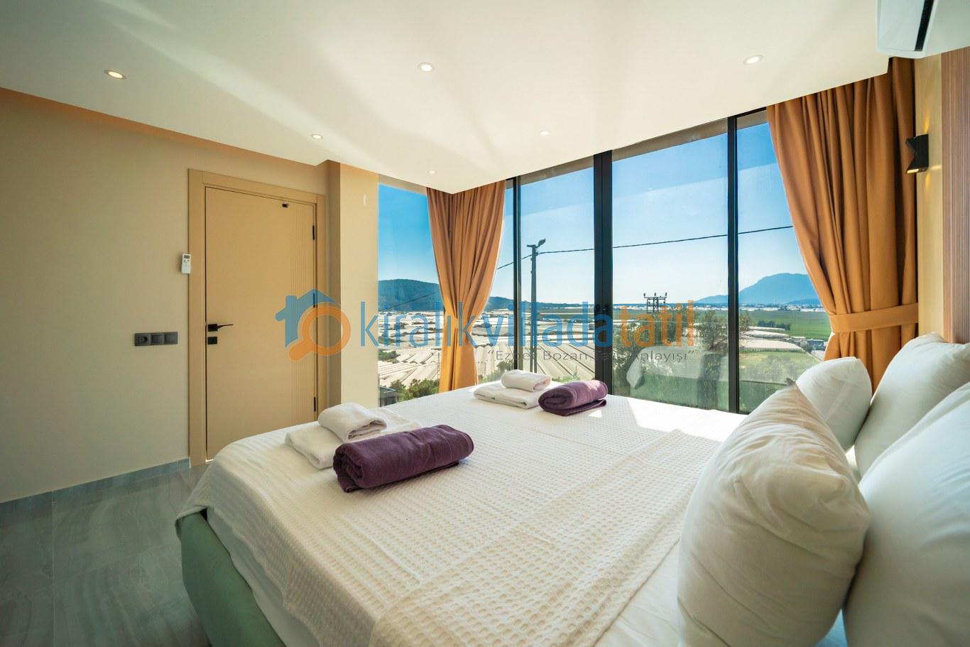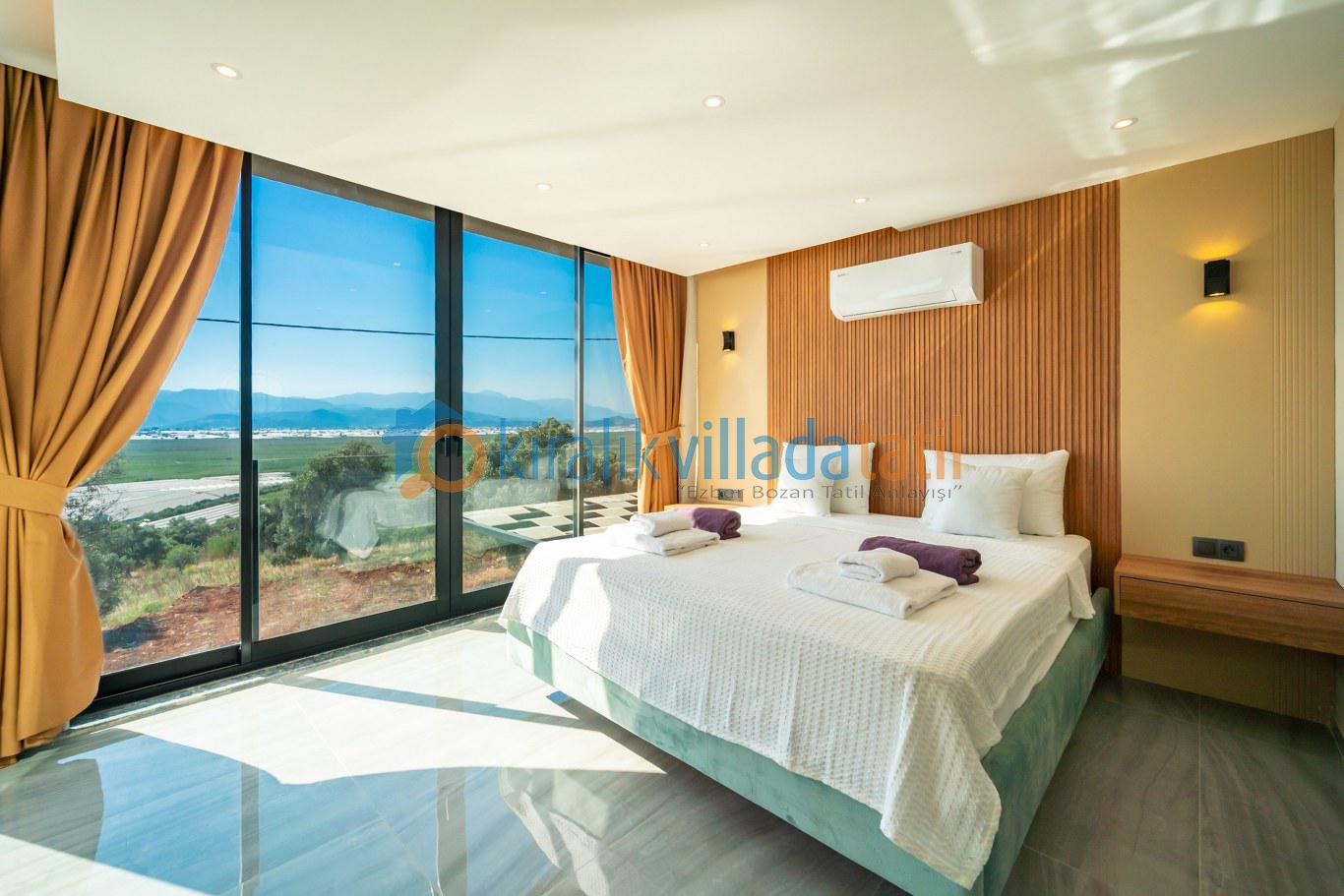 İki yatak odası bulunan villanın, her iki yatak odası da çift kişilik yatağa sahip olup, bir yatak odasında jakuzi mevcuttur. Yatak odalarının, kendilerine ait, banyo-wc, klima, gardrop gibi gerekli oda eşyaları da mevcuttur.