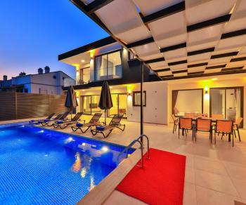 Bu ilan ait Detaylı açıklama ve bilinmesi gereken detaylarKalkan Kızıltaş'ta bulunan villa, modern mimarisi, deniz manzarası ve lüks mobilyaları ile dikkat çekmektedir. Kalabalık aile ve arkadaş grupları için ideal olan villamız, aynı zamanda, havuz ve havuz terasının korunaklı olması ile, mahremiyetine önem veren aileler için de uygun bir villadır.
