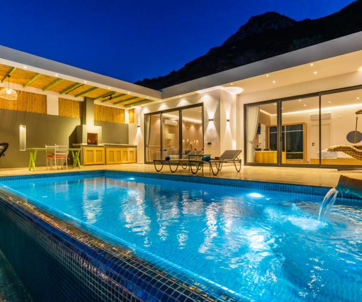 Kalkan’ın gözde bölgelerinden Akbel’de yer alan bu özel balayı villası, modern mimarisi ve zarif tasarımıyla misafirlerine huzurlu bir konaklama deneyimi sunuyor. Kiralık Villada Tatil güvencesiyle listelenen villamız, hem balayı çiftleri hem de mahremiyetine önem veren misafirler için ideal bir seçenektir.