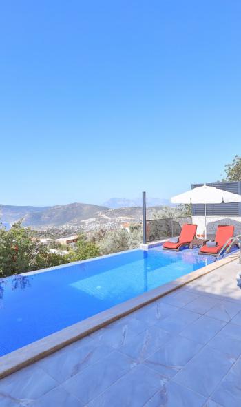 Bu ilan ait Detaylı açıklama ve bilinmesi gereken detaylarKalkan Sarnıçbaşı mevkiinde yer alan villamız, taş ve ahşağ konsepti ile şık bir dizayna sahiptir. Balayı ve mahremiyetine önem veren çiftler için ideal olan villamız, deniz manzarası ve korunaklı havuzu ile öm plana çıkmaktadır.