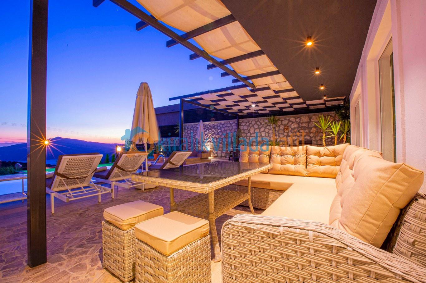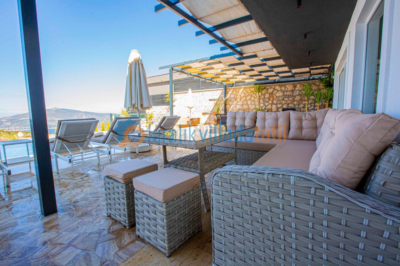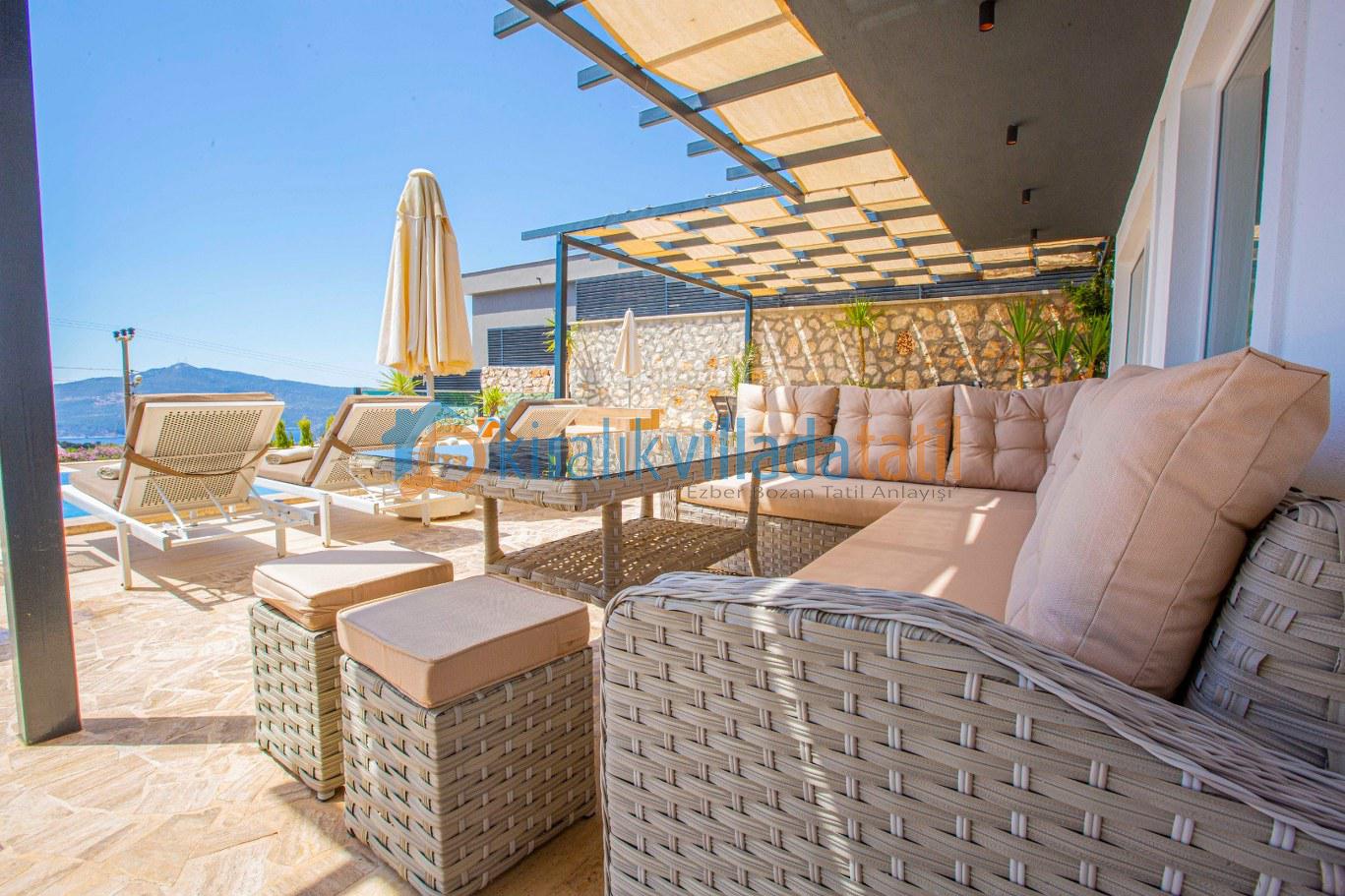 Önü açık deniz ve doğa manzarasına sahip olan villa, lüks ve modern yapısı ile, misafirlerine unutulmaz, dinlendirici, huzurlu bir tatil sunmaktadır. Tatil boyunca ihtiyaç olabilecek gerekli, ev ve mutfak araç gereçleri mevcut olup, misafirlerin konforu gözetilerek, modern eşyalar ile dizayn edilmiştir.