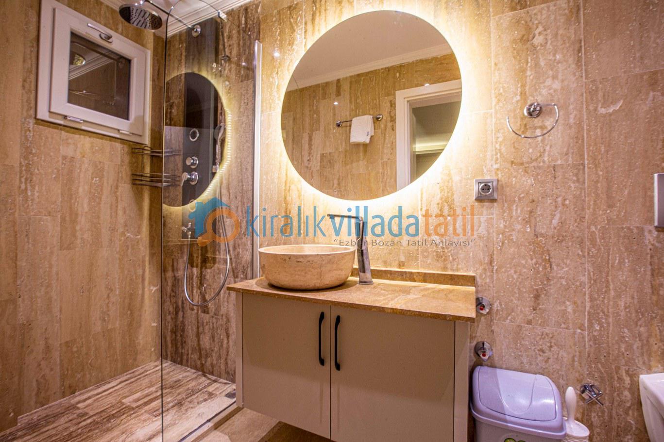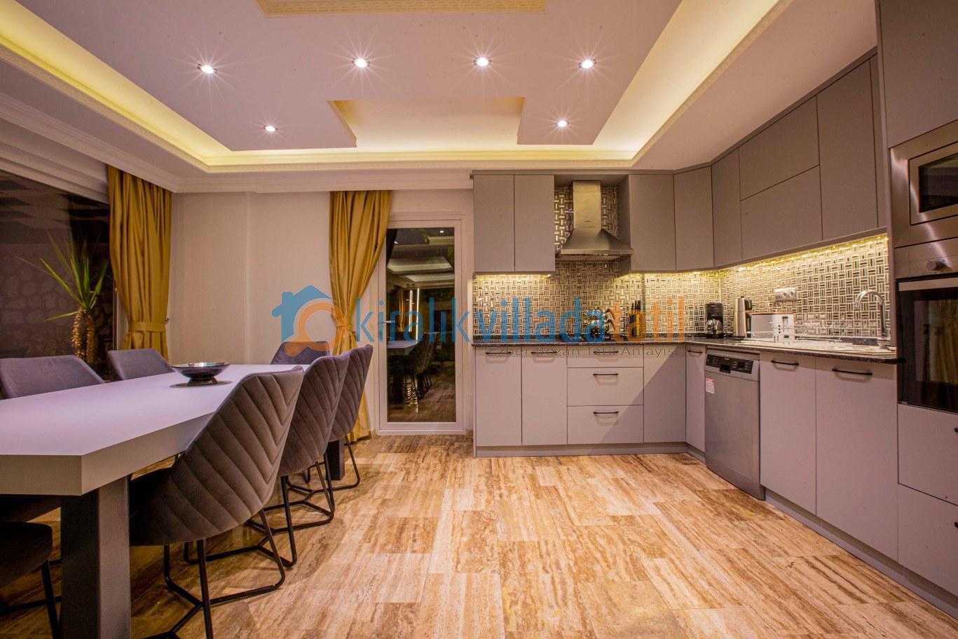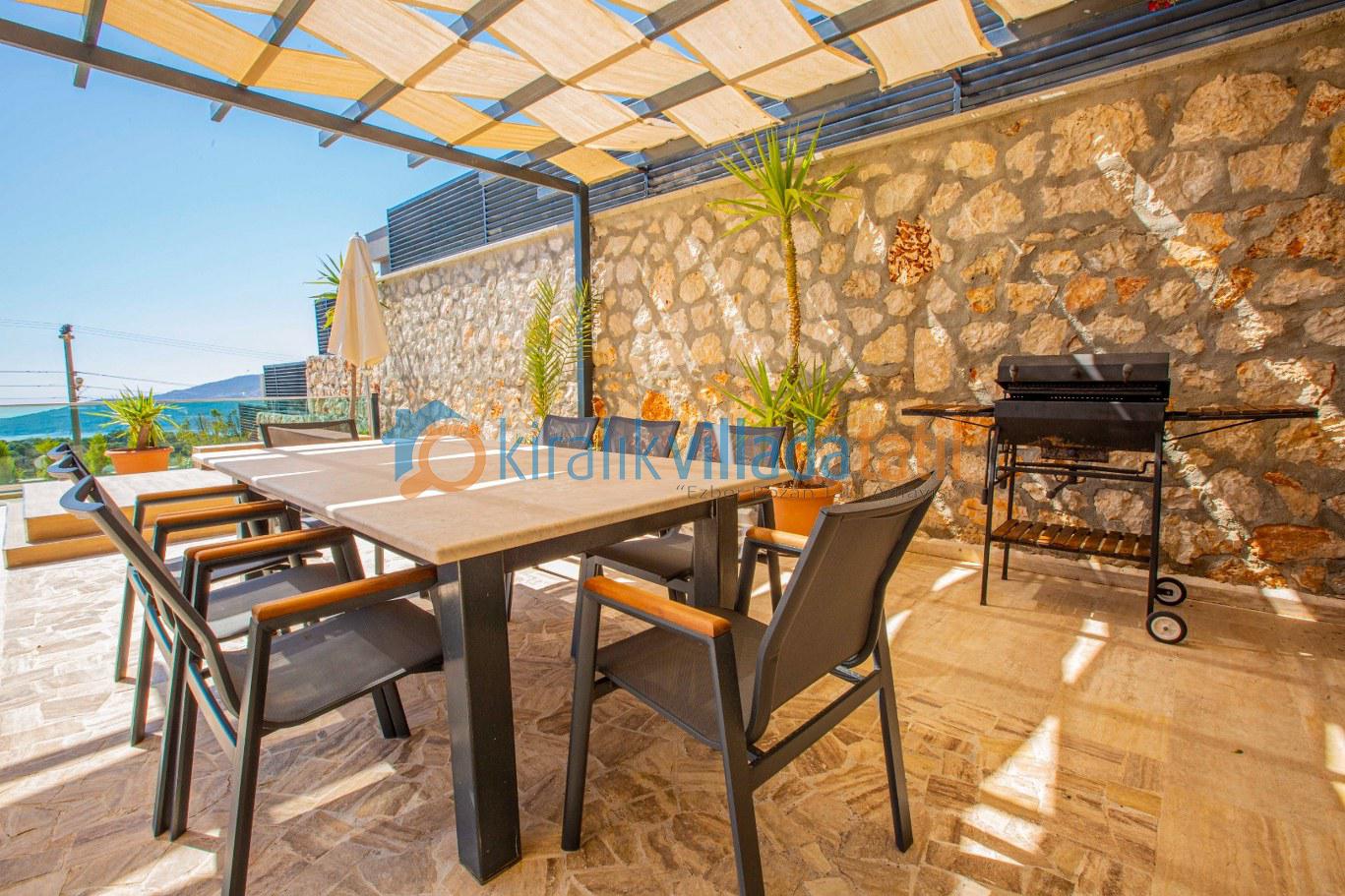Önü açık deniz ve doğa manzarasına sahip olan villa, lüks ve modern yapısı ile, misafirlerine unutulmaz, dinlendirici, huzurlu bir tatil sunmaktadır. Tatil boyunca ihtiyaç olabilecek gerekli, ev ve mutfak araç gereçleri mevcut olup, misafirlerin konforu gözetilerek, modern eşyalar ile dizayn edilmiştir.
