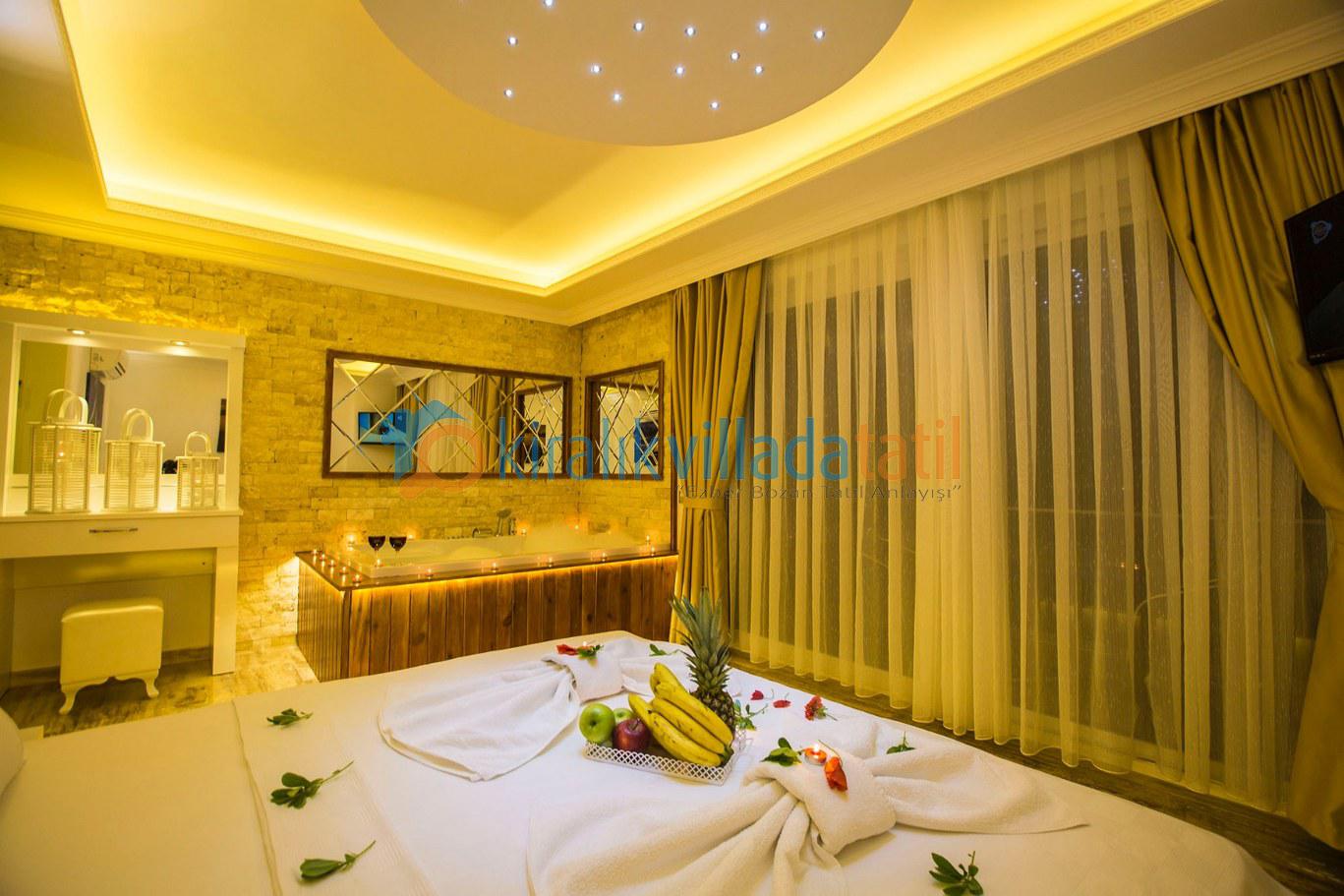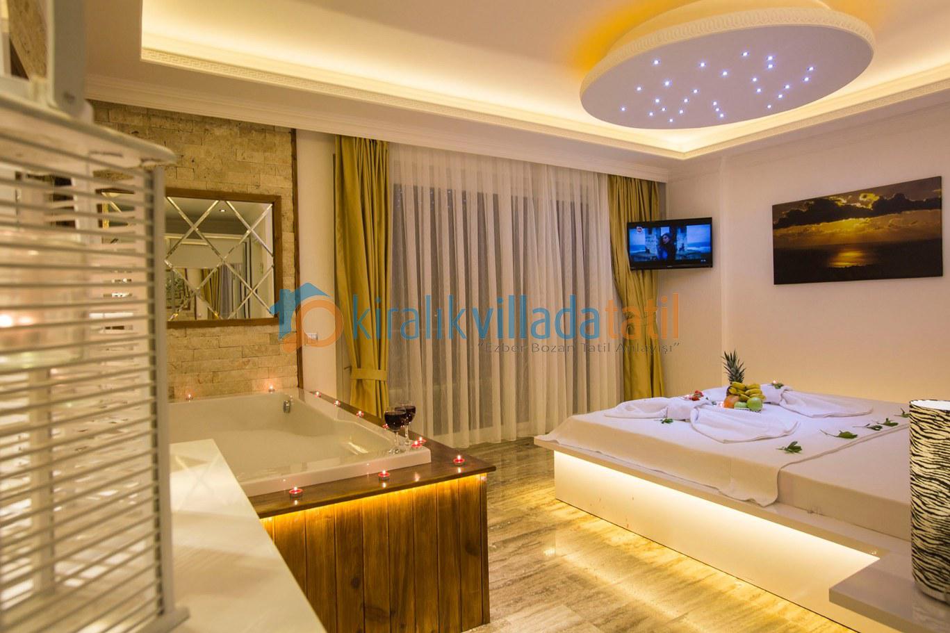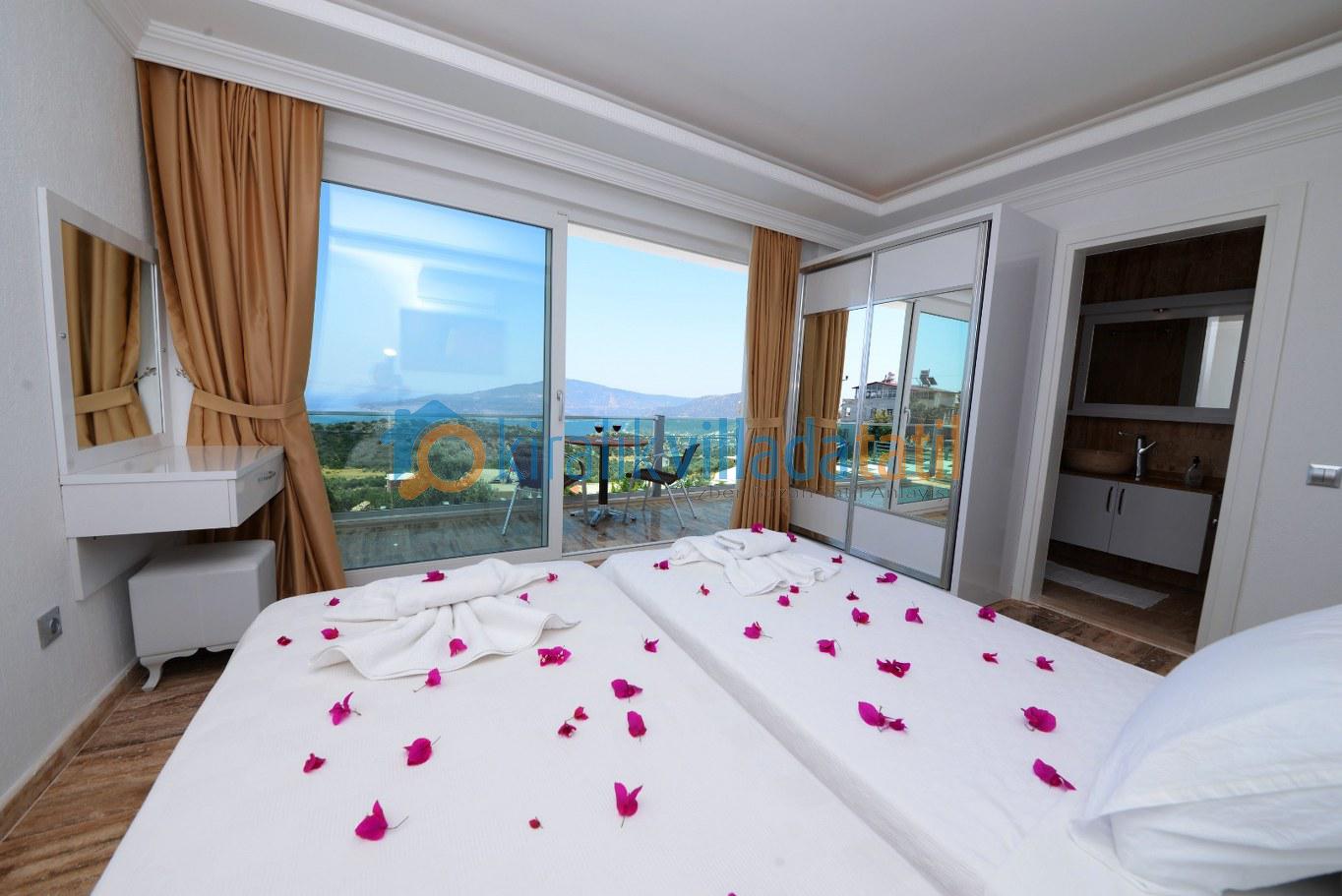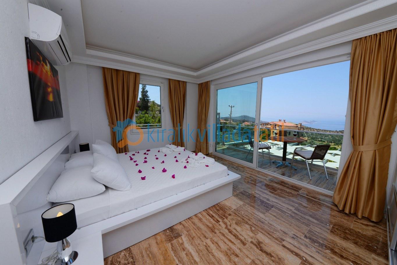 Dört yatak odası bulunan villanın, üç yatak odasında çift kişilik yatak, diğer yatak odasında ise, iki adet tek kişilik yatak bulunmaktadır. Yatak odalarının, kendilerine ait, klima, gardrop, makyaj masası, banyo-wc gibi olanakları mevcuttur.