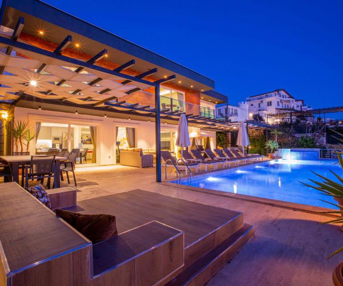 Bu ilan ait Detaylı açıklama ve bilinmesi gereken detaylarKalkan Kördere bölgesinde bulunan villa, deniz manzarası, lüks ve modern yapısı ile ön plana çıkmaktadır. 8 kişilk kapasiteye sahip olan villa, kalabalık aileler ve arkadaş grupları için ideal bir villadır.