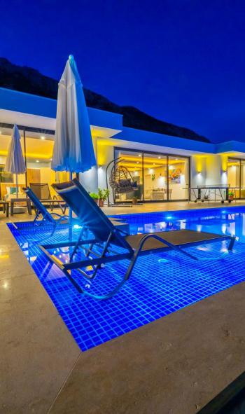 Bu ilan ait Detaylı açıklama ve bilinmesi gereken detaylarKalkan Kördere Bölgesi'nde yer alan villa, deniz ve doğa manzarasına sahip bir villadır. 4 kişilk kapasiteye sahiptir. Mahremiyetine önem veren aileler, balayı çiftleri için ideal olan villanın, havuz ve havuz terası dış gözlerden uzaktır.
