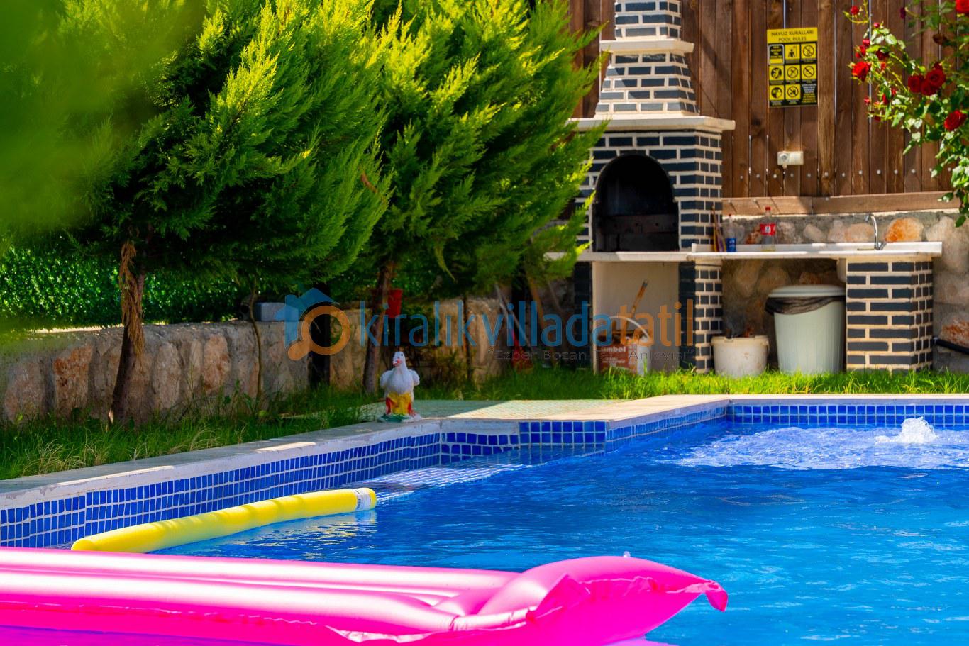 Gün içinde havuzun keyfini çıkarabilir, akşam saatlerinde mangal alanında sevdiklerinizle lezzetli yemekler hazırlayabilirsiniz. Eğlenceyi seven misafirler için villanın yeşil bahçesinde masa tenisi ve yatak odasında yer alan jakuzi de tatilinize keyif katan detaylardandır.