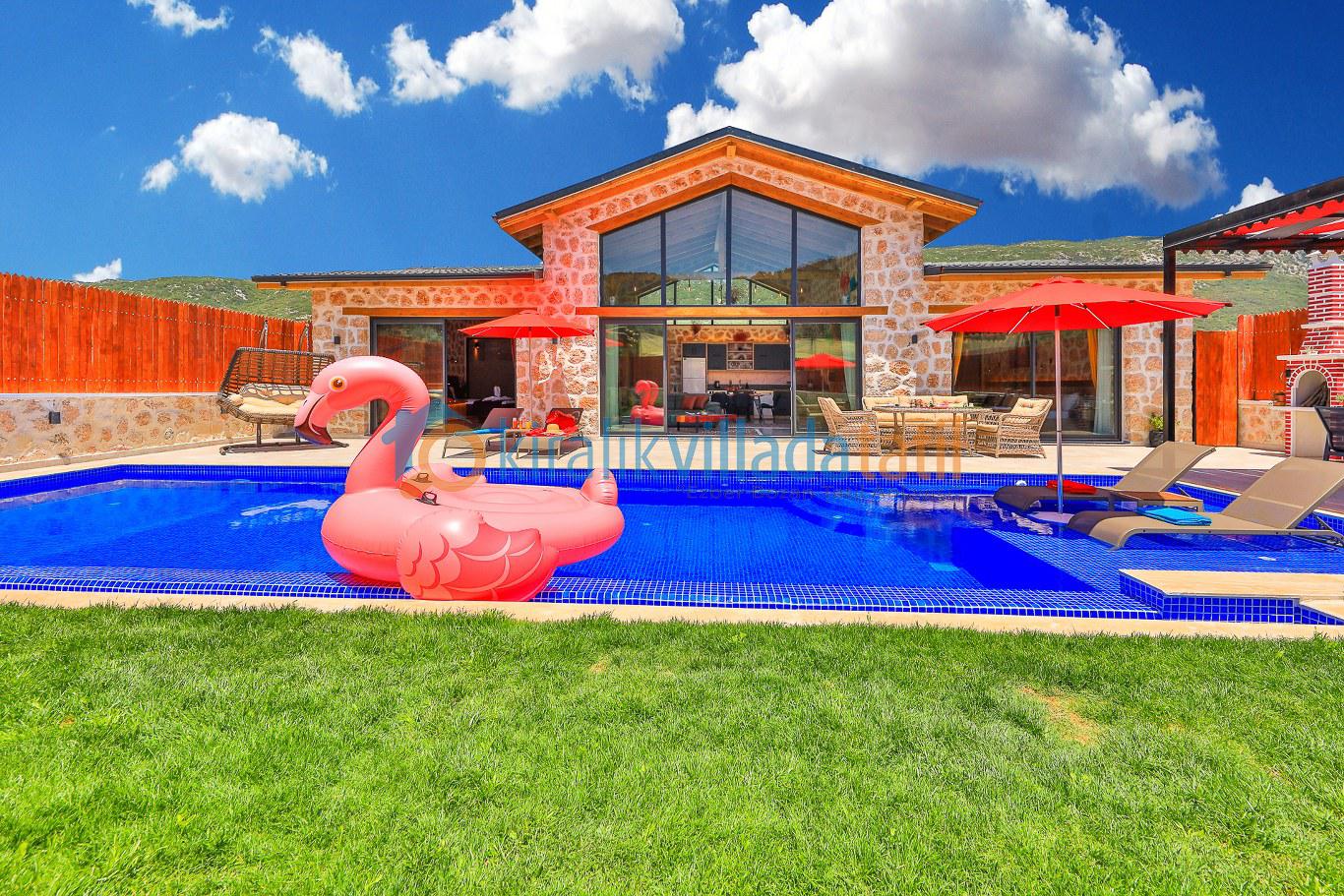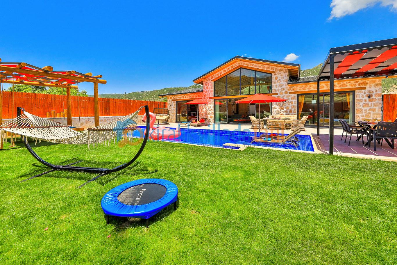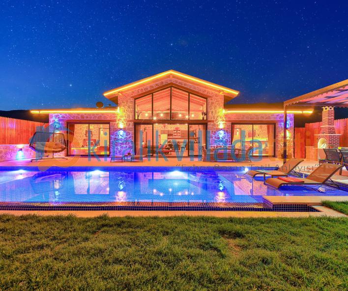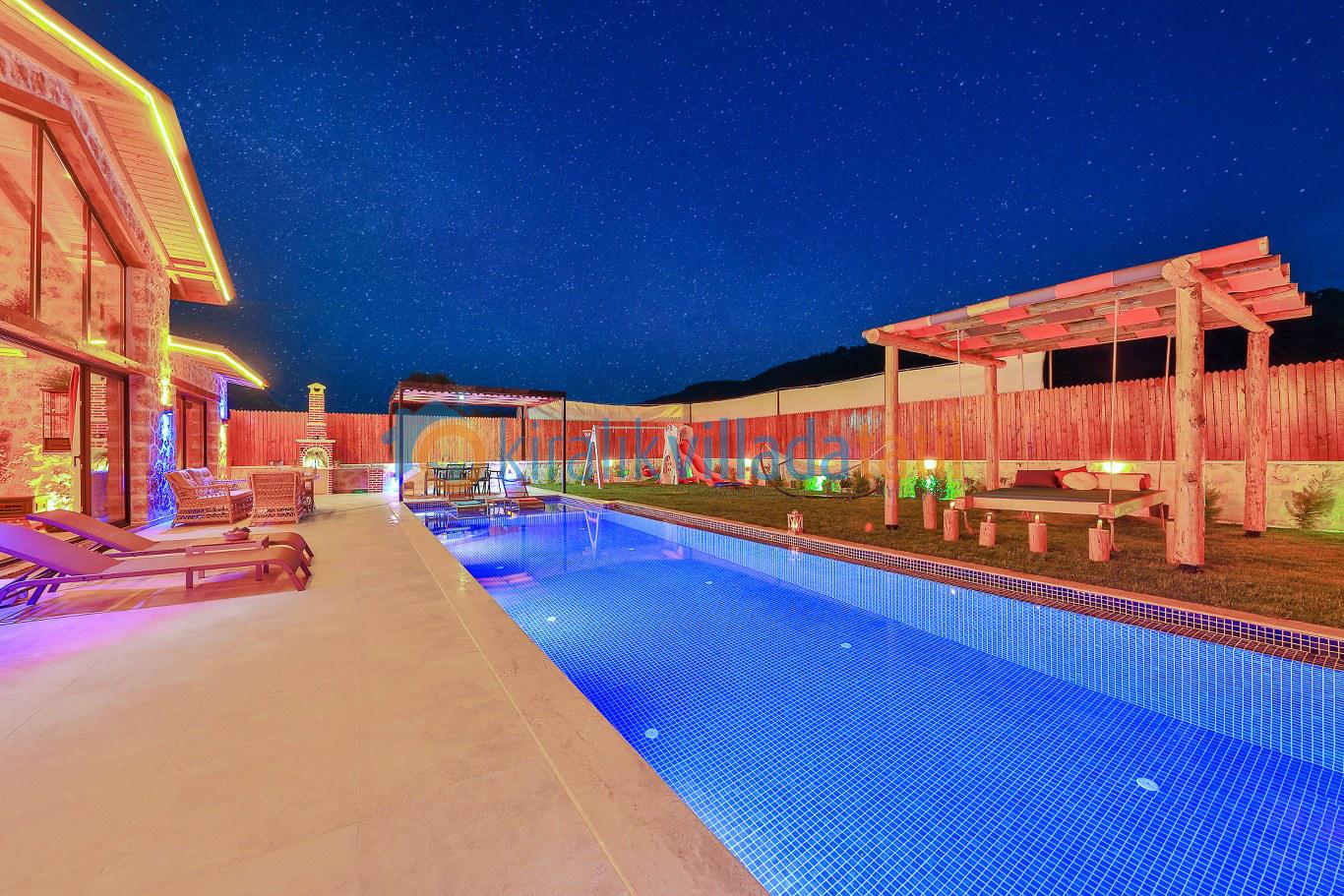 Kalkan’ın yemyeşil doğasıyla ünlü Sarıbelen bölgesinde yer alan bu özel villa, şehirden uzaklaşıp doğanın kalbinde huzurlu bir tatil yaşamak isteyen misafirler için mükemmel bir seçenektir.