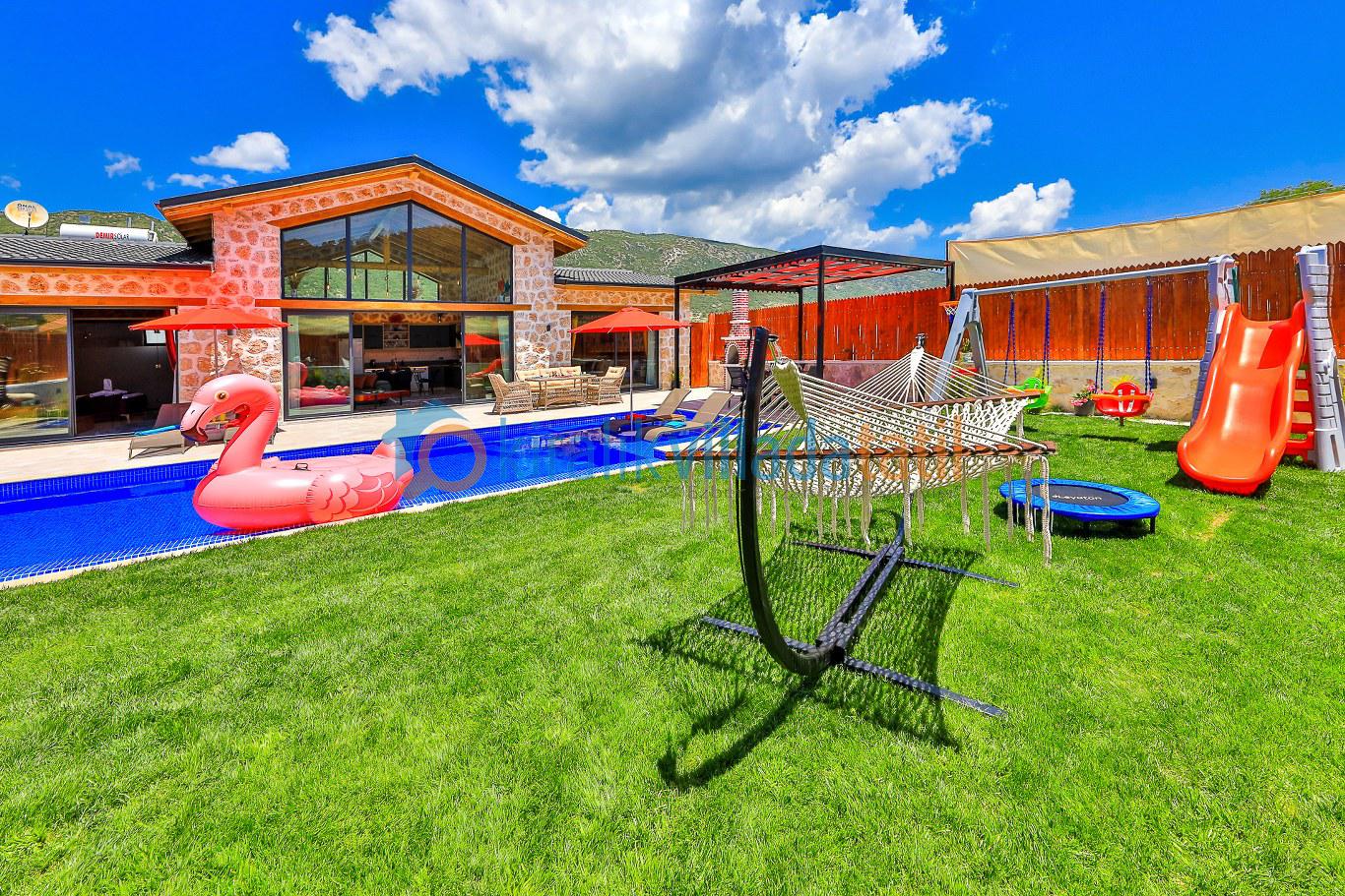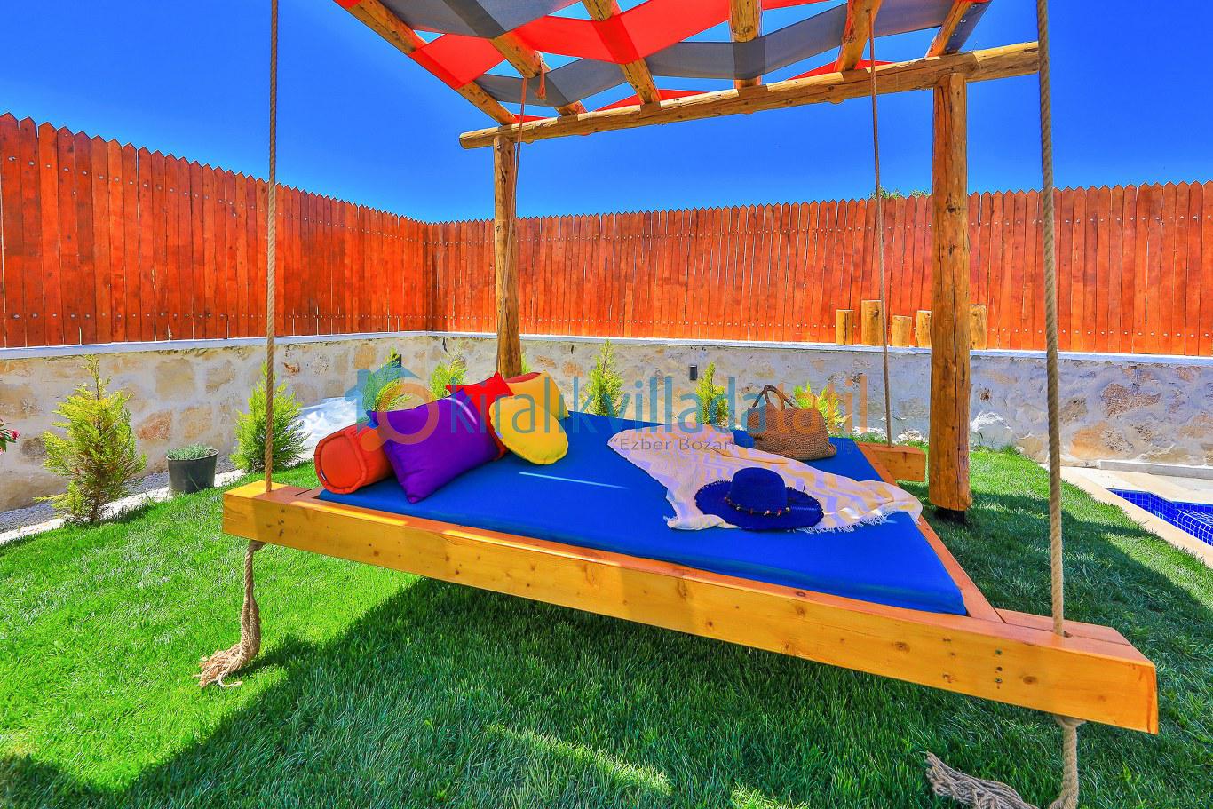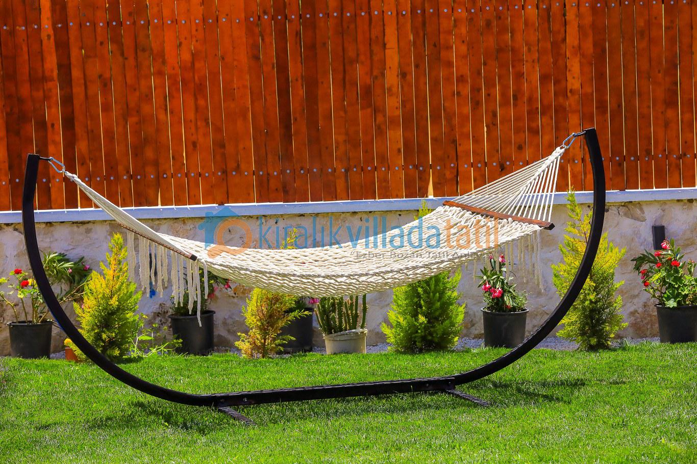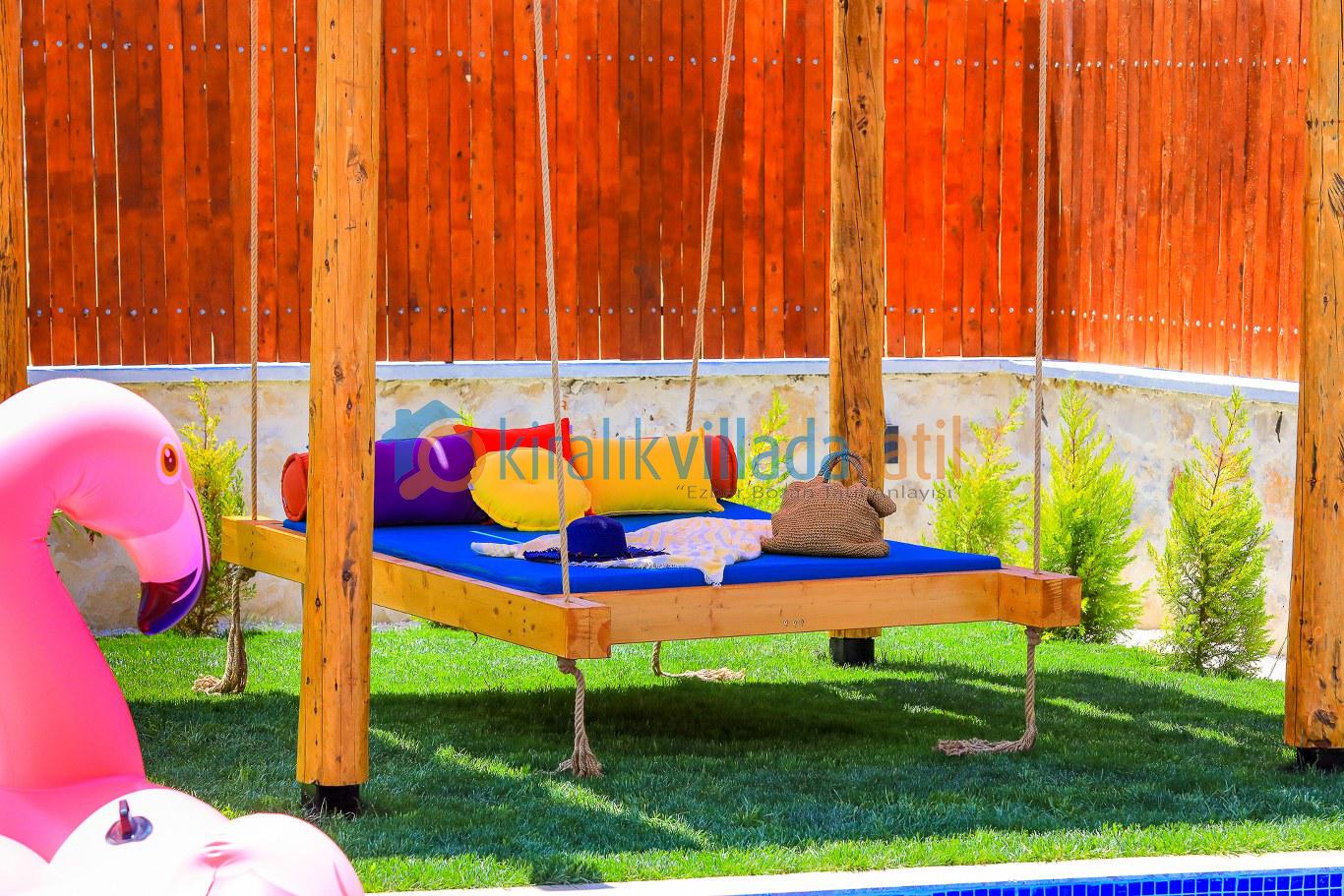 Villada eğlenceli zaman geçirmek isteyenler için barbekü alanı, jakuzi ve bahçede salıncaklı yatak gibi imkânlar da mevcuttur.