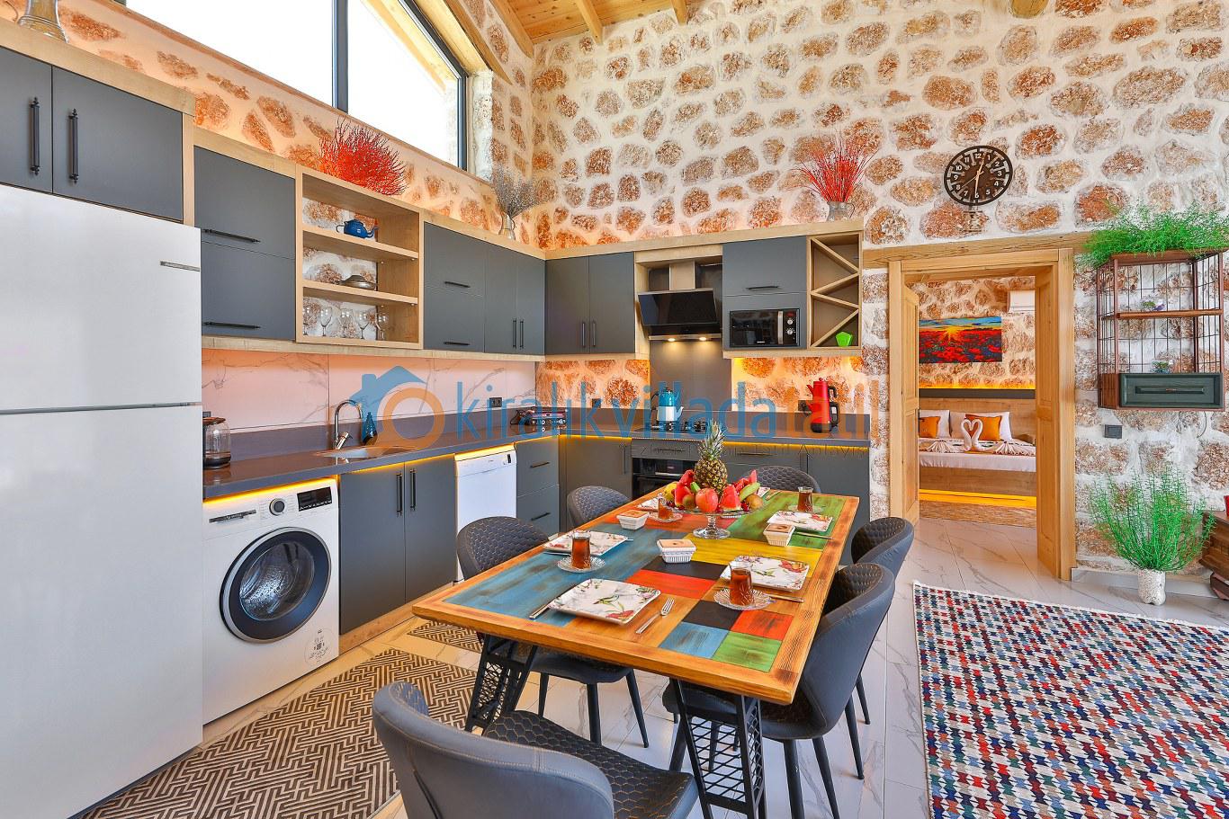 Tam donanımlı mutfak, ferah oturma alanı, konforlu yatak odaları ve kaliteli eşyalar sayesinde, evinizin rahatlığını aratmayacak bir konaklama deneyimi sizi bekliyor.