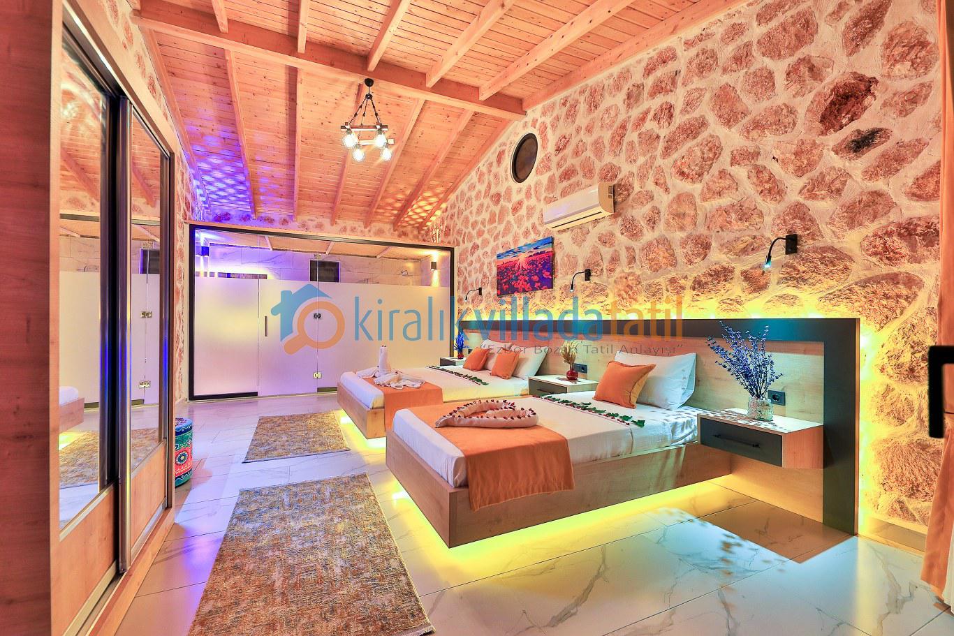 İki yatak odasıyla 5 kişilik konaklama kapasitesine sahip olan villa, özellikle çekirdek aileler ve mahremiyete önem veren misafirler için ideal bir muhafazakâr villa konseptinde tasarlanmıştır.