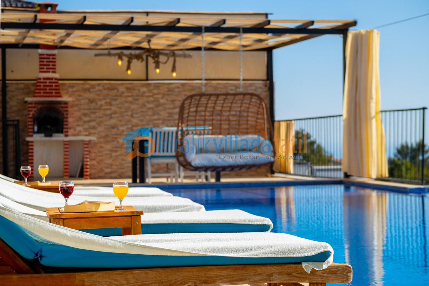 Tatil boyunca ihtiyaç olabilecek gerekli ev ve mutfak eşyaları bulunan villamızda, mangal severler için mangal alanı da mevcuttur. Villadaki eşyalar, misafirin konforu düşünülerek en ince ayrıntısına kadar düşünülerek dizayn edilmiştir.