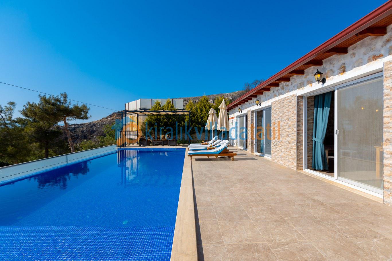 Bu ilan ait Detaylı açıklama ve bilinmesi gereken detaylarKalkan'ın doğa ile içiçe bölgesi İslamlar'da bulunan villa, panoramik deniz manzarası, önü açık doğa manzarası ile ön plana çıkmaktadır. 4 kişilik kapasiteye sahip olan villa, korunaklı havuz ve havuz terası ile, mahremiyetine önem veren aileler ve balayı çiftleri için ideal bir villadır.