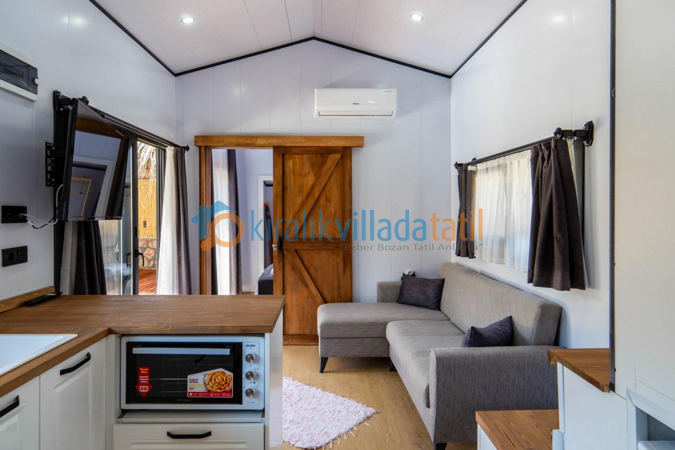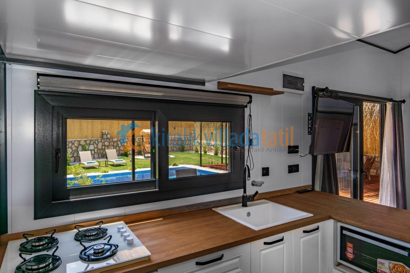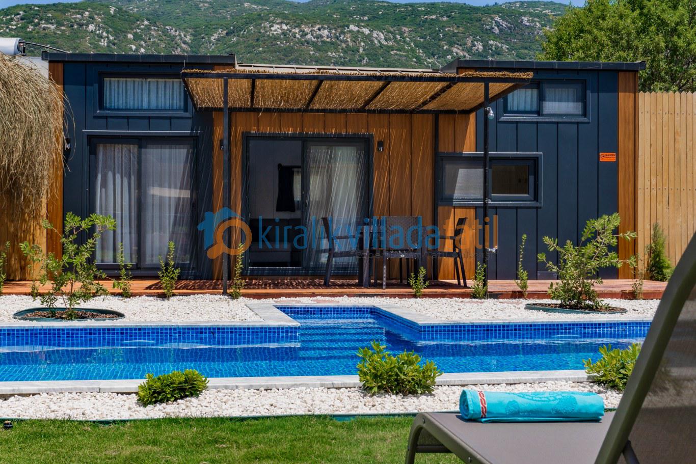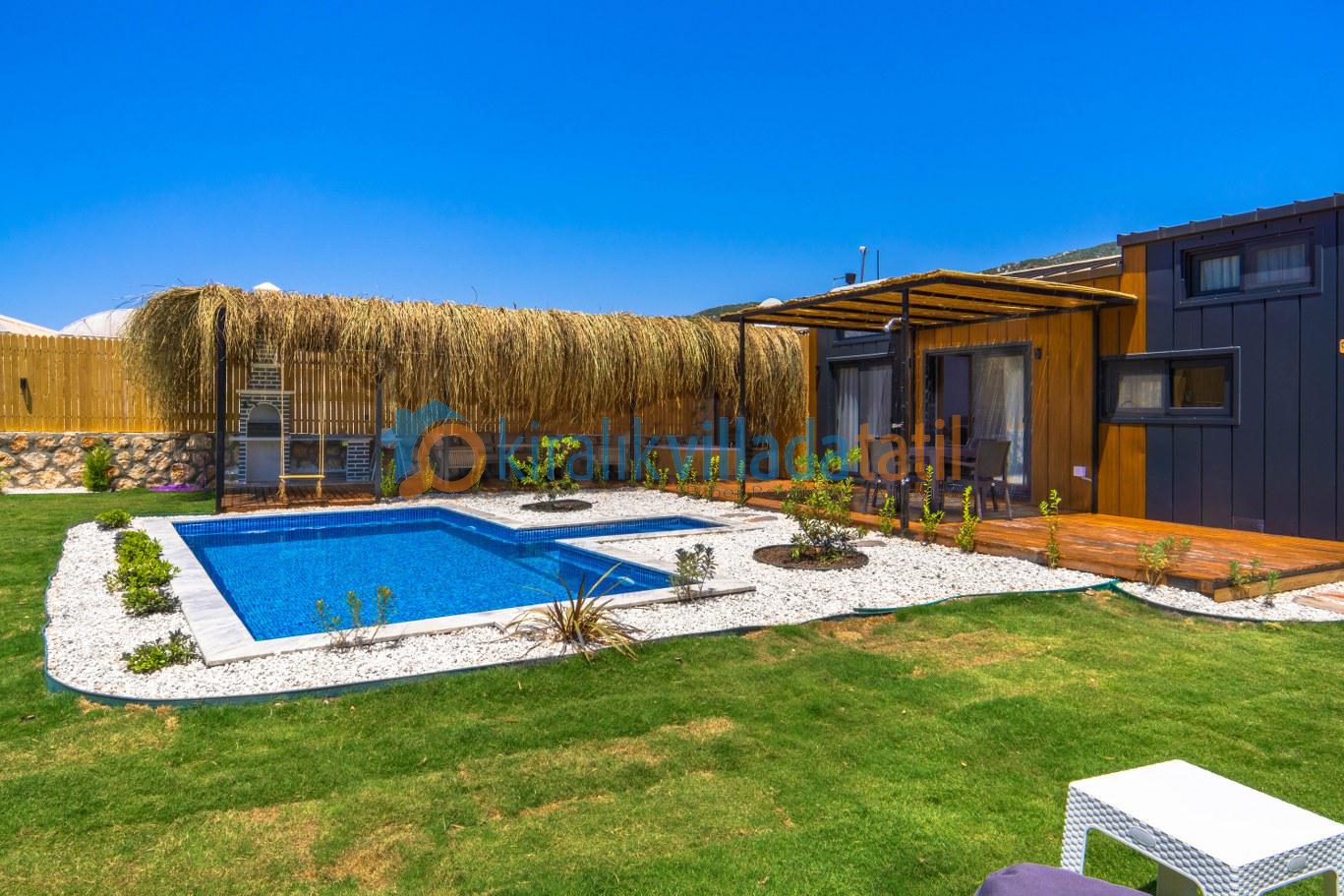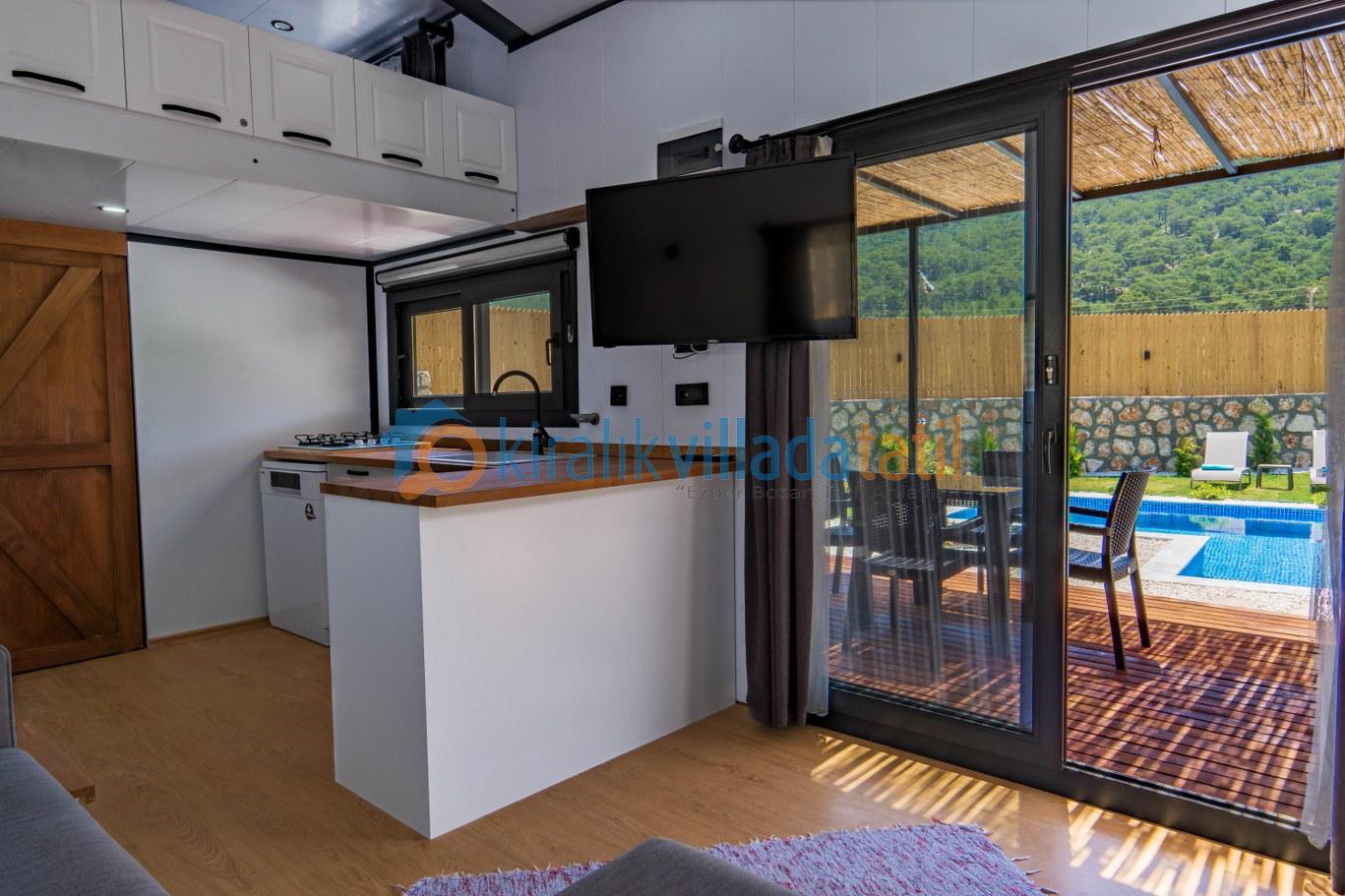 Bu ilan ait Detaylı açıklama ve bilinmesi gereken detaylarKalkan'ın doğası ile öne çıkan bölgesi Sarıbelen'de bulunan villa, tiny house konseptine sahip, 4 kişilik bir villadır. Havuz ve havuz terası dış gözlerden uzak olan villa, mahremiyetine önem veren muhafazakar aileler ve balayı çiftleri için ideal bir villadır.