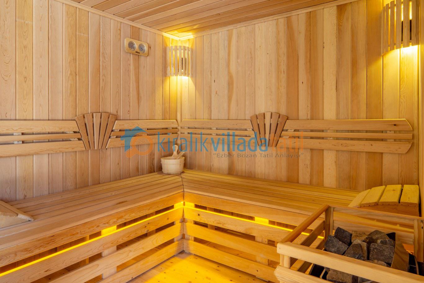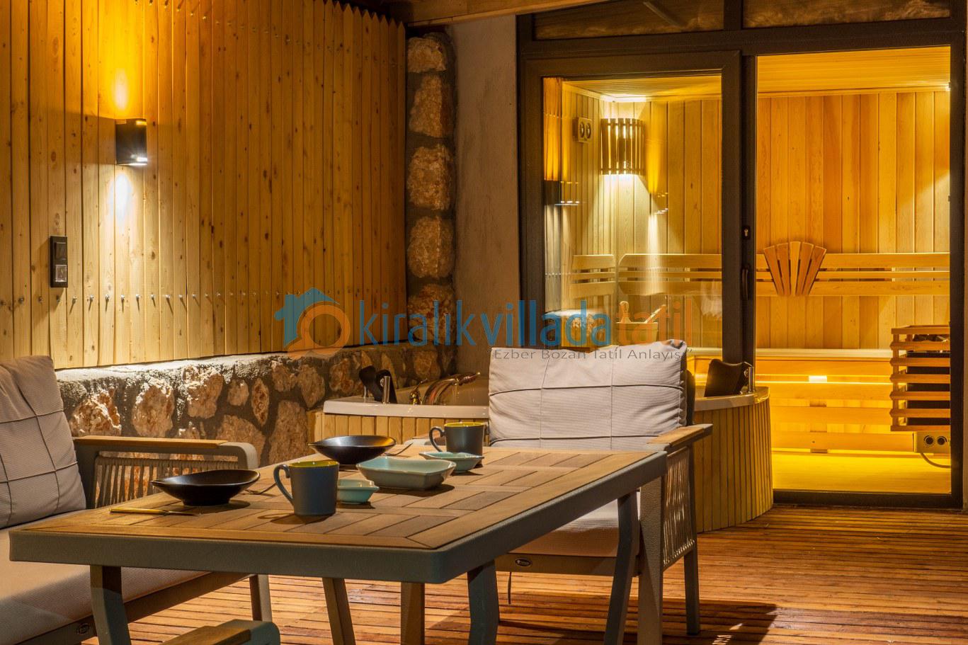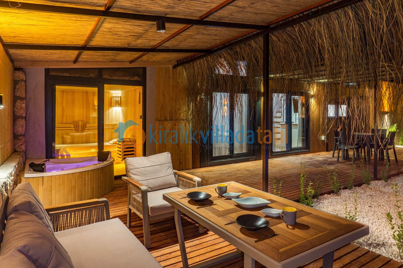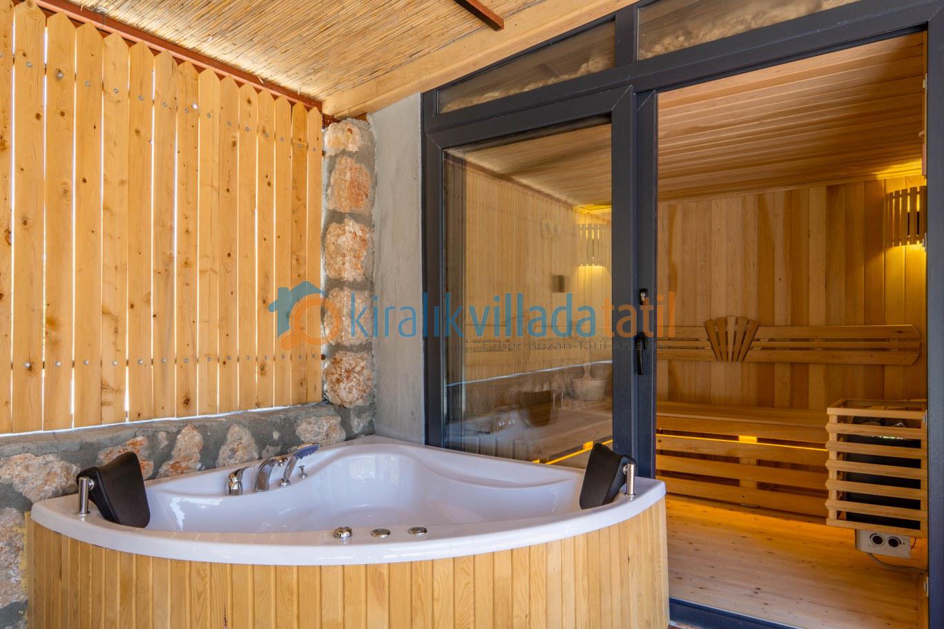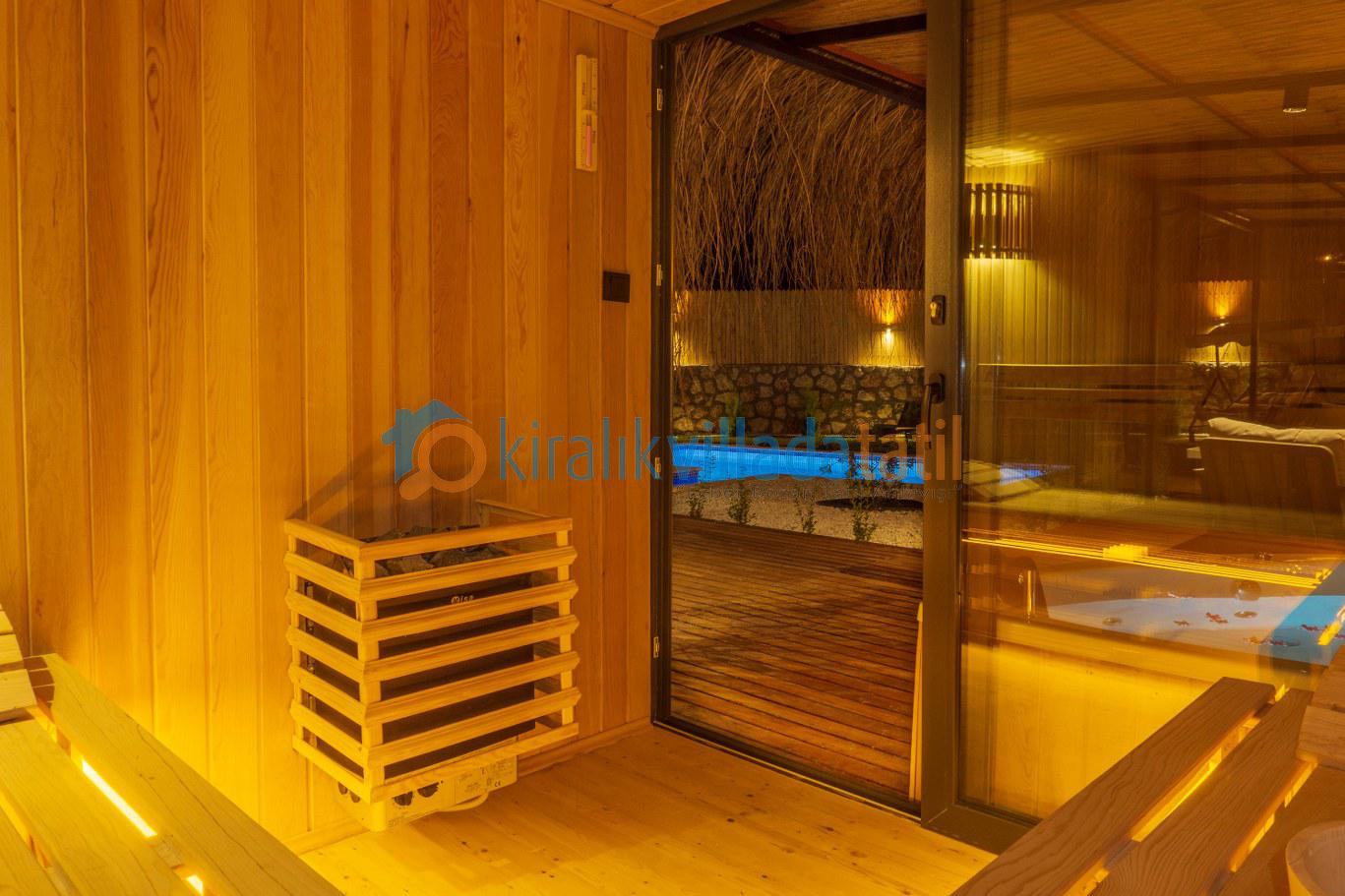 Geniş yeşil bahçesi, dış gözlerden uzak, doğa içinde dinlendirici bir tatil sunan villa, aynı zamanda, sauna, jakuzi, mangal alanı gibi olanakları ile eğlenceli bir tatil de sunmaktadır.