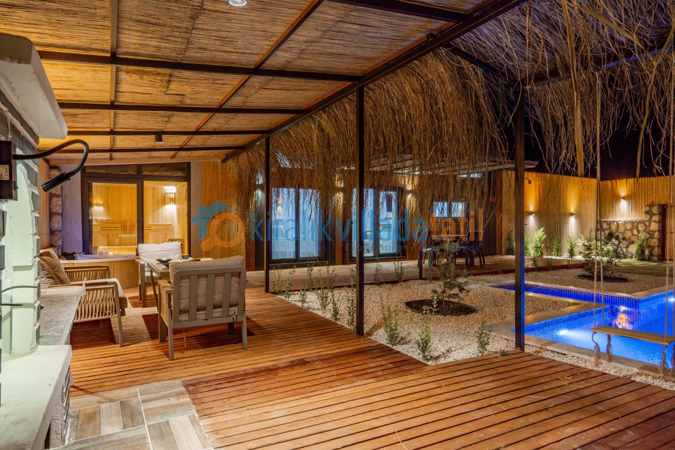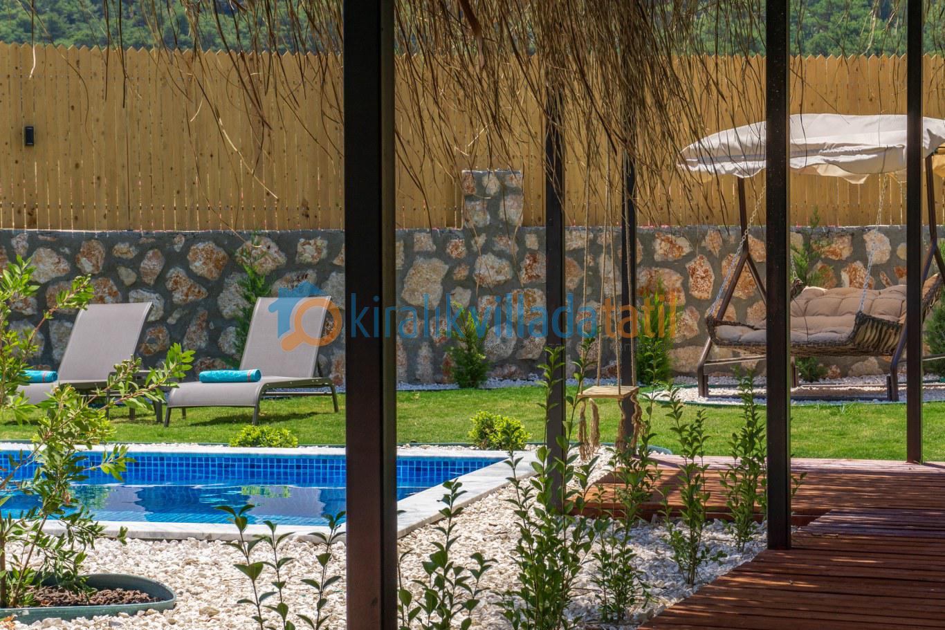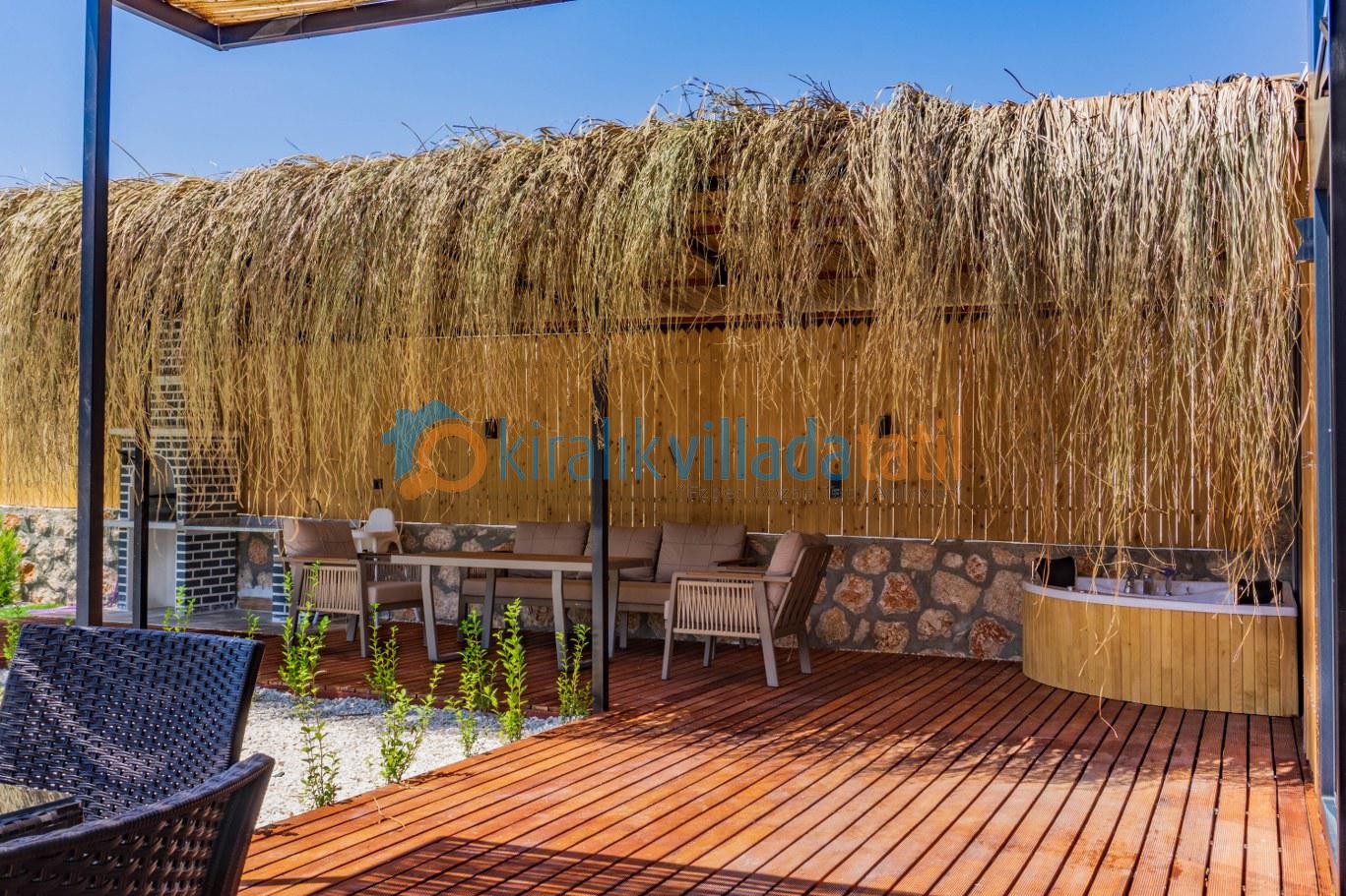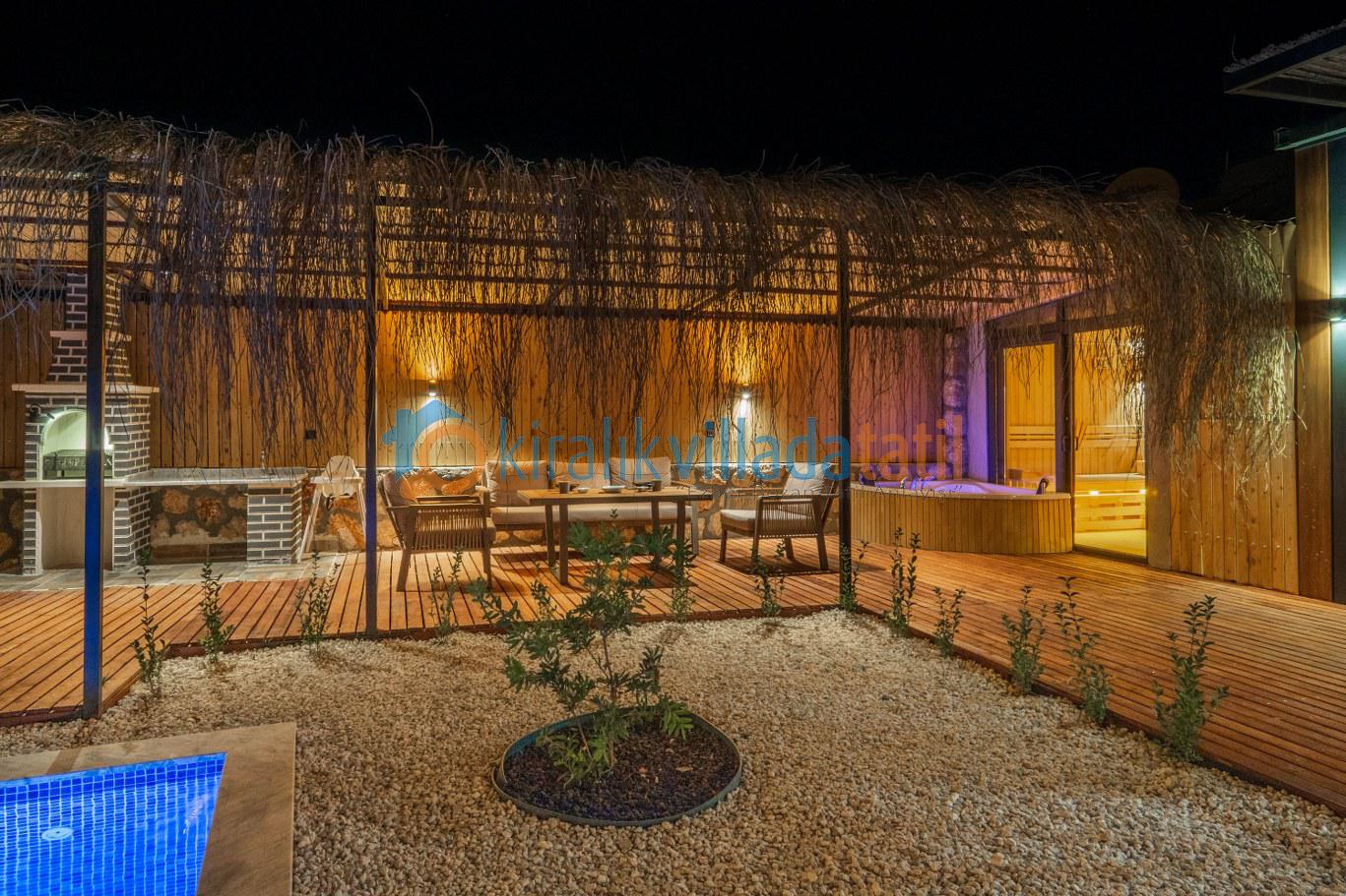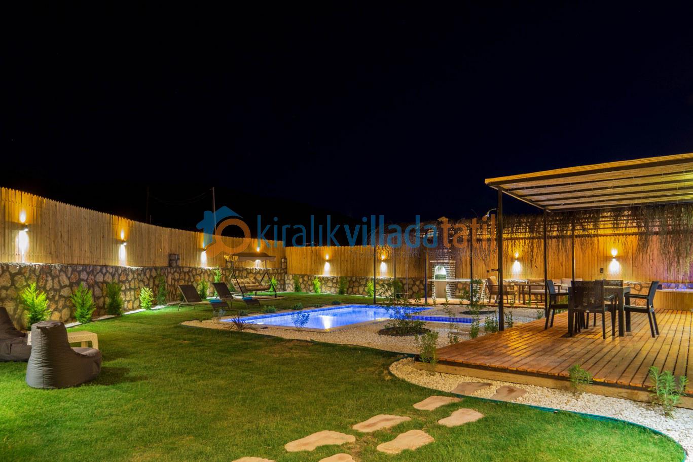 Geniş yeşil bahçesi, dış gözlerden uzak, doğa içinde dinlendirici bir tatil sunan villa, aynı zamanda, sauna, jakuzi, mangal alanı gibi olanakları ile eğlenceli bir tatil de sunmaktadır.