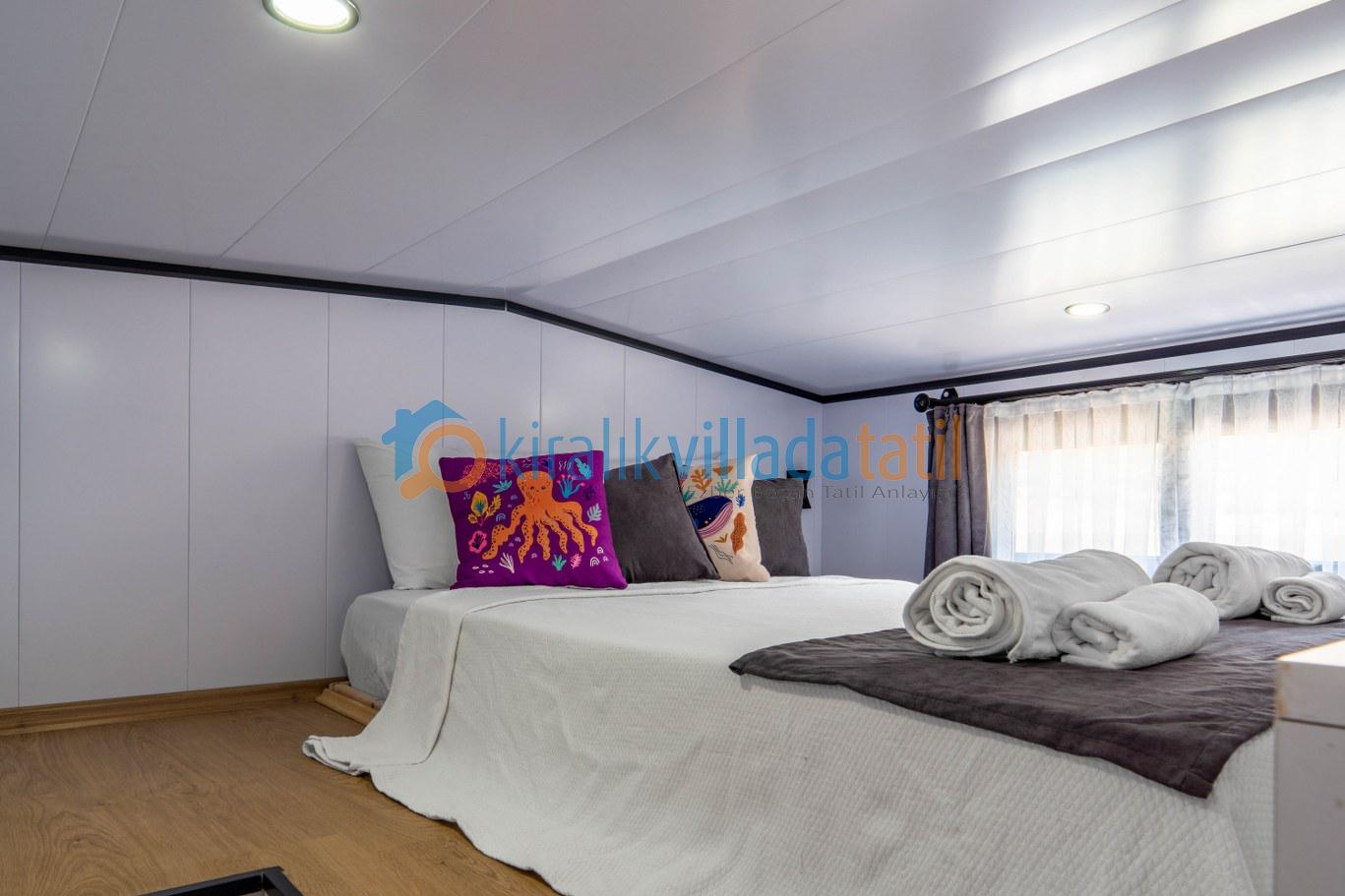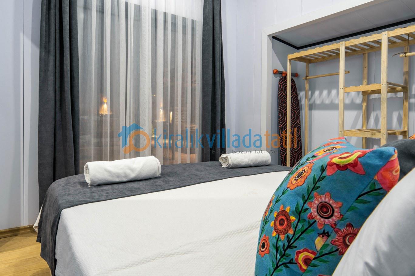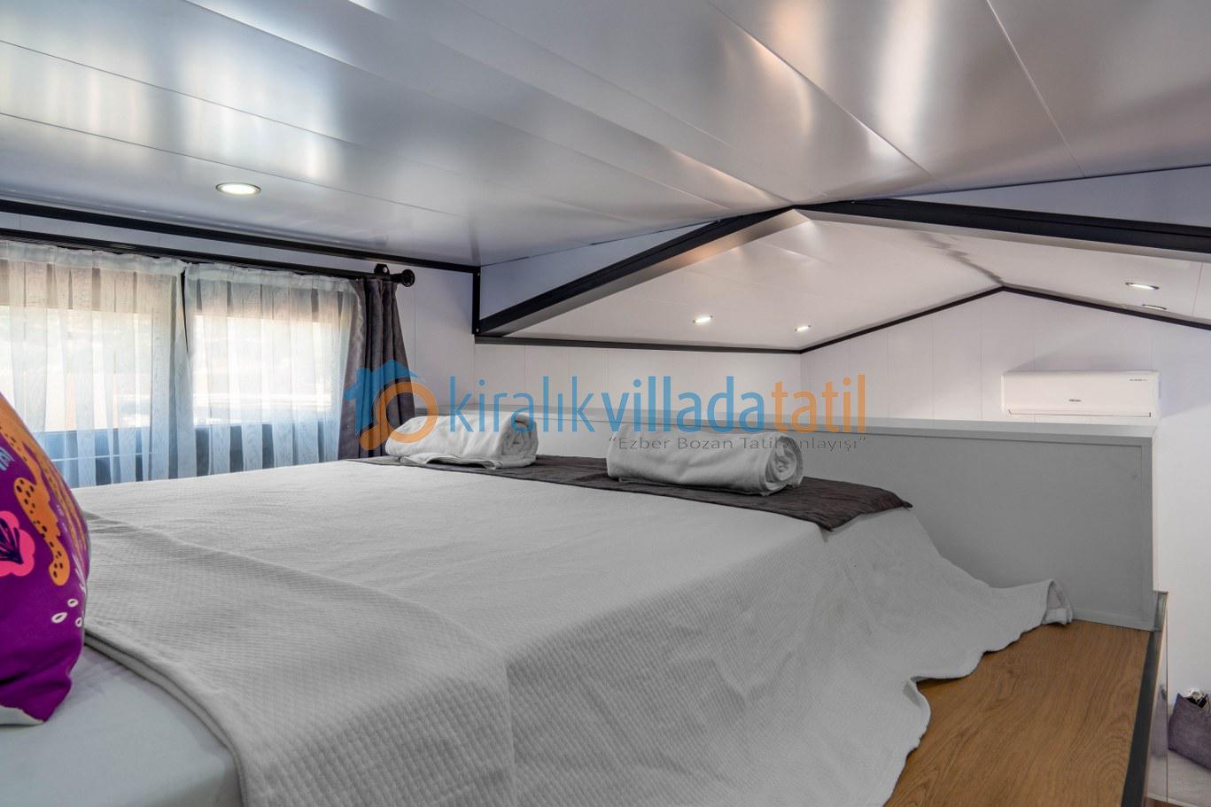 İki yatak odası bulunan villanın, her iki yatak odasında da çift kişilik yatak mevcut olup, yatak odalarının kendilerine ait oda malzemeleri mevcuttur. Villada tek bir klima ve ortak kullanım banyo-wc bulunmaktadır.