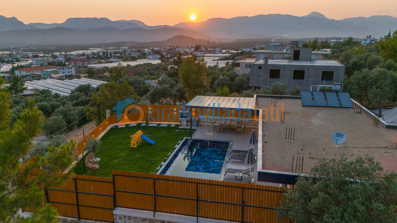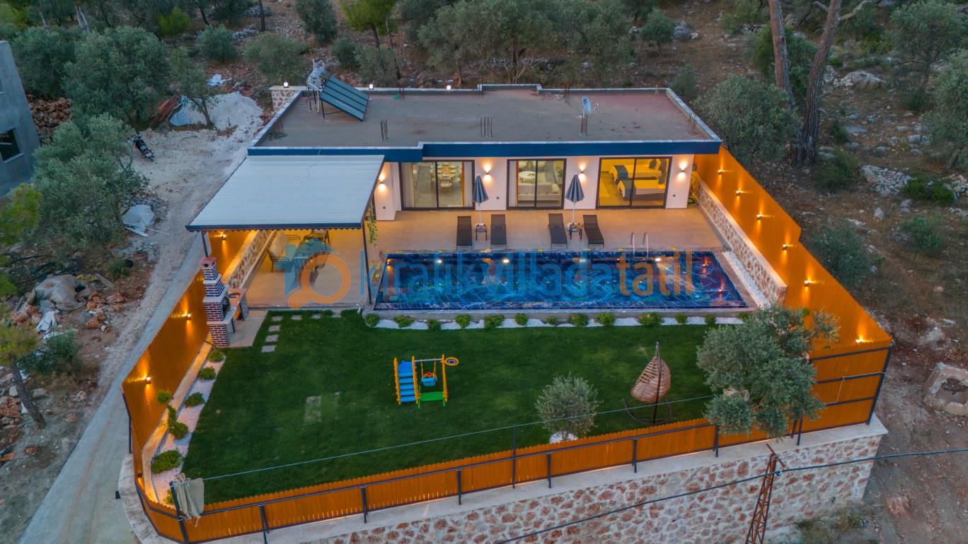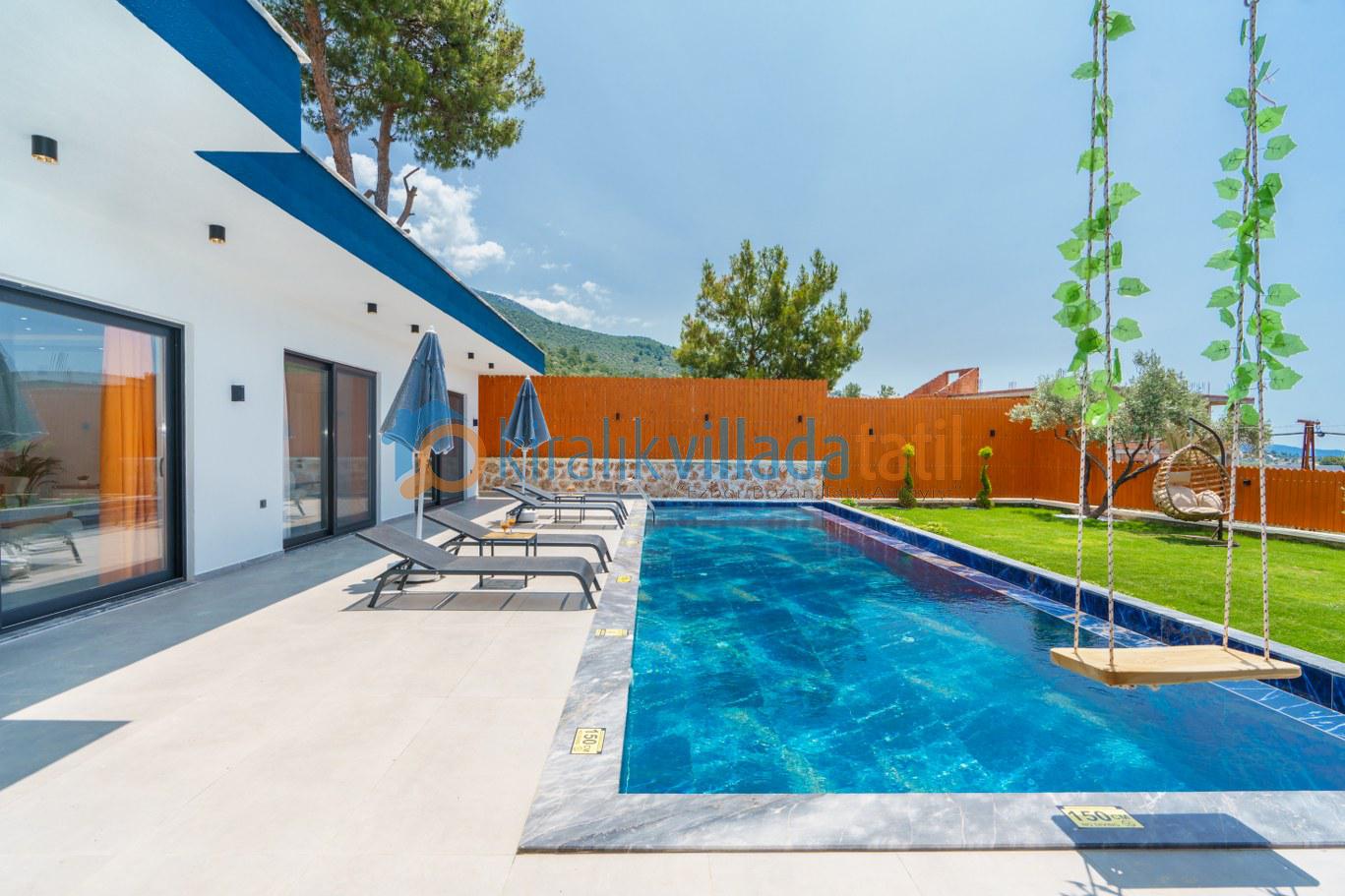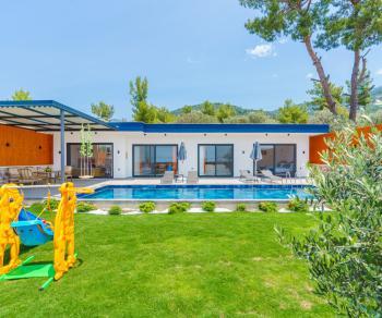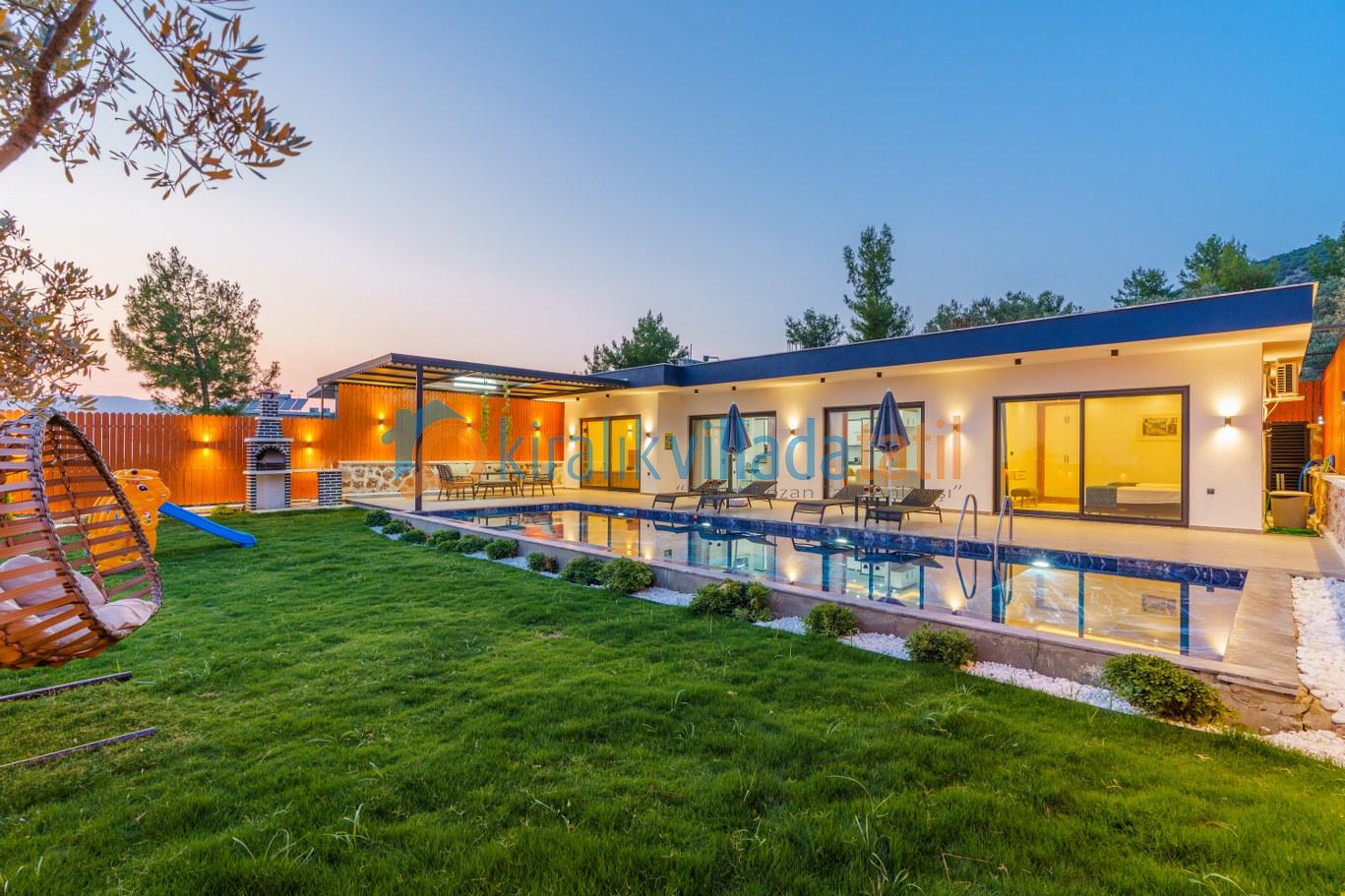 Geniş bir yeşil bahçeye sahip olan villa, jakuzi, çocuk oyun alanı, mangal alanı, bahçe mobilyaları gibi olanakları ile rahat bir tatil yaşamanızı sağlayacaktır.