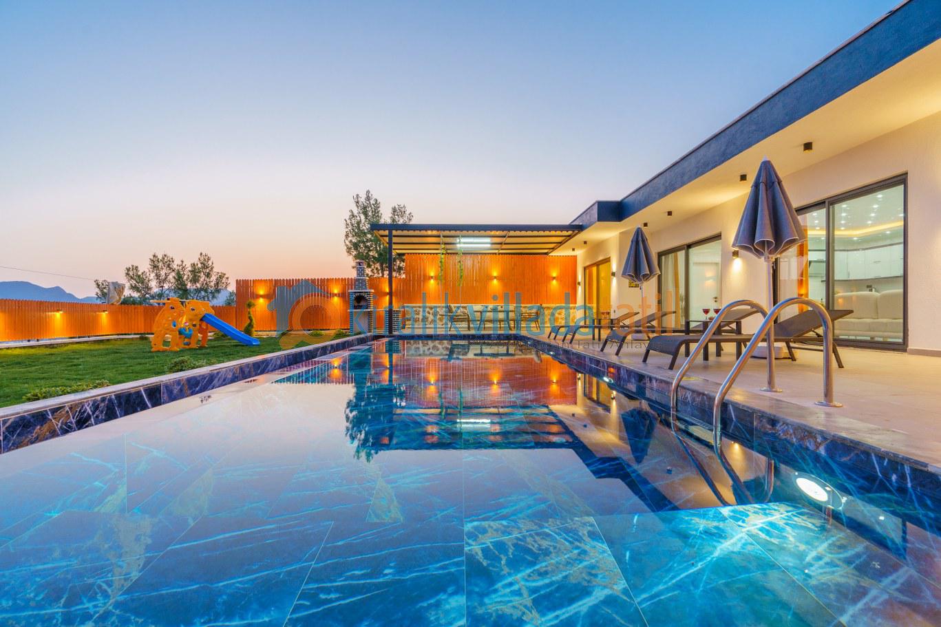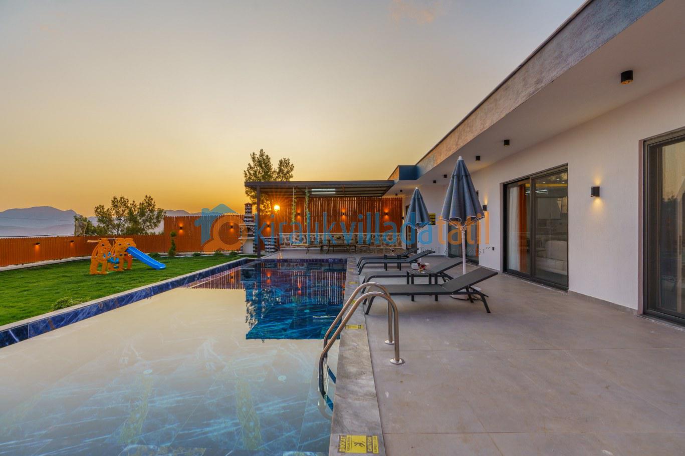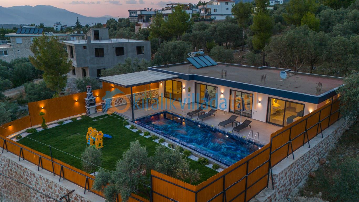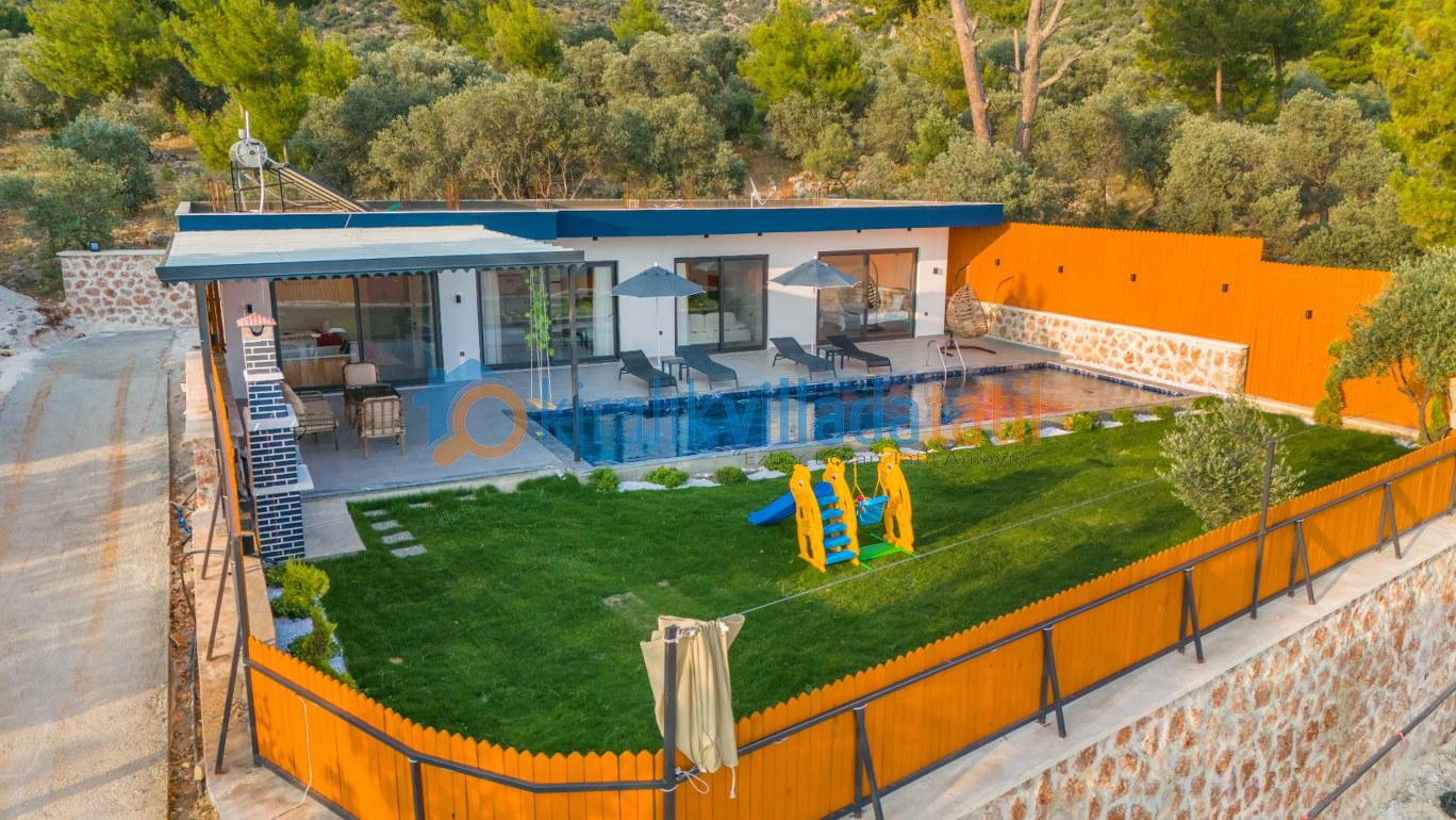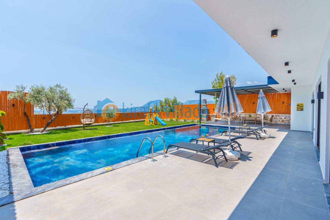 Geniş bir yeşil bahçeye sahip olan villa, jakuzi, çocuk oyun alanı, mangal alanı, bahçe mobilyaları gibi olanakları ile rahat bir tatil yaşamanızı sağlayacaktır.