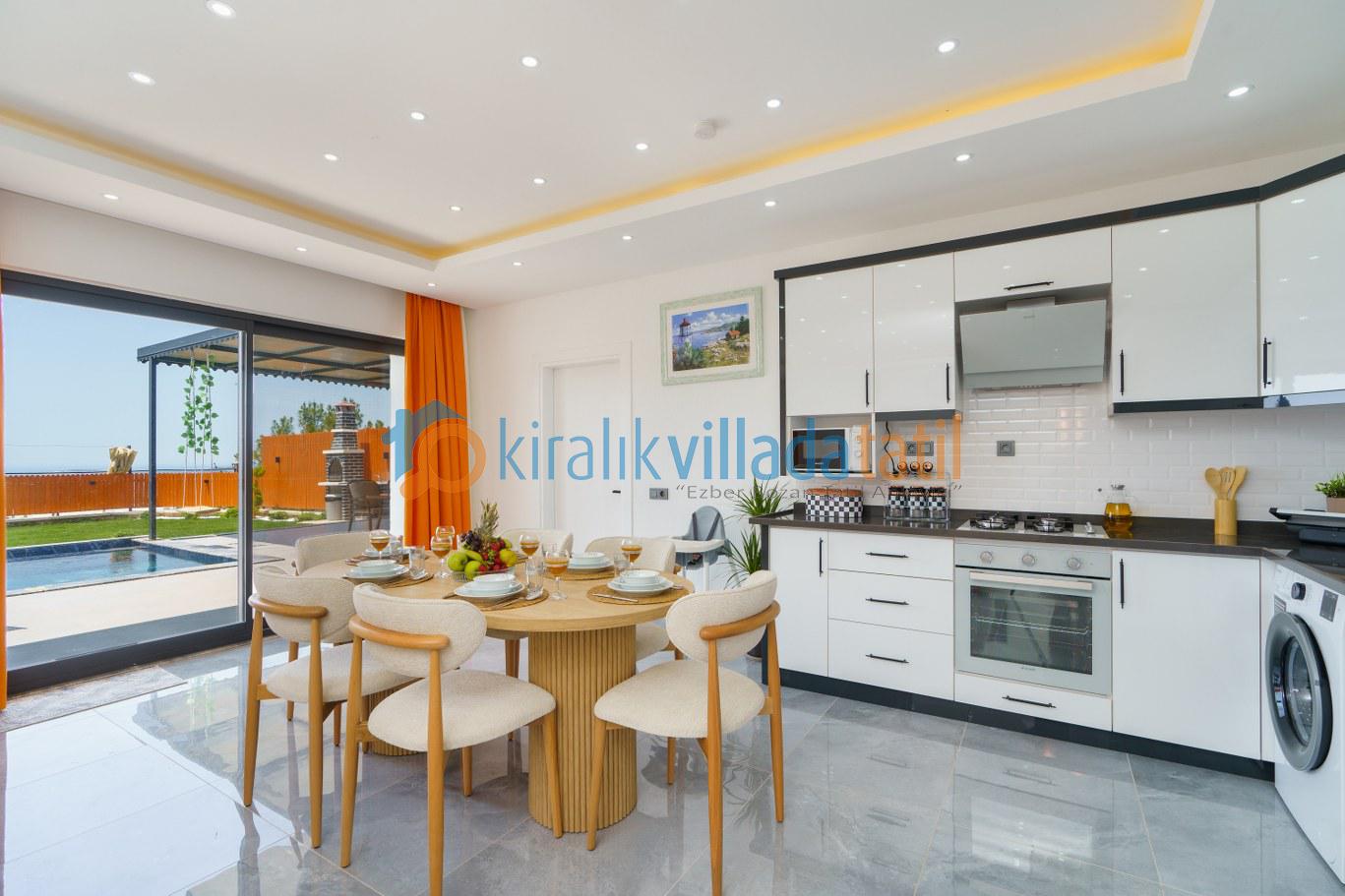 Tatil boyunca ihtiyaç olabilecek gerekli ev ve mutfak araç gereçleri villada bulunmakta olup, misafirlerin konforu ve rahatı için, modern ve lüks malzemeler ile dizayn edilmiştir.