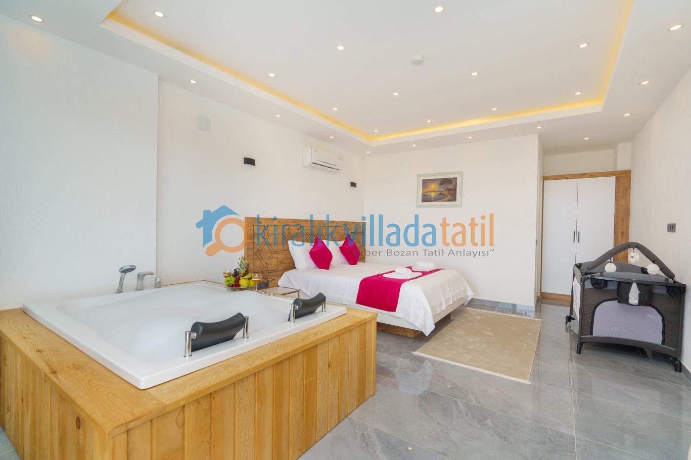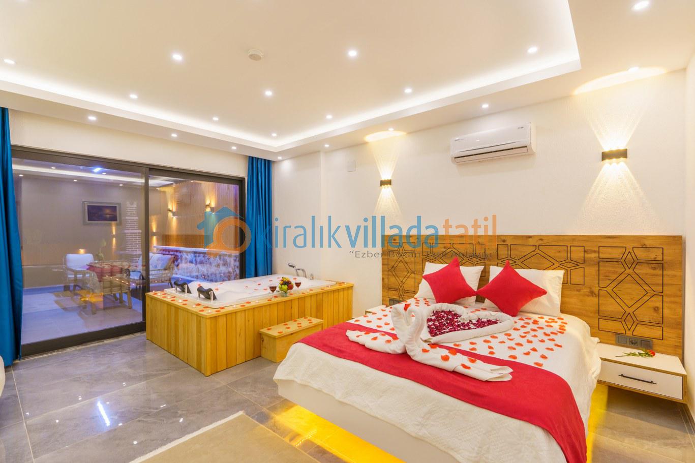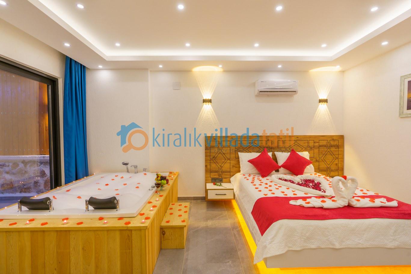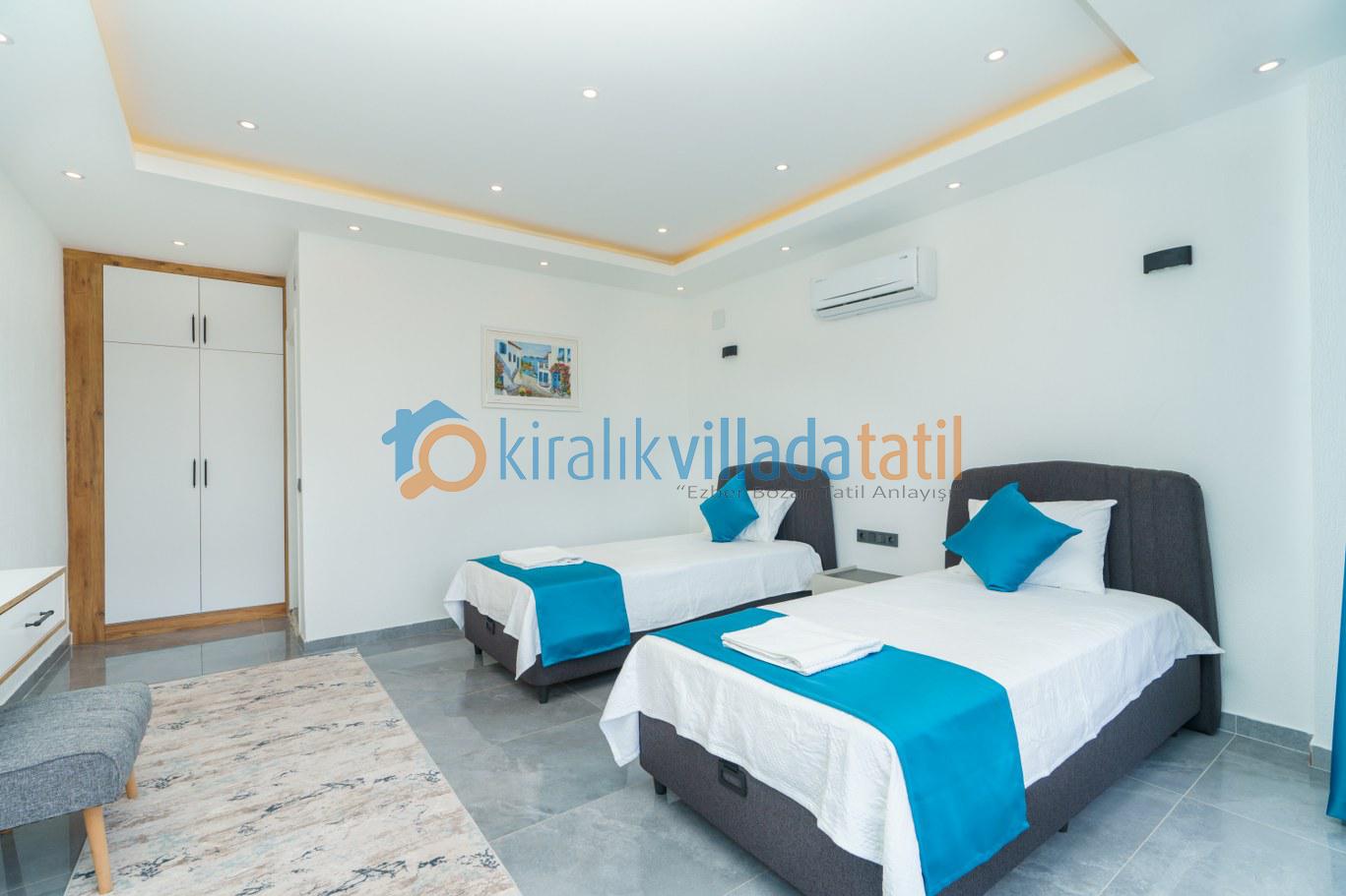 İki yatak odası bulunan villanın, ana yatak odasında çift kişilik yatak, diğerinde ise, iki adet tek kişilik yatak mevcuttur. Odalarda, gerekli olabilecek oda eşyaları, banyo-wc bulunmaktadır.