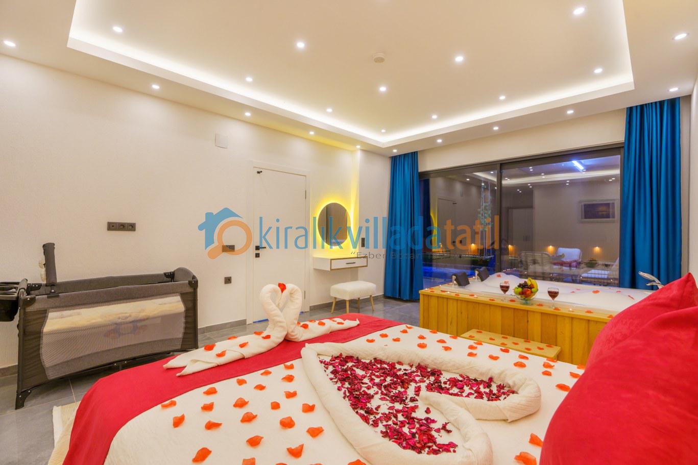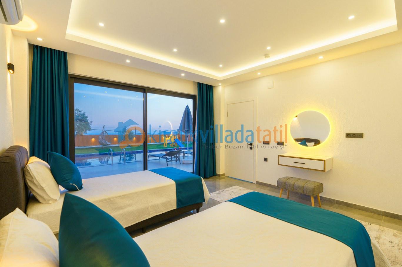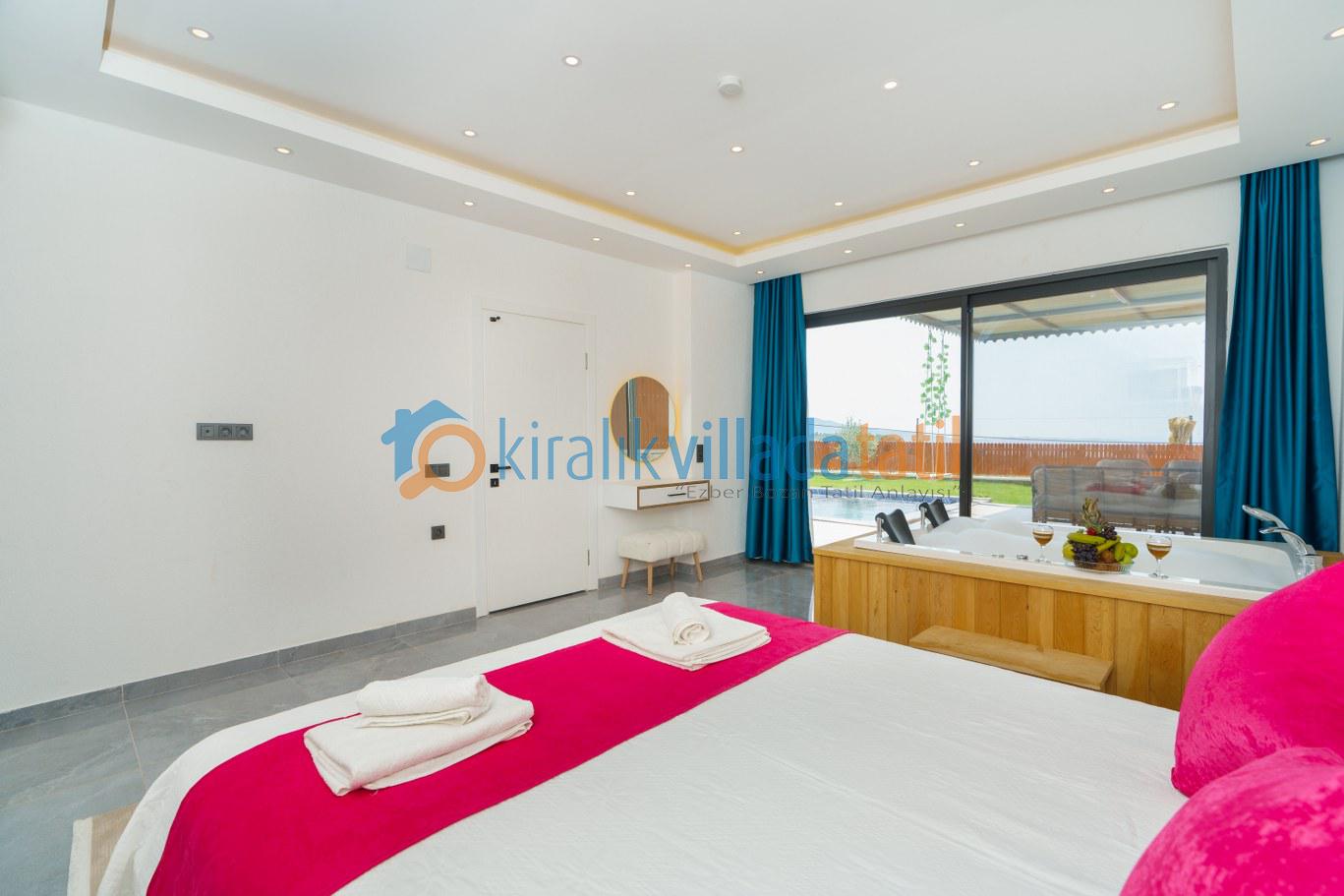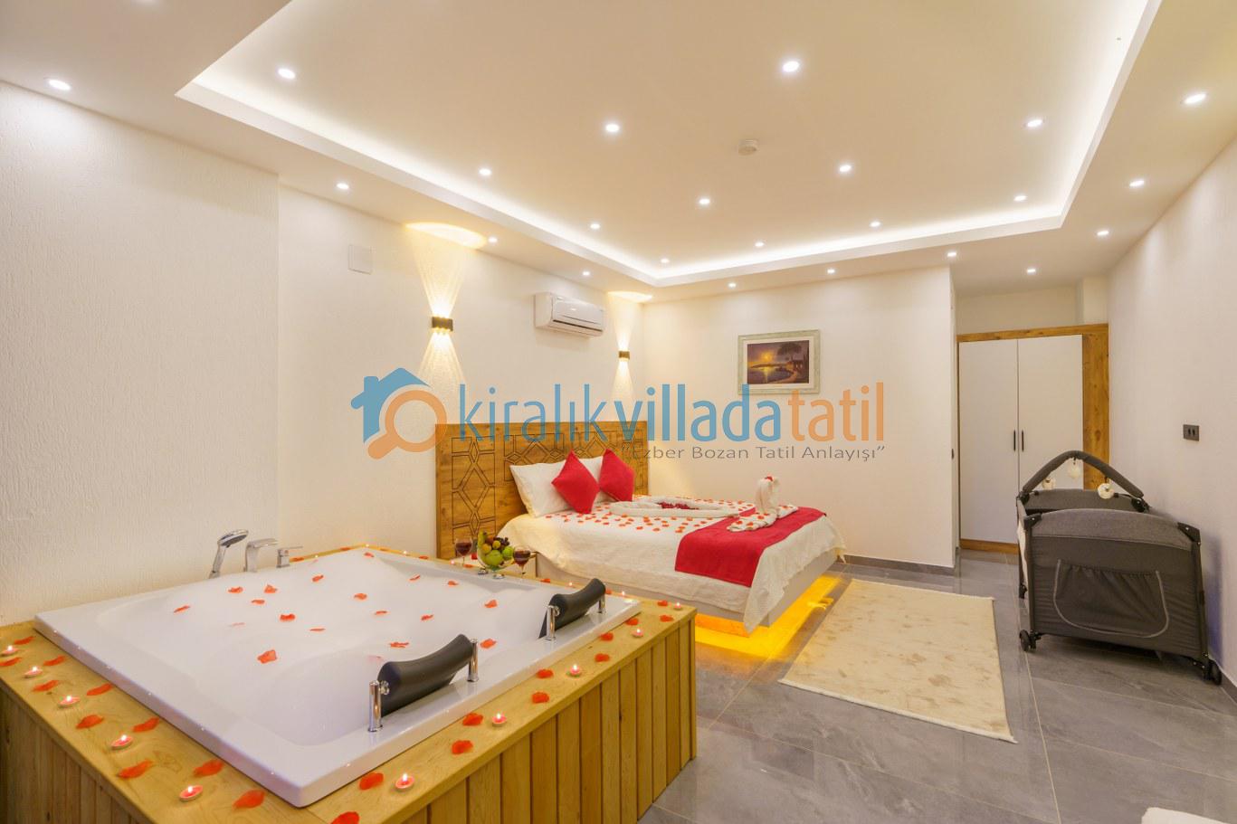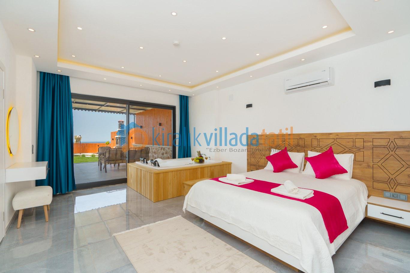 İki yatak odası bulunan villanın, ana yatak odasında çift kişilik yatak, diğerinde ise, iki adet tek kişilik yatak mevcuttur. Odalarda, gerekli olabilecek oda eşyaları, banyo-wc bulunmaktadır.