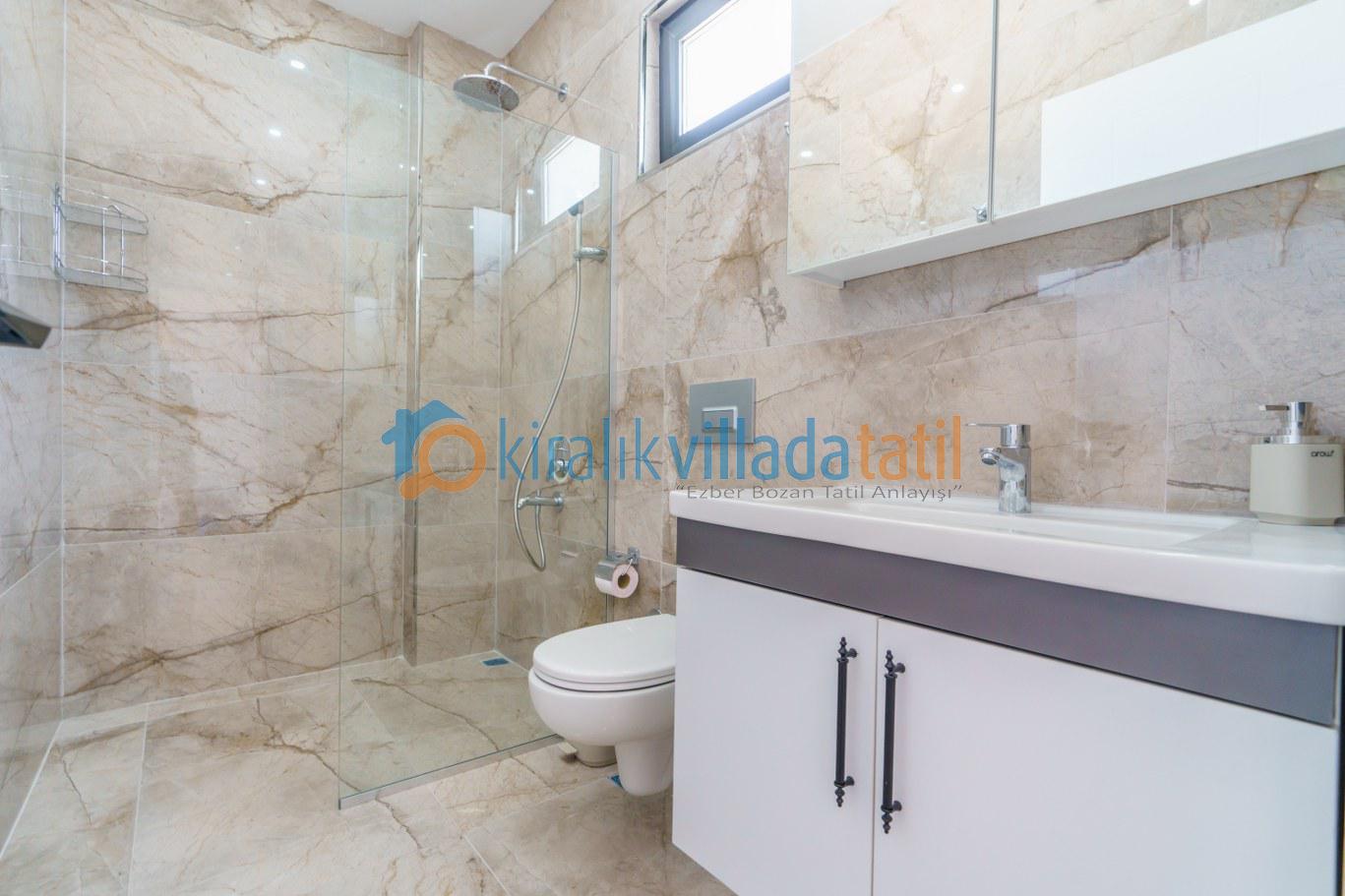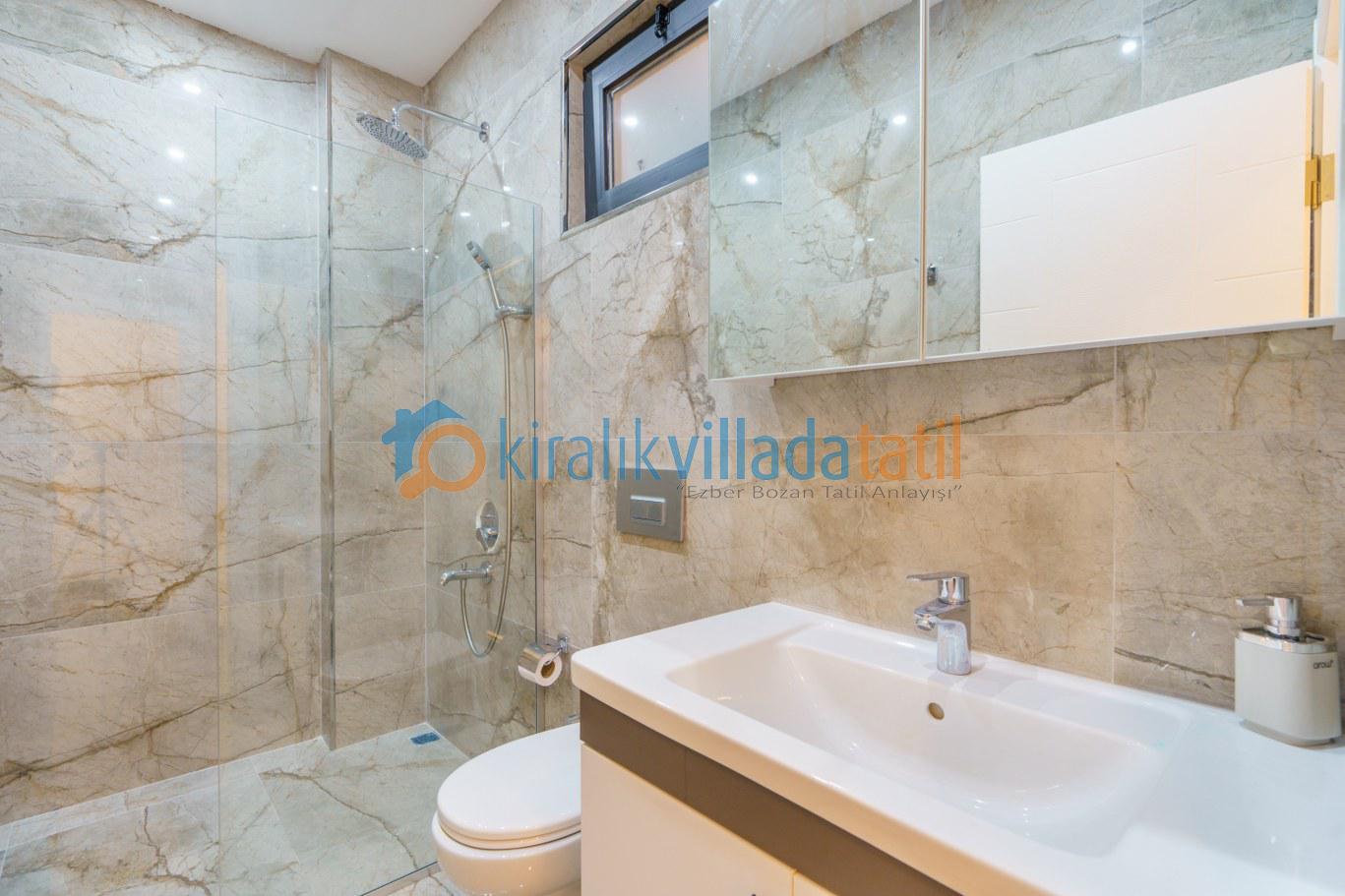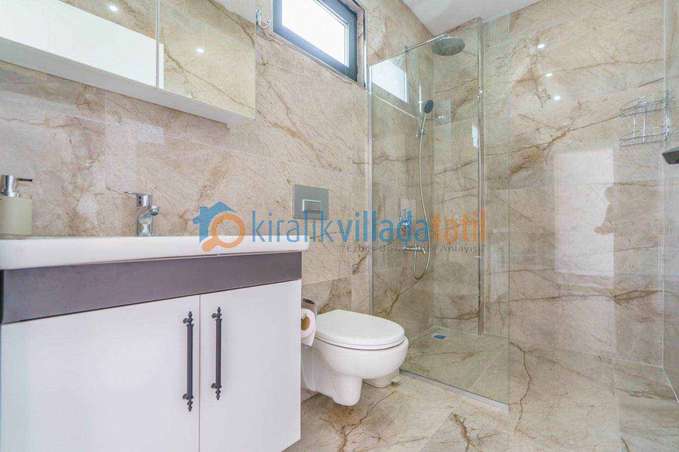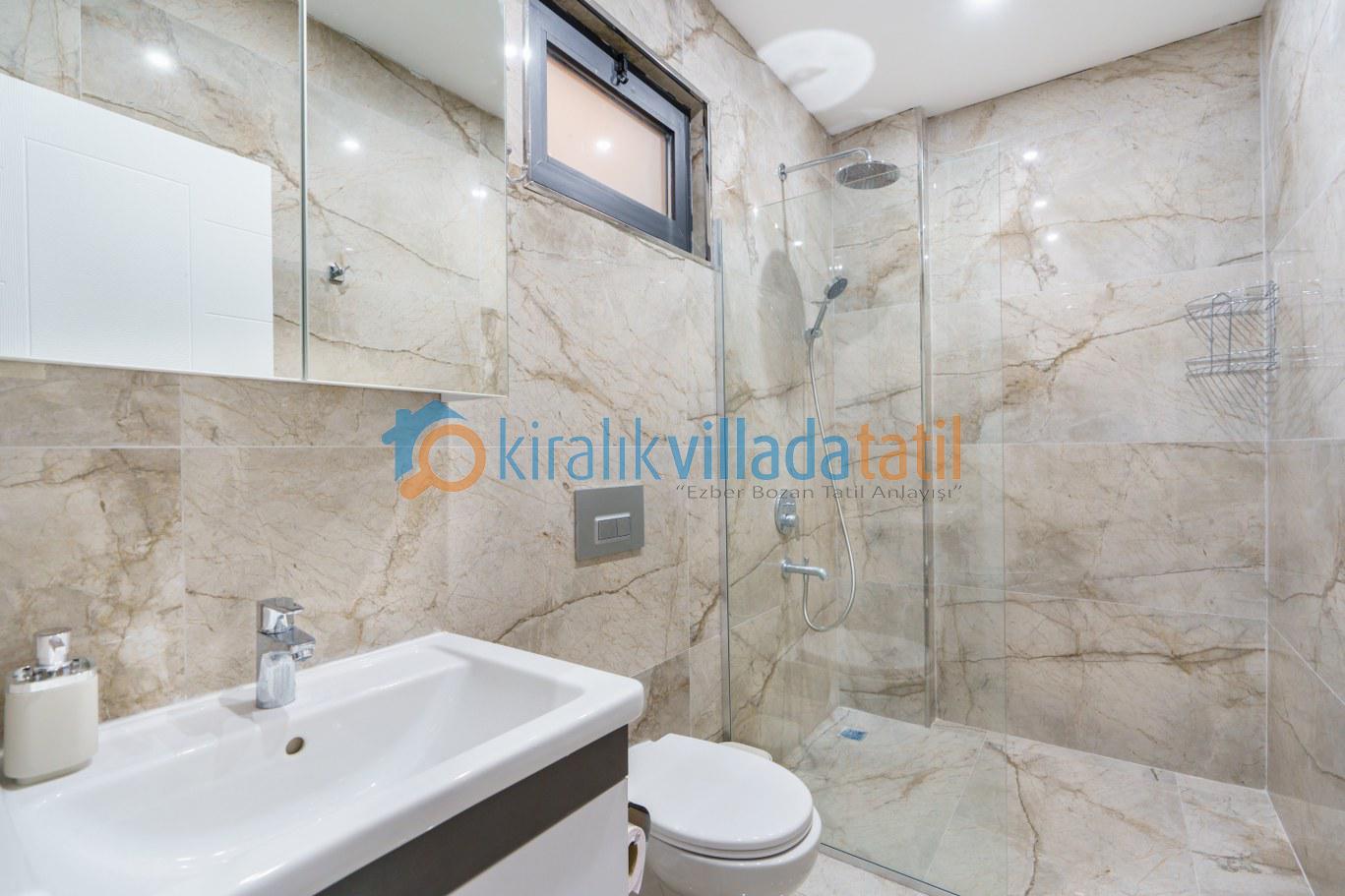 İki yatak odası bulunan villanın, ana yatak odasında çift kişilik yatak, diğerinde ise, iki adet tek kişilik yatak mevcuttur. Odalarda, gerekli olabilecek oda eşyaları, banyo-wc bulunmaktadır.