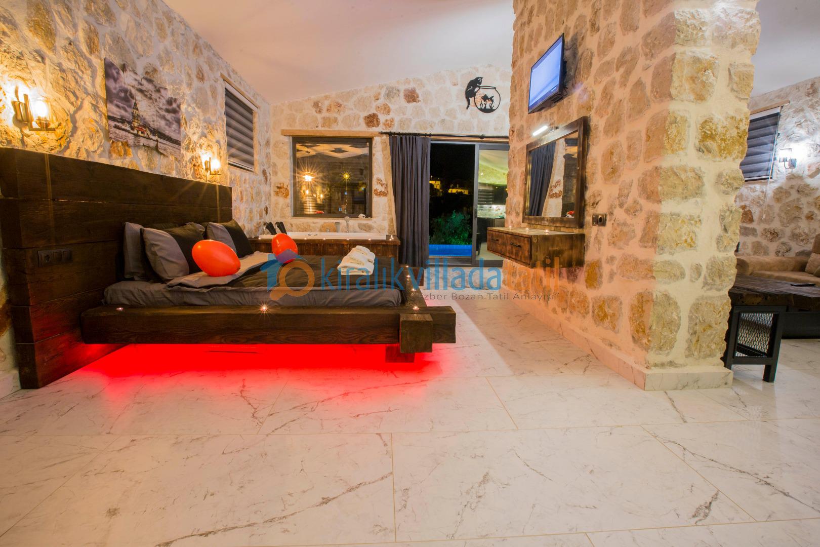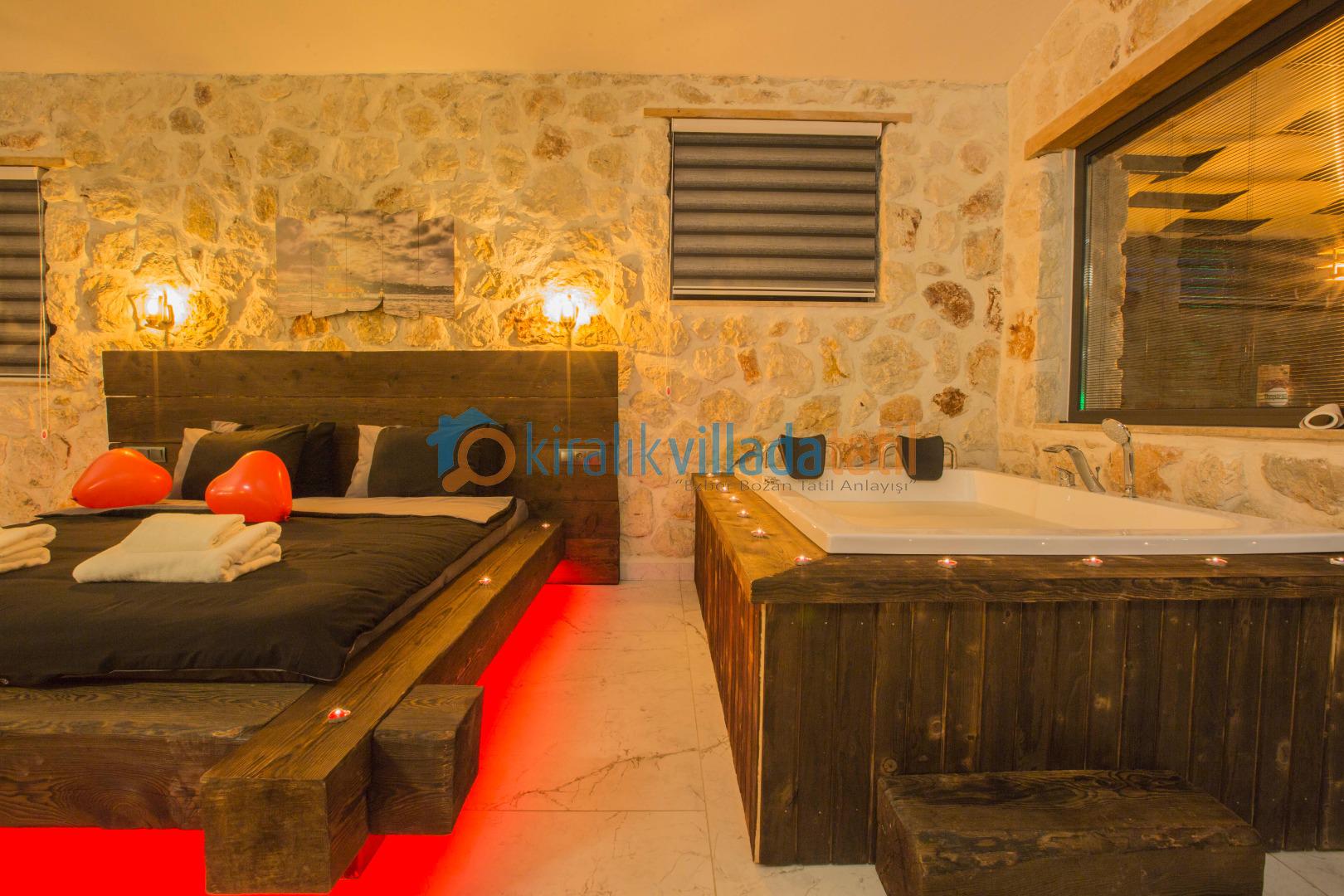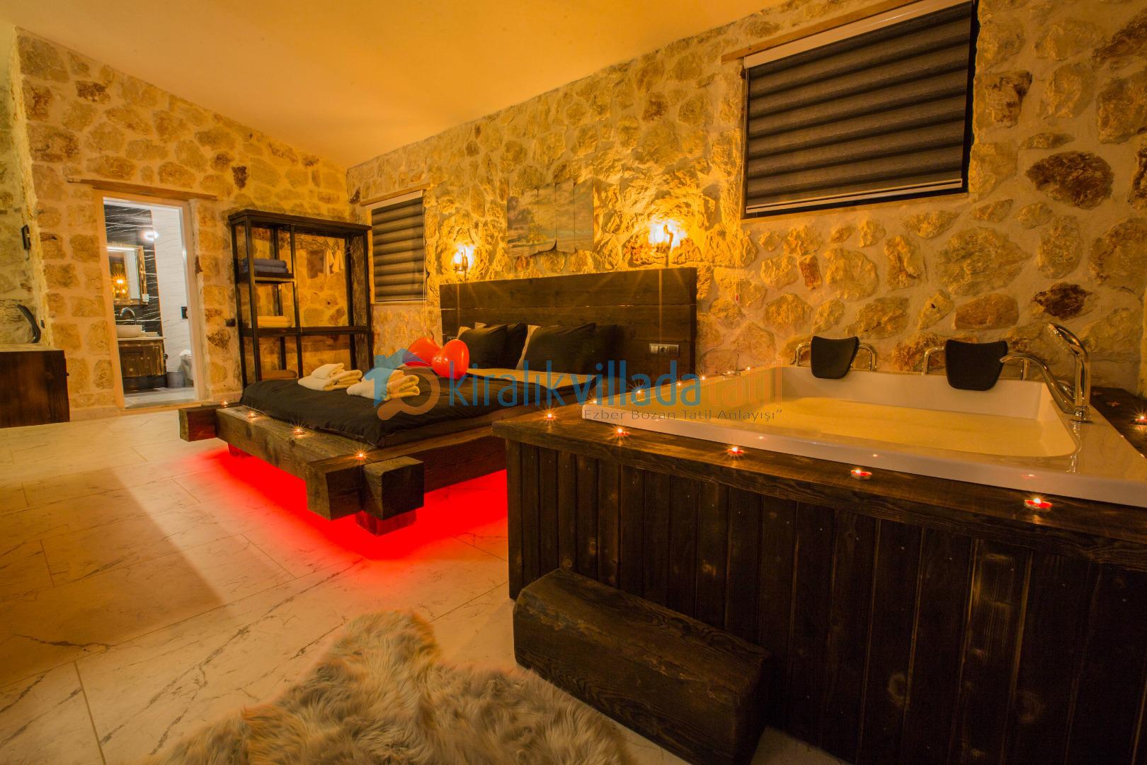 Villamızın yatak odasında çift kişilik yatak, klima, gardırop, banyo-wc ve jakuzi gibi detaylar yer alır. Ayrıca mutfak ve yaşam alanı, misafirlerin konforu düşünülerek modern ve şık eşyalarla döşenmiştir.