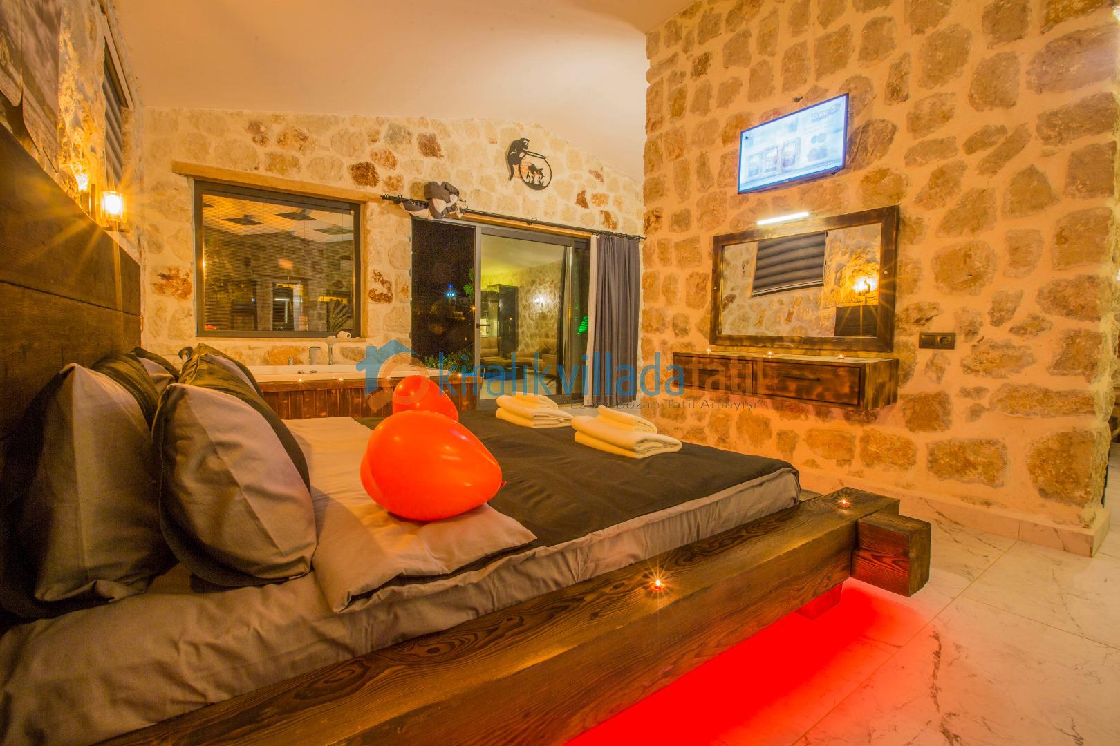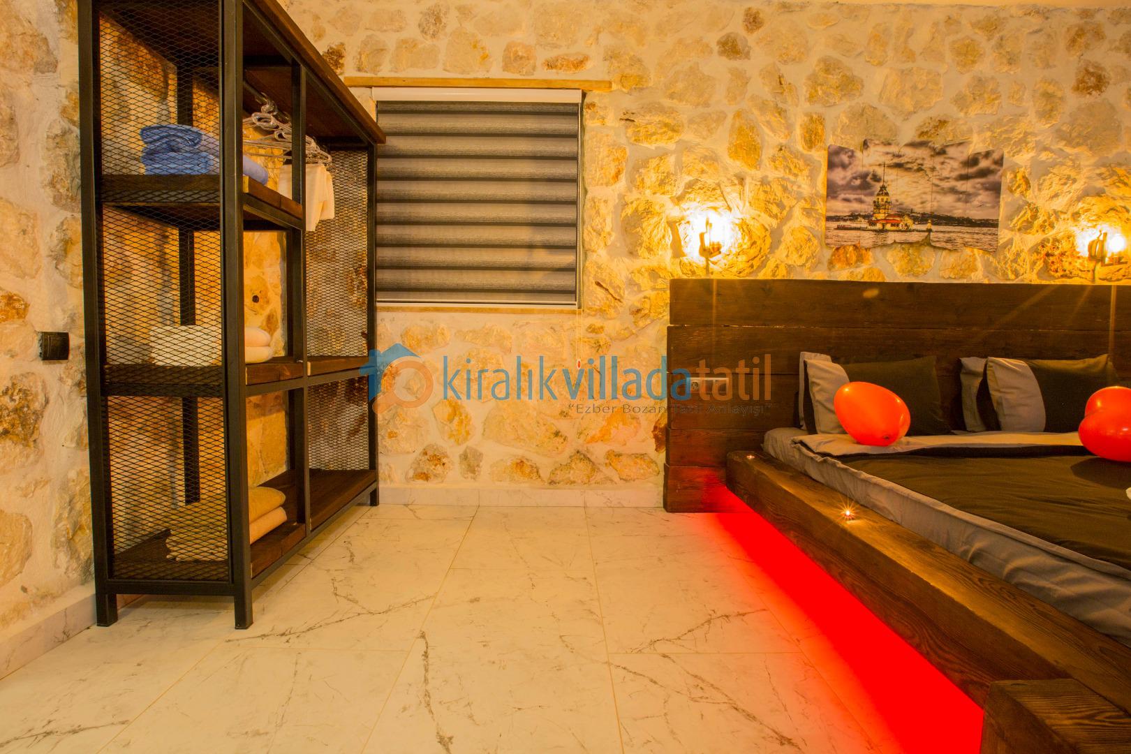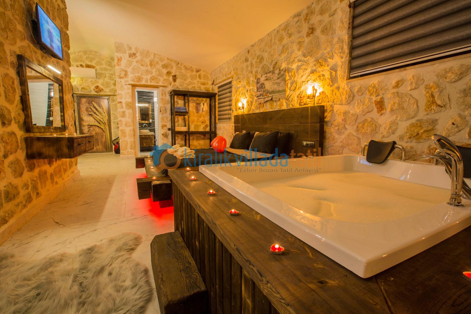Villamızın yatak odasında çift kişilik yatak, klima, gardırop, banyo-wc ve jakuzi gibi detaylar yer alır. Ayrıca mutfak ve yaşam alanı, misafirlerin konforu düşünülerek modern ve şık eşyalarla döşenmiştir.