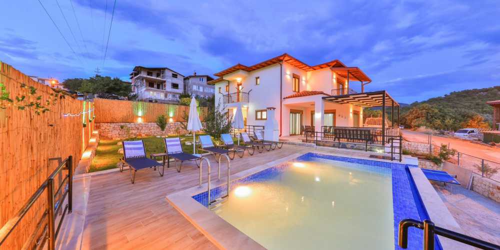 Doğa içinde geniş bahçeli ve konforlu yapısıyla öne çıkan bu, Kaş bölgesinde huzurlu bir villa kiralama planlayan misafirler için dengeli ve kullanışlı bir alternatiftir.