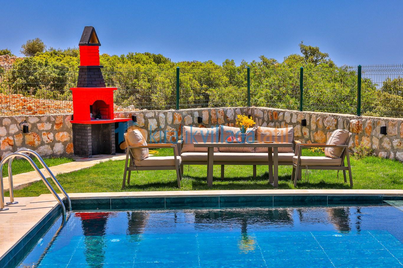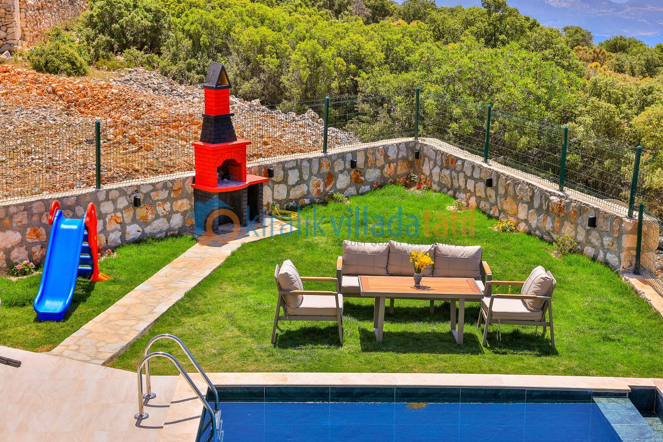 Bahçe alanında şezlonglar, oturma grubu, yemek masası, barbekü alanı, çocuklar için mini kaydırak ve salıncak yer almakta olup ailece keyifli vakit geçirmenize olanak tanır. Havuz ve bahçe bakımları görevli personel tarafından düzenli olarak gerçekleştirilmektedir.