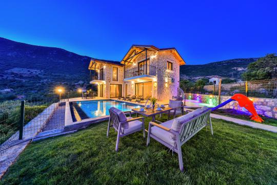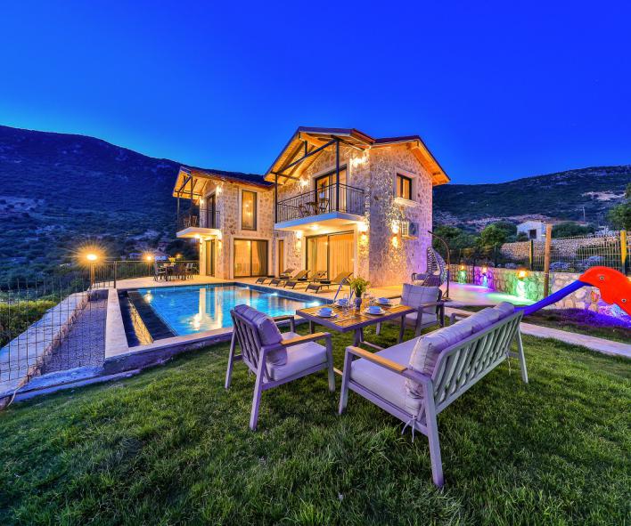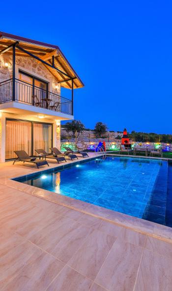 Bu ilan ait Detaylı açıklama ve bilinmesi gereken detaylarKaş’ın sakin ve doğayla iç içe bölgelerinden Baldıraz mevkiinde konumlanan bu özel villa, taş ve ahşap mimarinin modern çizgilerle harmanlandığı şık bir tasarıma sahiptir. Deniz ve doğa manzarasını aynı anda sunan villa, iki yatak odasıyla dört kişilik konaklama kapasitesiyle özellikle balayı çiftleri ve çekirdek aileler için huzurlu bir tatil atmosferi oluşturur.
