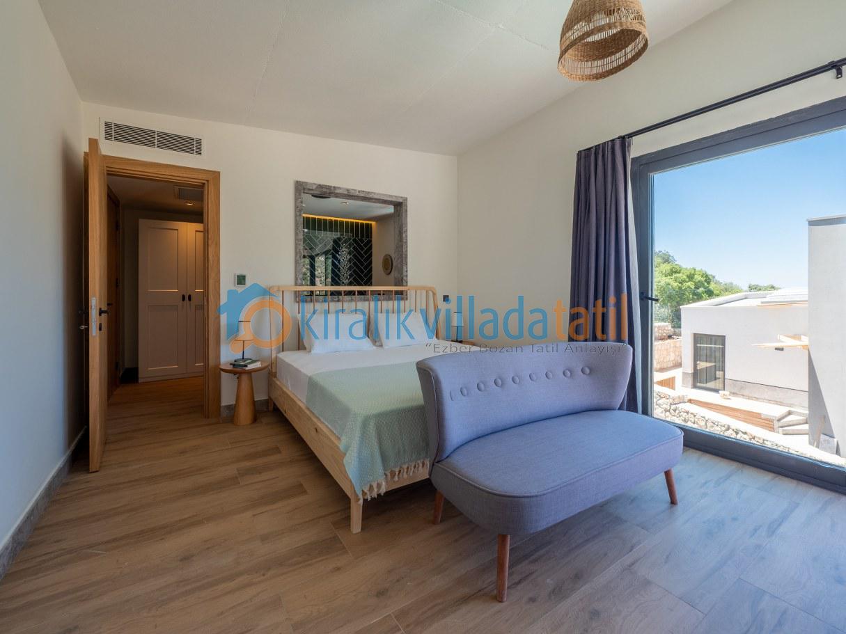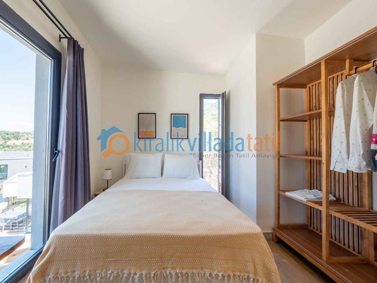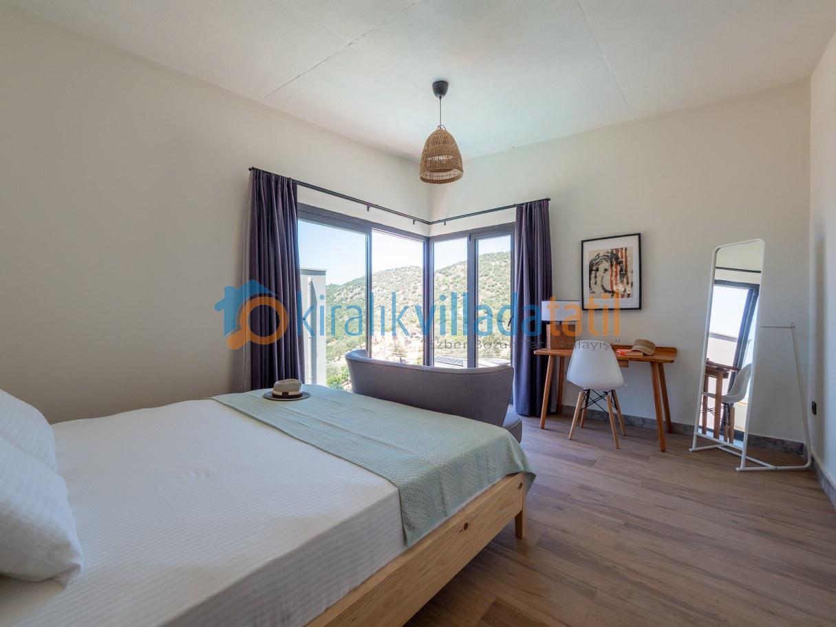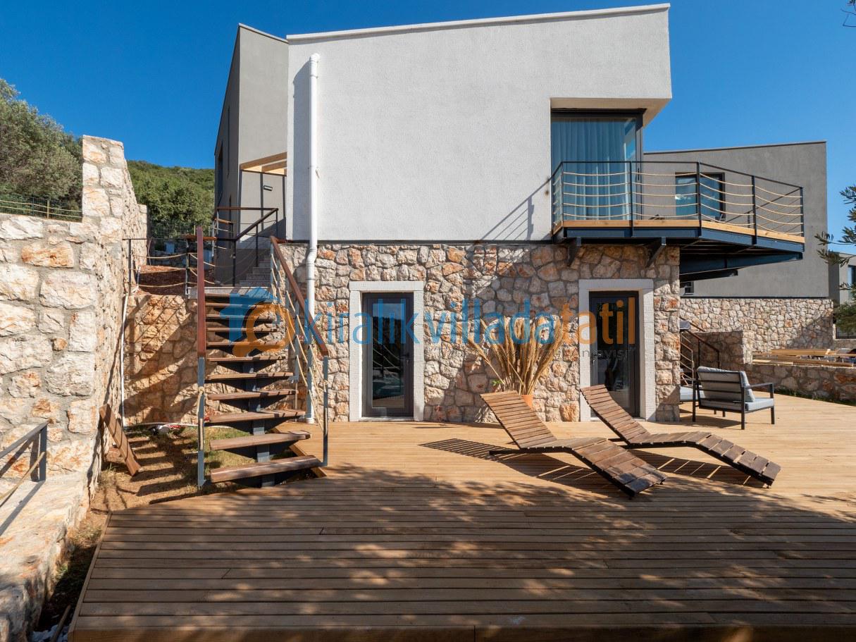 Doğal ışığı maksimum seviyede içeri alan geniş cam yüzeyler, zarif detaylarla dekore edilmiş salon ve tam donanımlı mutfak alanı ile birleşerek hem estetik hem de rahat bir yaşam alanı oluşturur. İç mekânda tercih edilen modern ve sade tasarım çizgisi, tatil boyunca ihtiyaç duyabileceğiniz tüm konforu bir arada sunacak şekilde planlanmıştır. Villanın tamamen size ait olan dış yaşam alanında özel yüzme havuzu, güneşlenme terası, oturma grubu ve yemek alanı yer almaktadır. Doğanın eşsiz dokusu eşliğinde sabah kahvaltılarınızı keyifle yapabilir, gün içerisinde havuzun tadını çıkarabilir, akşam saatlerinde ise sevdiklerinizle birlikte huzurlu ve unutulmaz anlar yaşayabilirsiniz.
