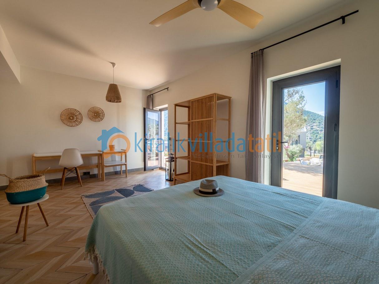 Bu ilan ait Detaylı açıklama ve bilinmesi gereken detaylarKaş Belenli’nin doğayla iç içe, huzur veren atmosferinde konumlanan bu özel kiralık villa, site içerisinde yer almasına rağmen bağımsız giriş yapısı sayesinde misafirlerine izole ve konforlu bir tatil ayrıcalığı sunmaktadır. Modern mimari anlayışıyla tasarlanan villa, fonksiyonel kullanım alanları ve ferah yaşam konseptiyle dikkat çeker. Toplam 4 yatak odasıyla 8 kişilik konaklama kapasitesine sahip olan bu seçkin yapı; çekirdek aileler ve arkadaş grupları için üst segment bir villa kiralama alternatifidir.