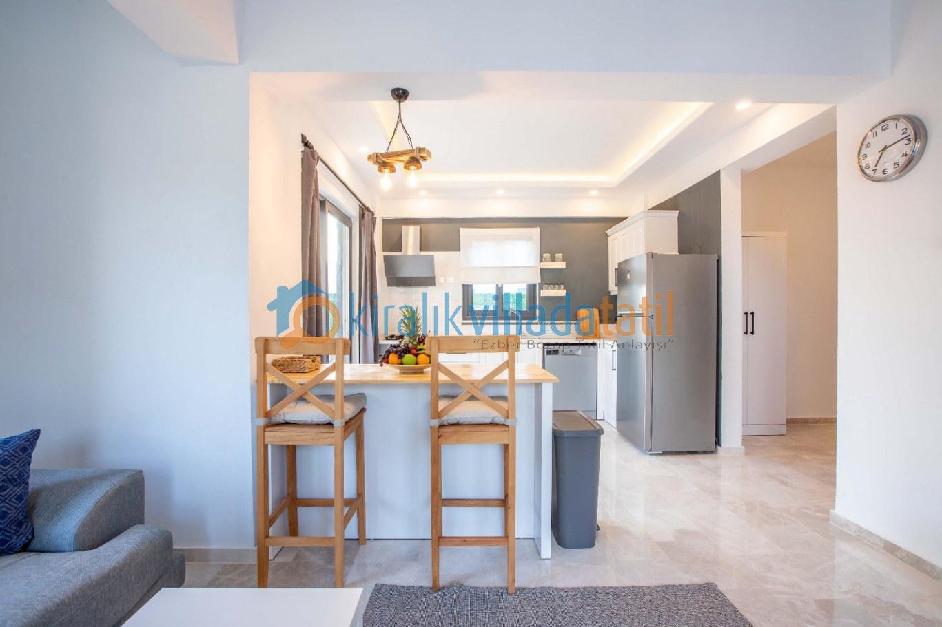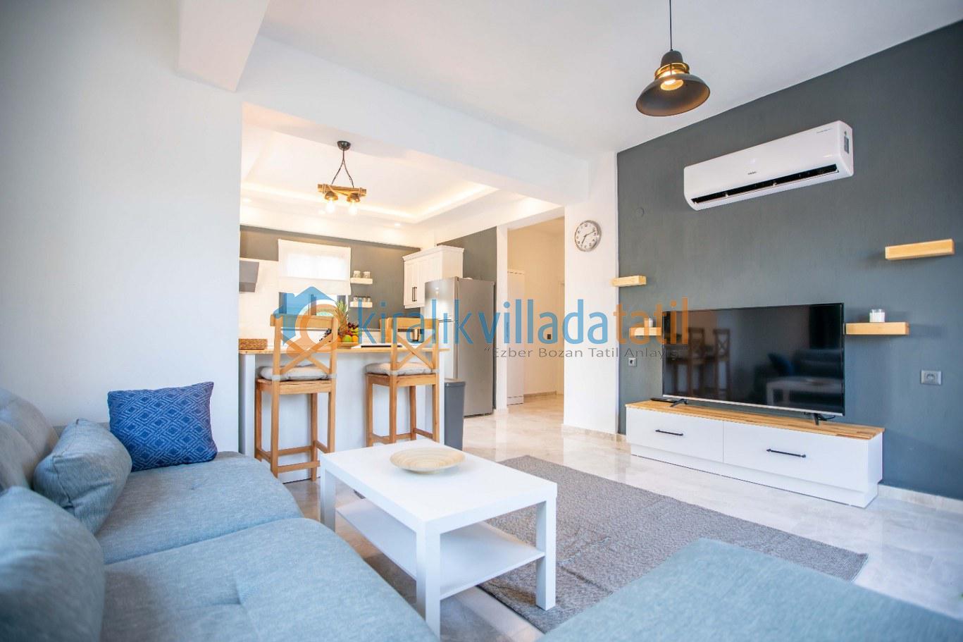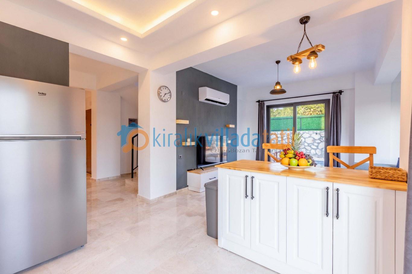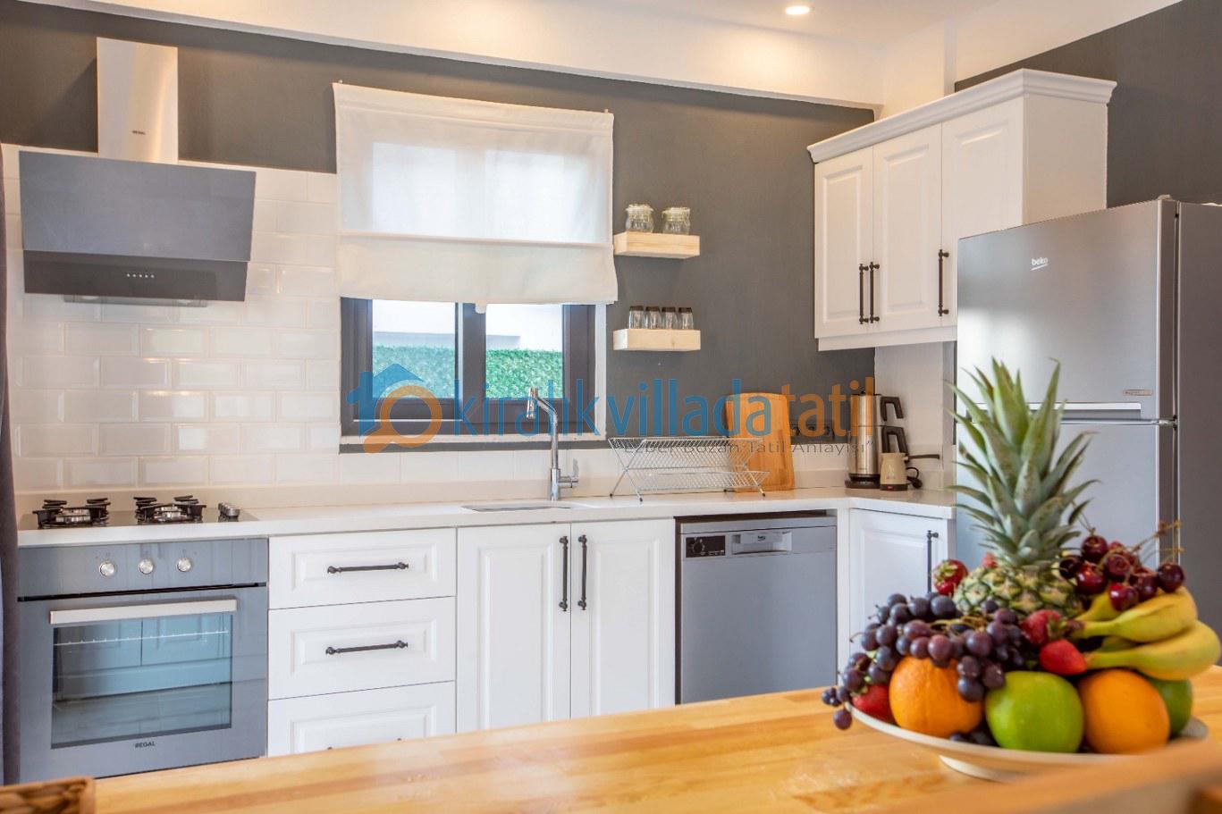 Modern çizgilerletasarlanmış yaşam alanları ferah ve kullanışlıdır. Villada konaklama süresince ihtiyaç duyabileceğiniz tüm mobilya ve beyaz eşyalar eksiksiz olarak sunulmaktadır. Tam donanımlı mutfakta buzdolabı, ocak, fırın, bulaşık makinesi, çamaşır makinesi, mikrodalga fırın ve tost makinesi yer almakta; günlük kullanım için gerekli temel mutfak ekipmanları hazır bulunmaktadır. Ayrıca ütü ve saç kurutma makinesi gibi detaylar da konfor standartlarını tamamlayan unsurlar arasındadır.