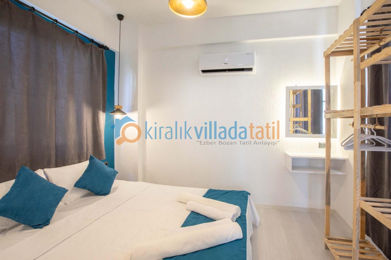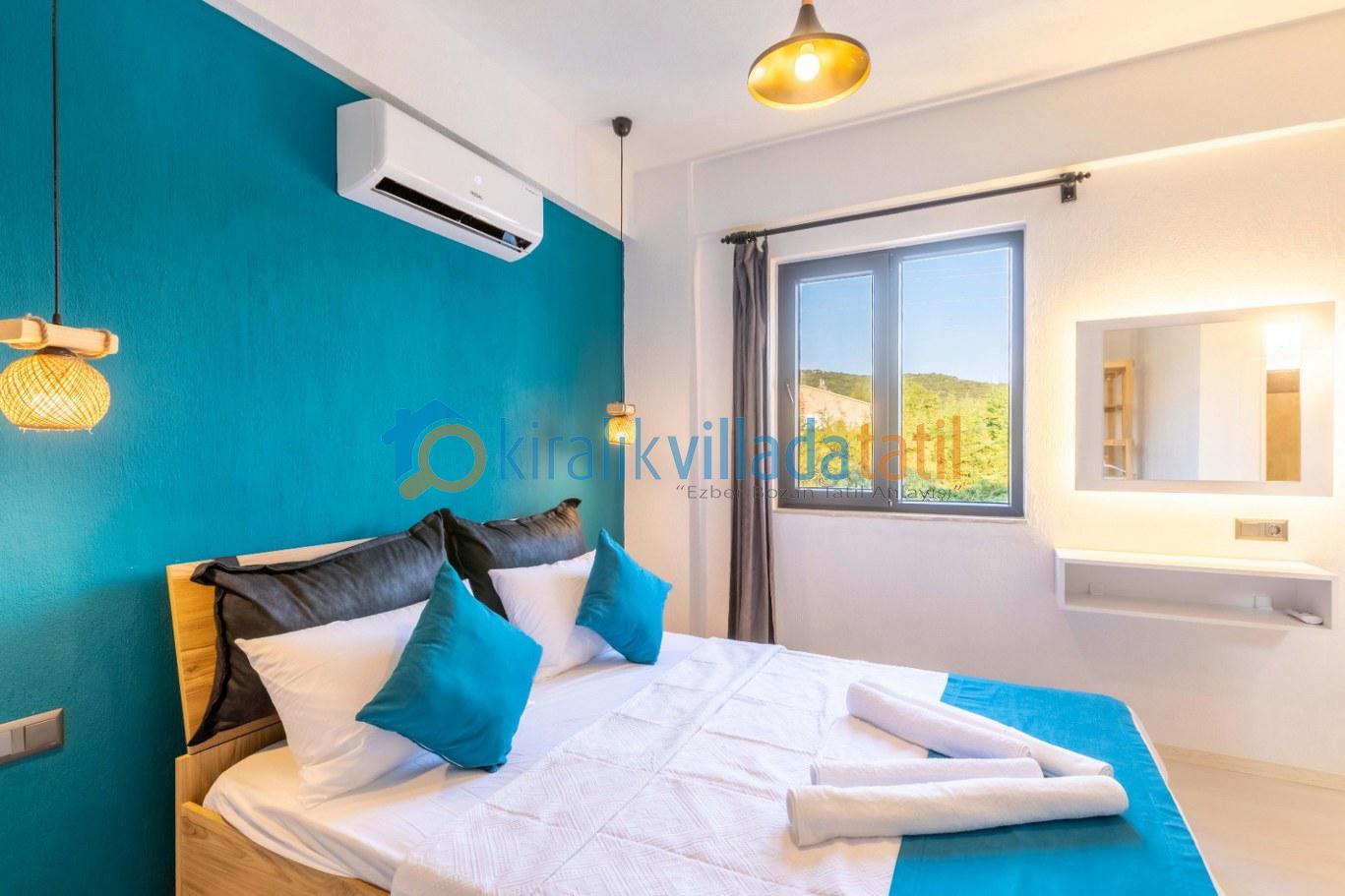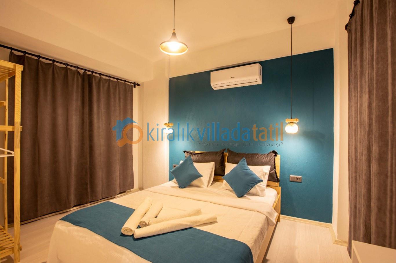 • Birinci yatak odasında çift kişilik yatak ve klima bulunmaktadır. Banyo ve WC ortak kullanım alanındadır.