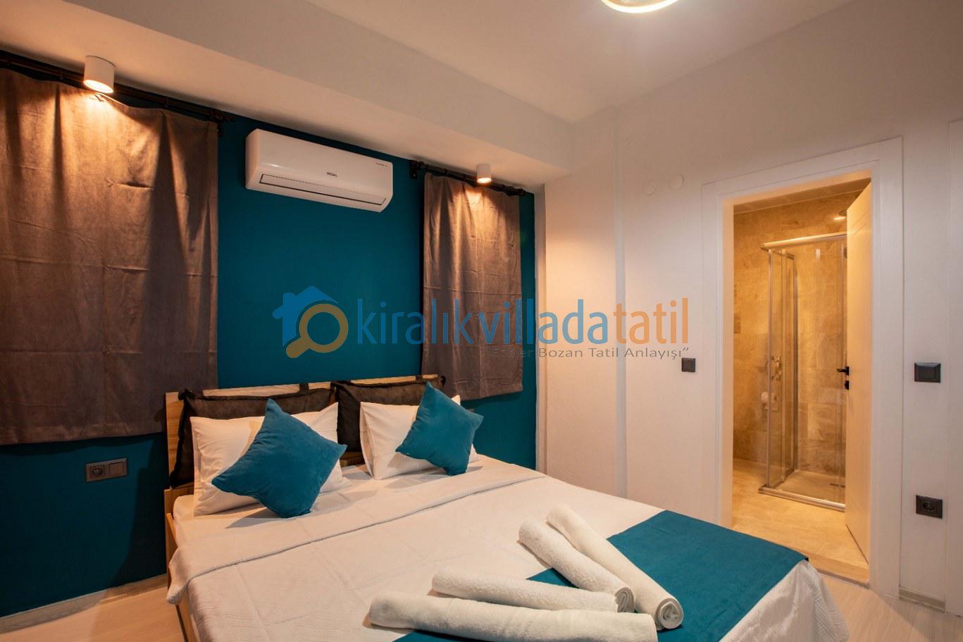 • Üçüncü yatak odasında çift kişilik yatak, klima ve özel banyo-WC bulunmaktadır.
