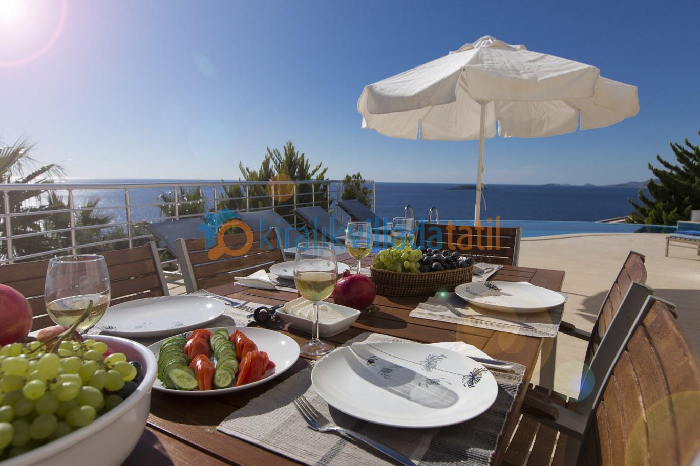 Sessizlik ve huzur arayan misafirler için oldukça uygun bir atmosfer sunan villamız şehir hayatının yoğun temposundan uzaklaşmak isteyenler için doğa ile iç içe sakin bir ortam sağlamaktadır geniş veranda alanı özel yüzme havuzu ve deniz manzarasına açılan teras bölümü sayesinde günün büyük bölümünü açık havada keyifle geçirebilirsiniz sabah saatlerinde deniz manzarası eşliğinde kahvaltı yapabilir gün içinde havuz başında dinlenebilir ya da güneşlenerek tatilin tadını çıkarabilirsiniz