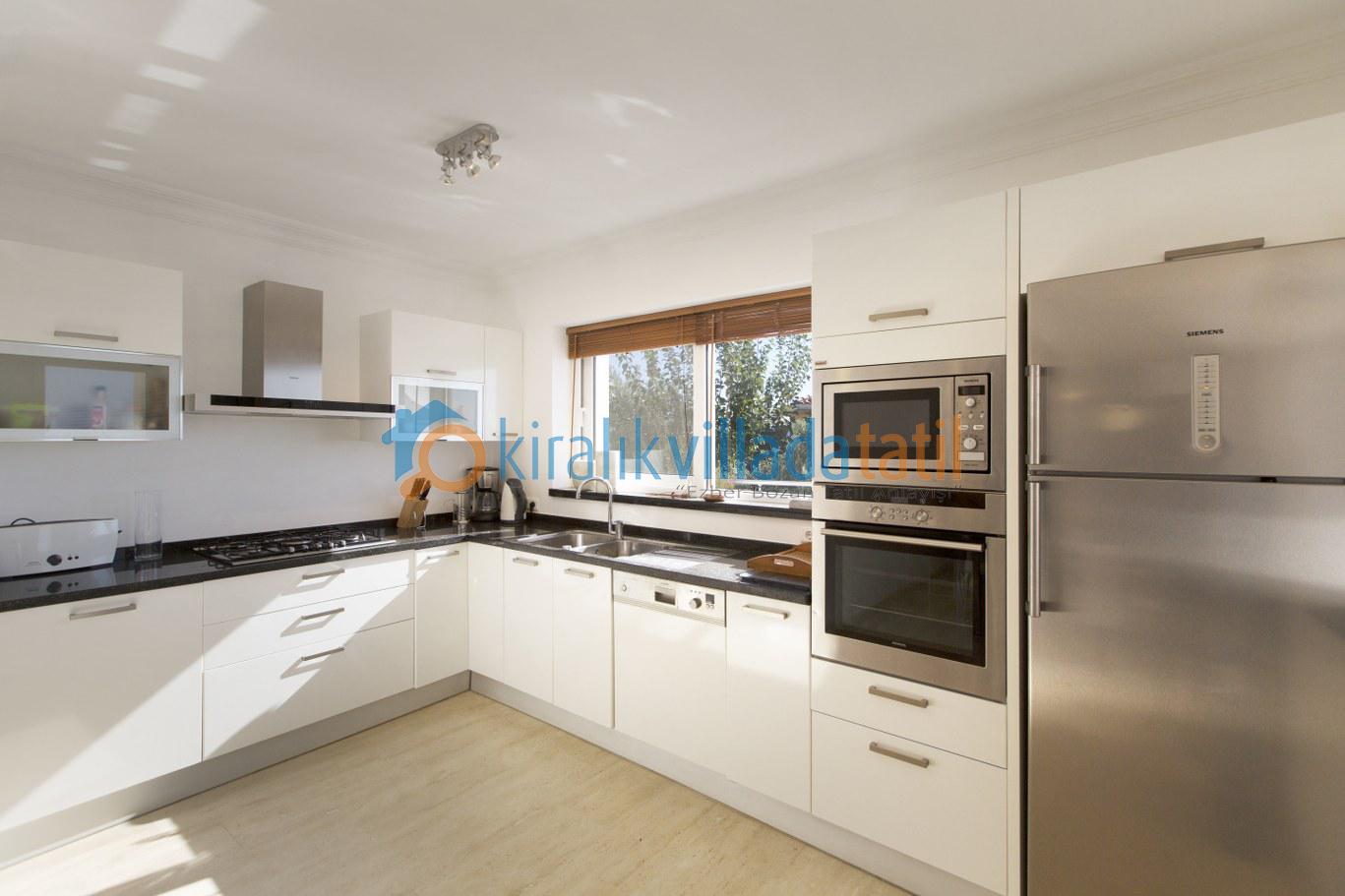 Villada bulunan geniş ve ferah yaşam alanları modern mutfak donanımı rahat oturma alanları ve konforlu yatak odaları tatiliniz boyunca ihtiyacınız olan tüm konforu sağlamaktadır havuz seviyesinin altında bulunan bağımsız bölüm ise özellikle birlikte tatil yapan aile üyeleri ya da arkadaş grupları için daha özel ve sakin bir konaklama alanı sunmaktadır