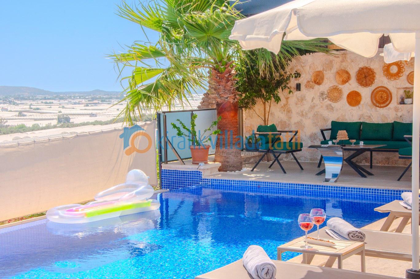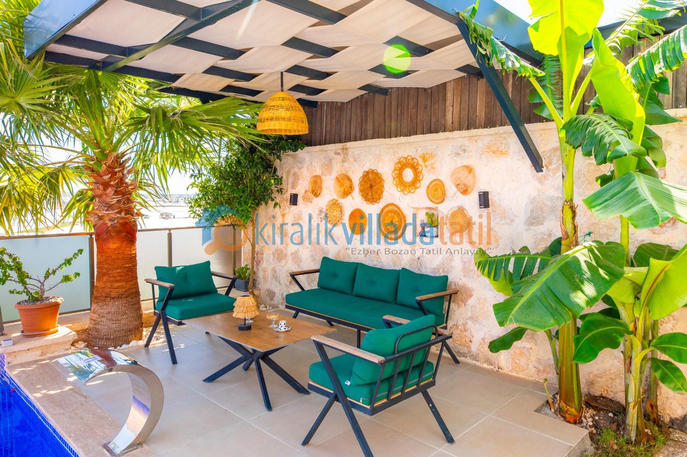 Bu ilan ait Detaylı açıklama ve bilinmesi gereken detaylarDoğa ile iç içe konumlanan bu modern villa, Kaş Çavdır bölgesinde sakinlik ve konforu bir arada arayan misafirler için özenle hazırlanmış özel bir yaşam alanı sunuyor. 2 yatak odası ve 5 kişilik kapasitesiyle hem çekirdek aileler hem de balayı çiftleri için ideal bir tatil alternatifi oluşturuyor. İç mekânda kullanılan kaliteli ve konforlu ev eşyaları,modern mimari detaylarla birleşerek ferah ve keyifli bir konaklama deneyimi sağlıyor.