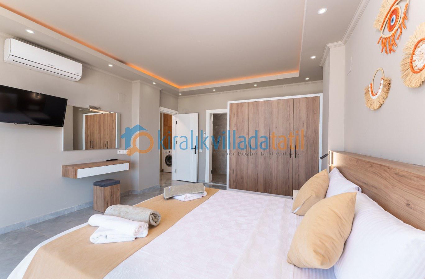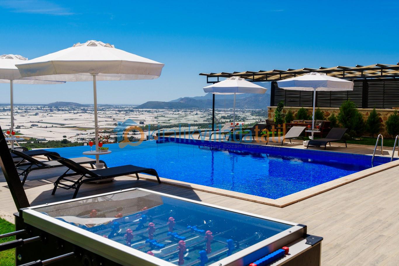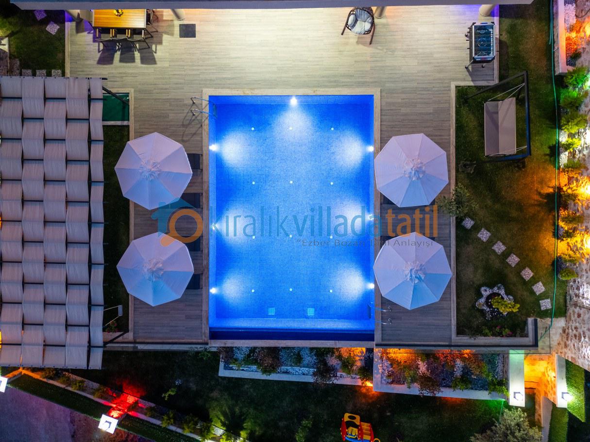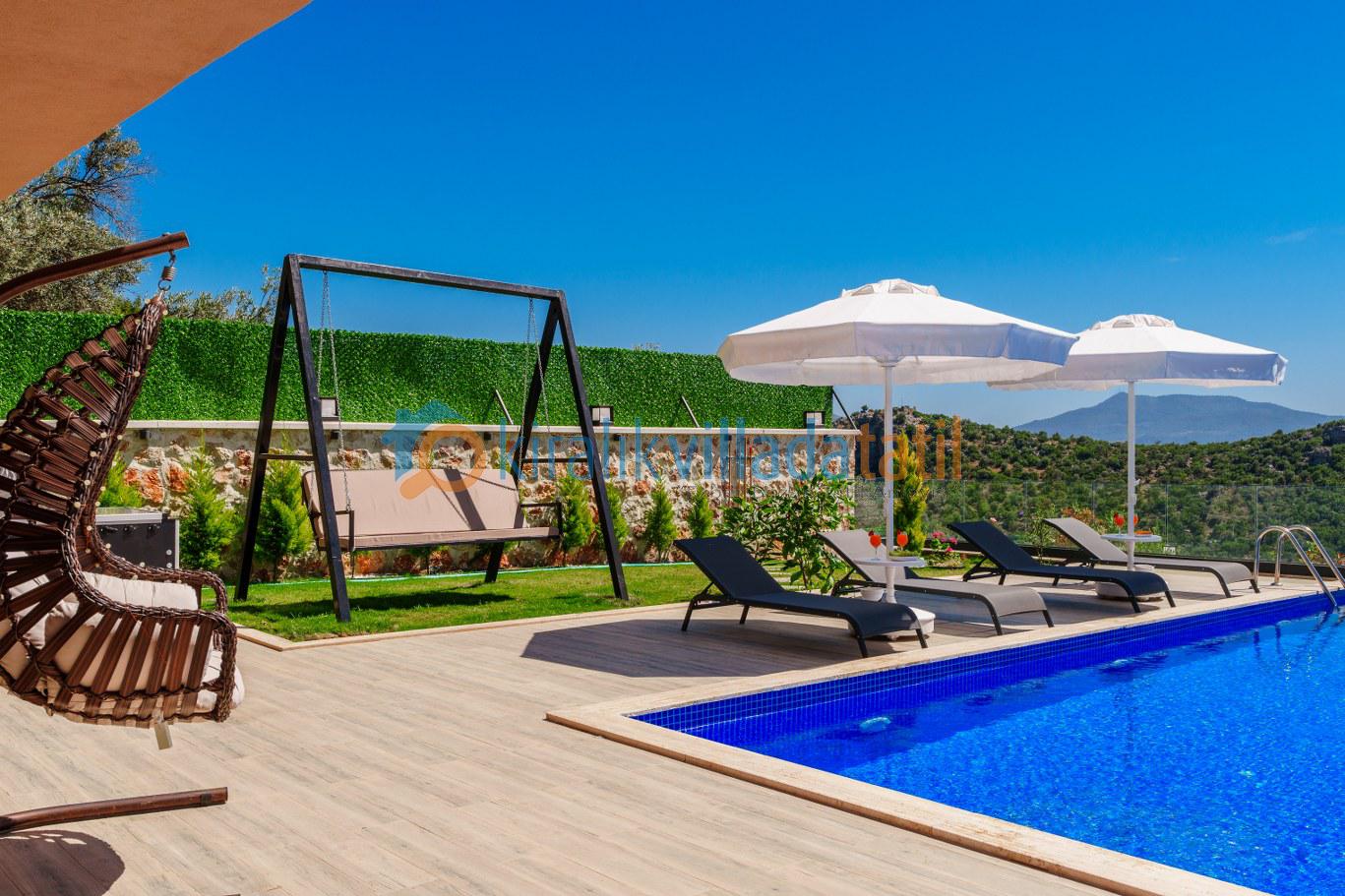 Bu ilan ait Detaylı açıklama ve bilinmesi gereken detaylarKaş'ın yeni gözde bölgelerinden Çayköy mevkiinde bulunan yapımı 2024 yılında tamamlanan, lüks villamız 8 kişilik kapasiteye sahiptir. Lüks ve modern yapısı ile ön plana çıkan villamız, geniş havuzu ve geniş havuz terası ile sizlere unutulmaz bir tatil sunmaktadır. Havzu ve havuz terasının korunaklı ve dış gözlerden kapalı olması ile, mahremiyetine önem veren muhafazakar aileler için uygun bir villadır. Çocuklu aileler de düşünülmüş olup, küçük bir çocuk oyun parkı da hazırlanmıştır.