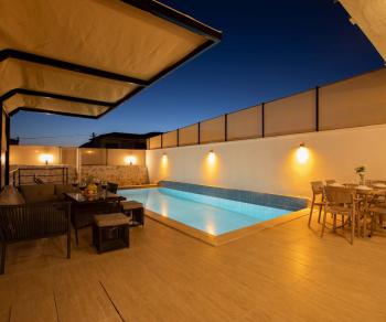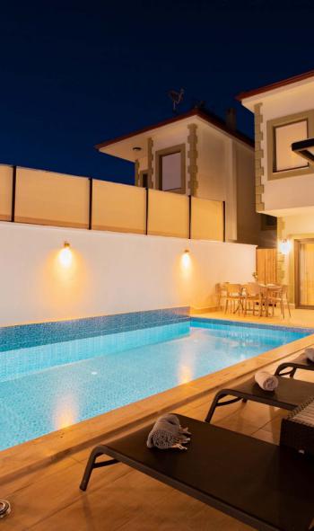 Not: Villamızın yanında KAV2806 kodlu ikiz villa bulunmaktadır. Girişleri tamamen bağımsızdır ve havuz terasları görünmemektedir. İstenildiği takdirde aynı anda kiralanarak konaklama kapasitesi arttırılabilmektedir. İki villa tamamen aynı olup, odaların ve mutfağın yönü farklıdır.