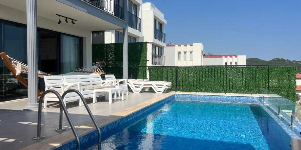 Villanın özel yüzme havuzu, gün boyu doğa manzarası eşliğinde serinleme ve dinlenme imkânı sağlar. Bahçe alanında yer alan mangal alanı ve masa tenisi, aileler ve arkadaş grupları için sosyal ve eğlenceli zamanlar yaratır. Açık alan kullanımı, tatil süresince size tamamen ait bir yaşam alanı hissi verir.