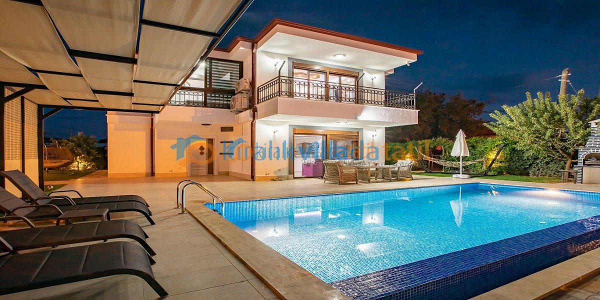 Amerikan mutfak olarak tasarlanan mutfak bölümünde ihtiyaç duyulabilecek tüm temel ekipmanlar mevcuttur. Kullanışlı planı sayesinde hem kısa hem uzun süreli konaklamalar için rahat bir kiralık villa deneyimi sunar. Bahçe ve havuz alanında hamak, iki adet salıncak, şezlonglar ve oturma grubu bulunmaktadır. Açık alanın sunduğu ferahlık sayesinde hem dinlenebilir hem de sevdiklerinizle keyifli zaman geçirebilirsiniz. Çocuklu aileler için güvenli ve keyifli vakit geçirebilecekleri alanlar da düşünülmüştür.