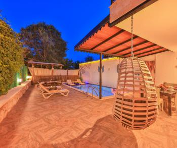Doğa manzarasına sahip olan villamız, misafirlerine yemyeşil bir ortamda unutulmaz bir tatil sunmaktadır. Özel yüzme havuzu tamamen korunaklı bir yapıya sahiptir ve bu özelliği sayesinde mahremiyetine önem veren muhafazakâr aileler için ideal bir seçenek sunar.