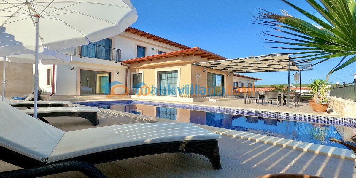 Herbiri özel havuza sahip olan villalarımız 2021 yılında yapılmış olup herşeyi ile yepyenidir. Bölgedeki en yüksek villa olması nedeniyle bütün vadiye hükmeden, uzaktan deniz ve doğa manzarasına sahip müthiş bir konumdadır. Tatil süresince ihtiyacınız olacak tüm mutfak gereçleri ve ev aletleri mevcuttur. Villamız iki katlı, özel havuzlu ve 4 Oda + 4 Banyo + 1 Salondan oluşmaktadır. Full klimalıdır (her oda ve salonda birer tane olmak üzere 5 ayrı klima mevcut).